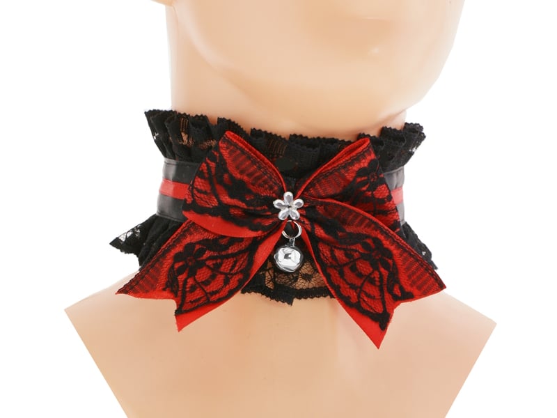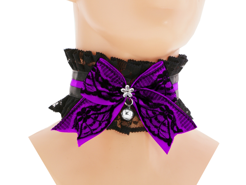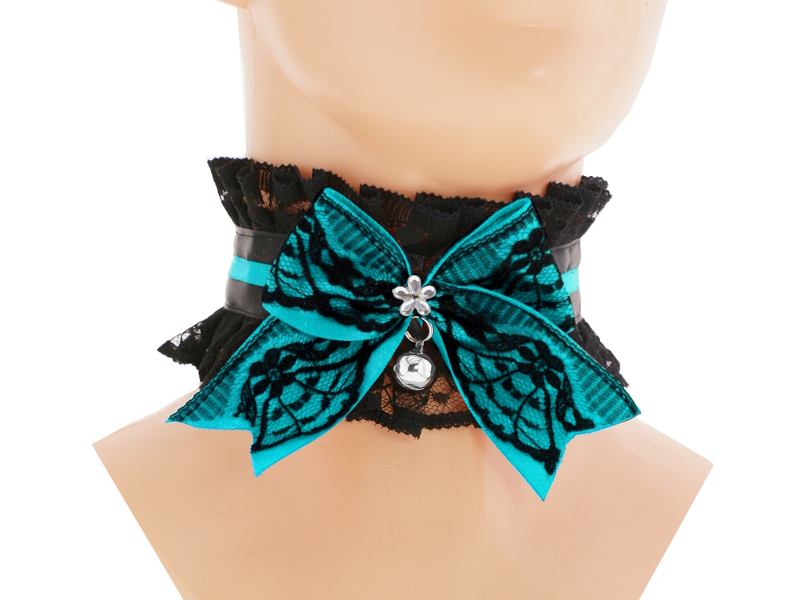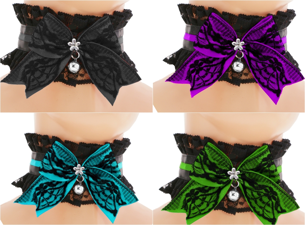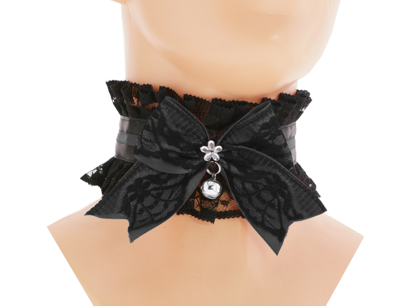 Choker Necklace Kitten Pet Play Collar Gear Princess Choker Necklace Satin Lace black Bow Bell Tug Proof Daddys Girl Kawaii pastel cosplay