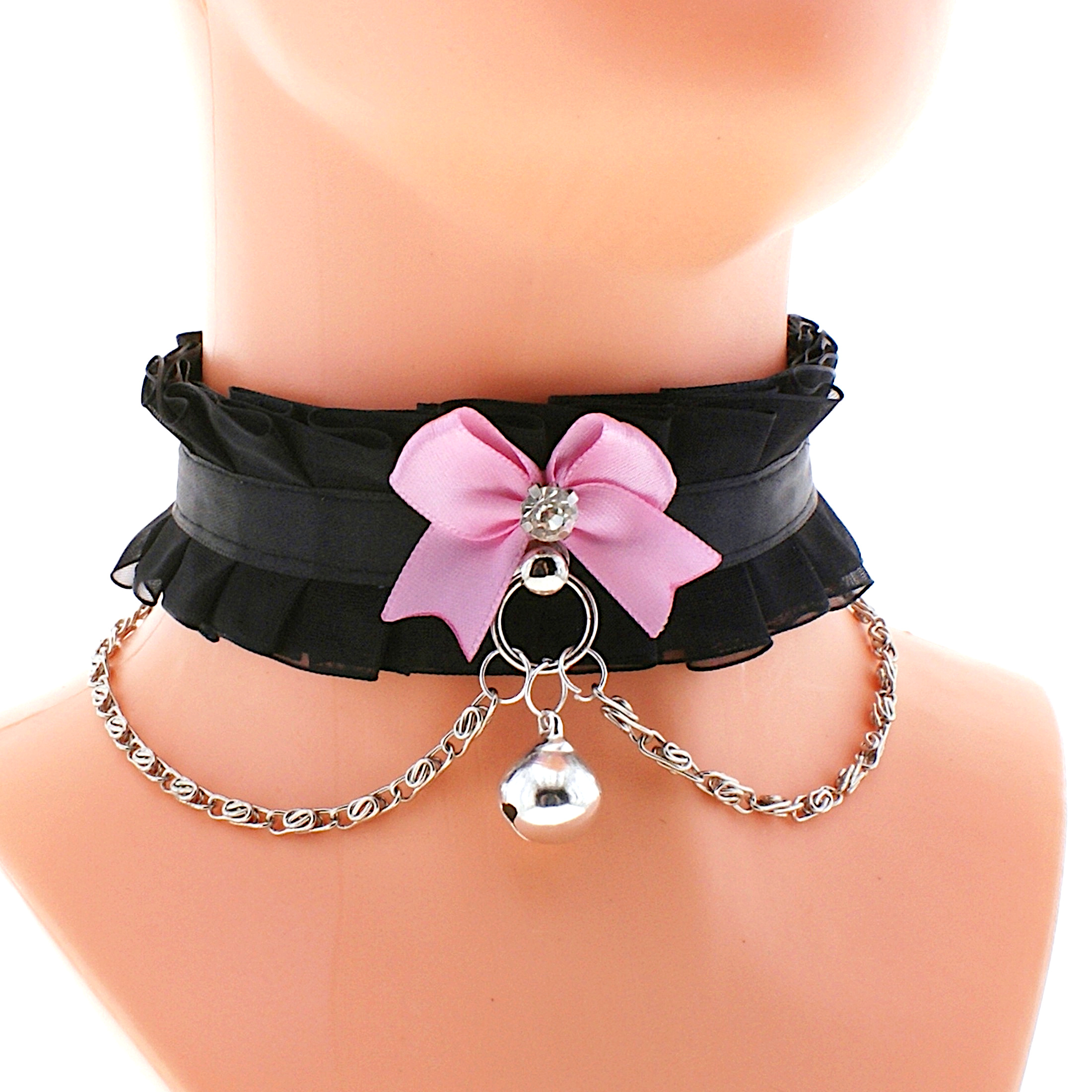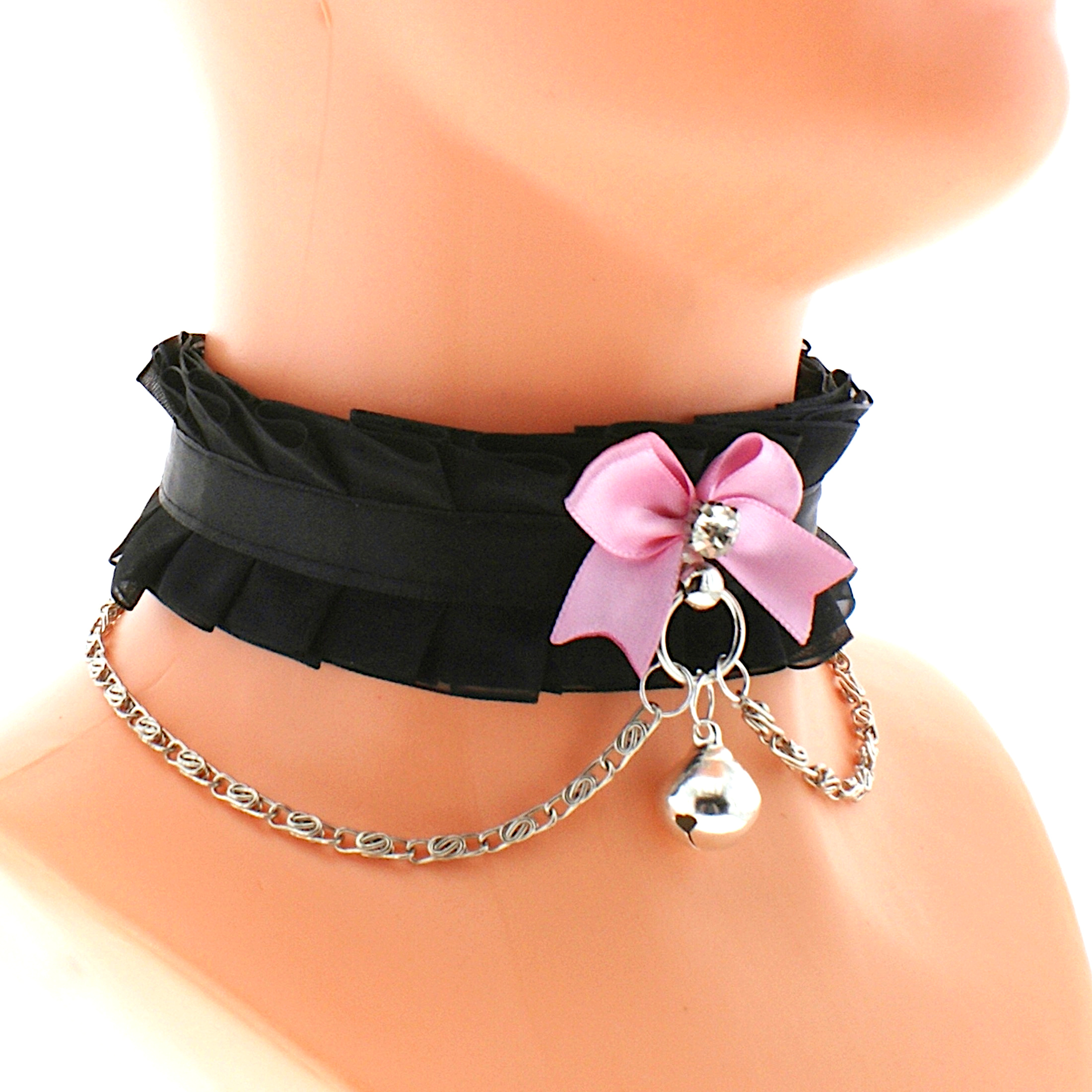 Kittenplay collar pet play collar gear princess ddlg choker necklace satin lace Chain Bow Bell Tug Proof Daddys Girl Kawaii pastel neko 333