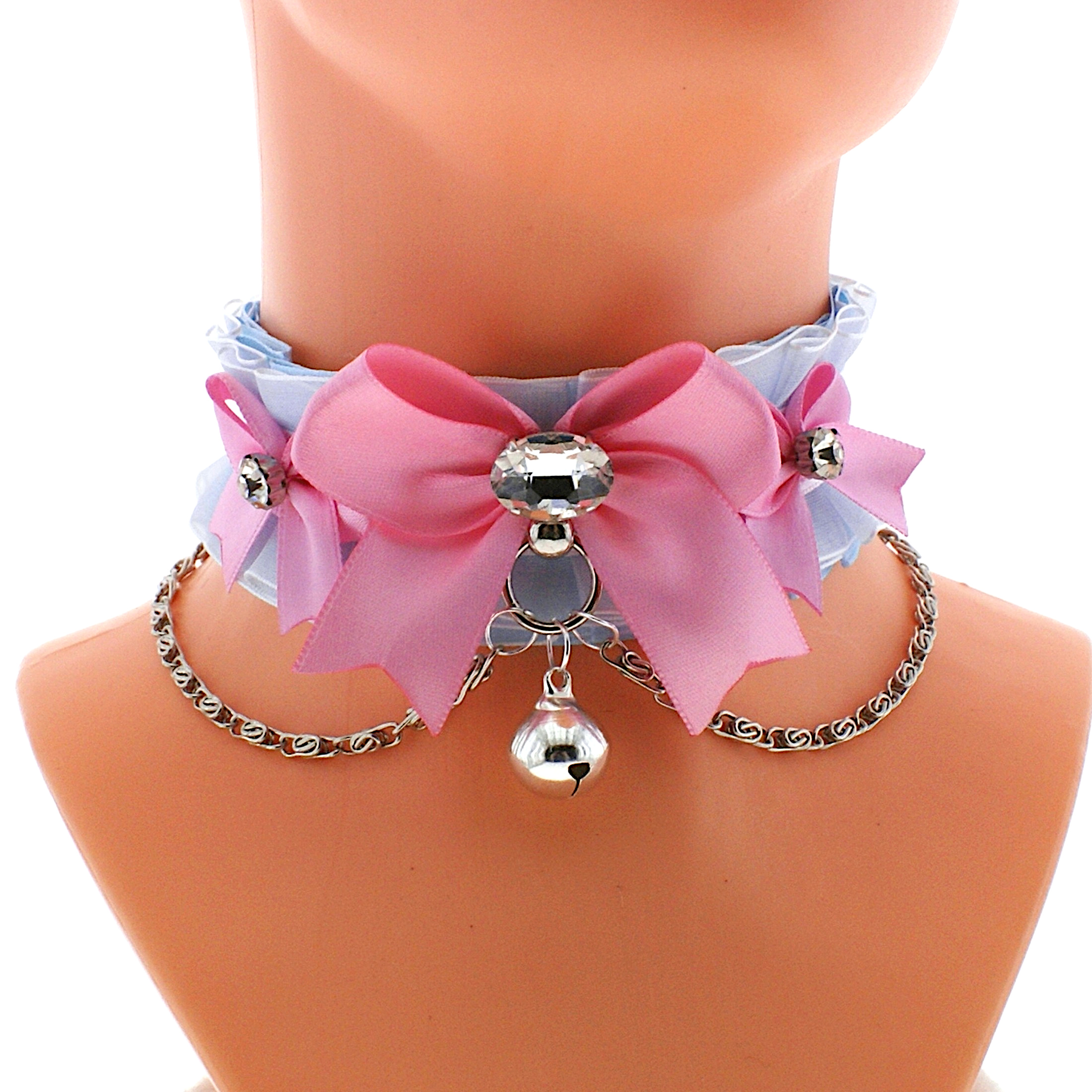Kittenplay collar pet play collar gear princess ddlg choker necklace satin puppy play Chain Bow Bell Tug Proof Daddys Girl Kawaii pastel neko 334