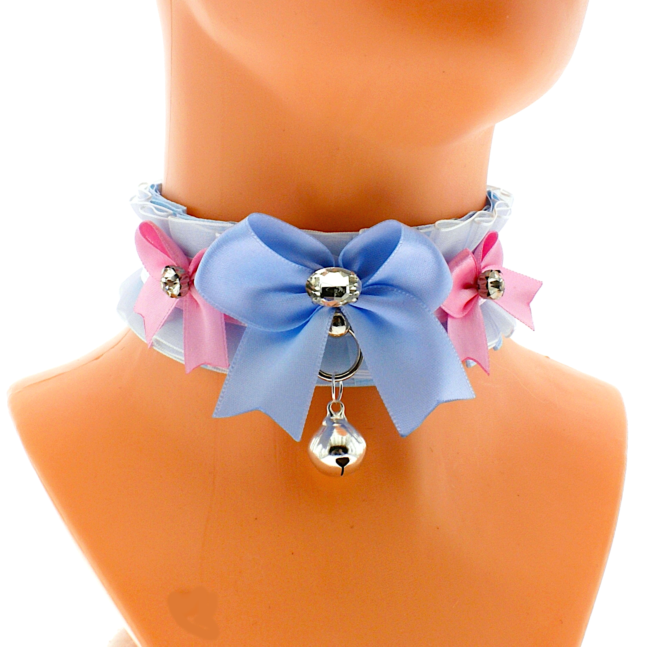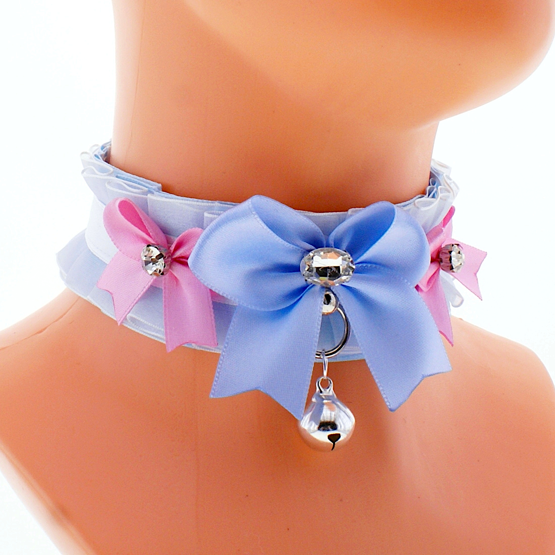 Kittenplay collar pet play collar gear princess ddlg choker necklace satin lace Chain Bow Bell Tug Proof Daddys Girl Kawaii pastel neko 333