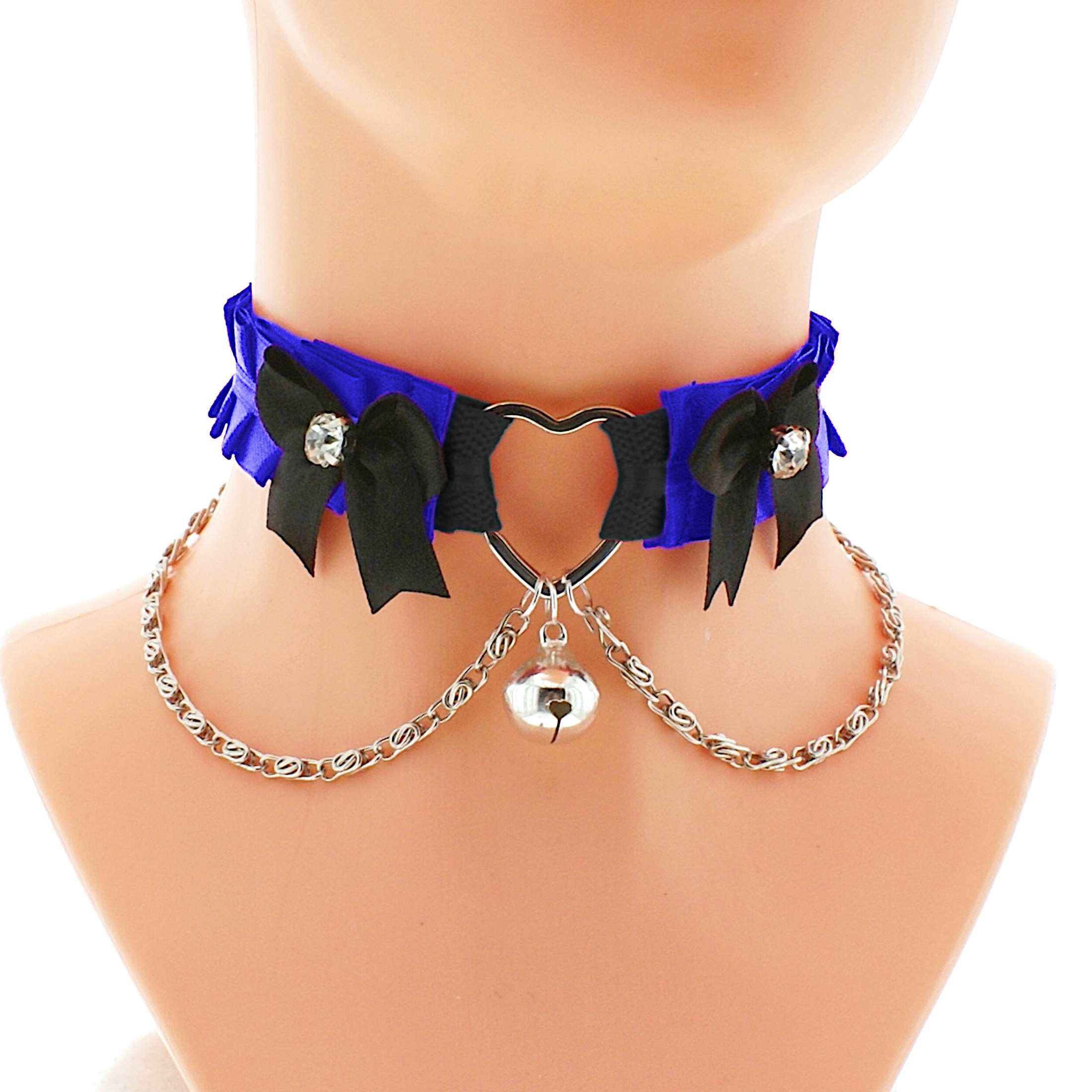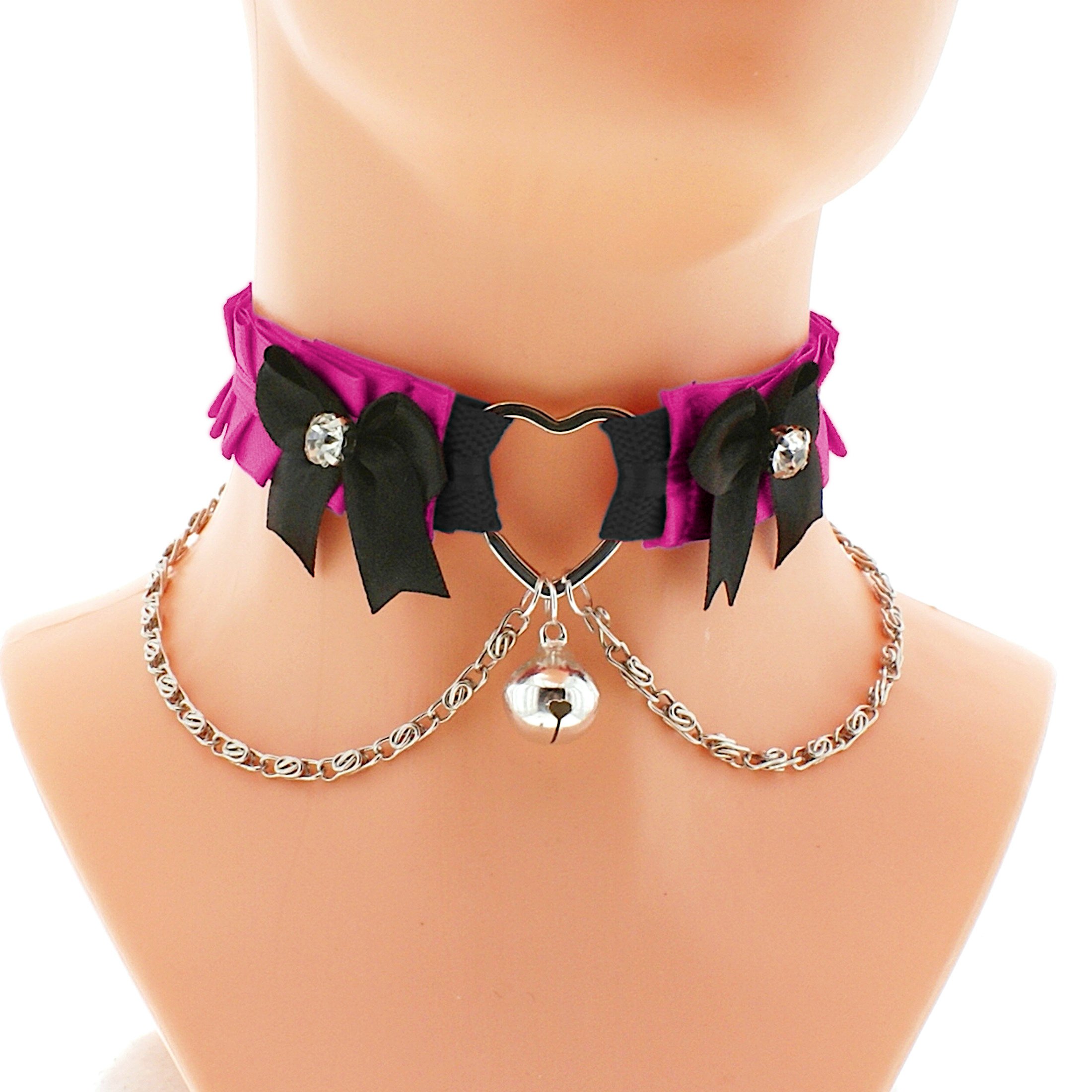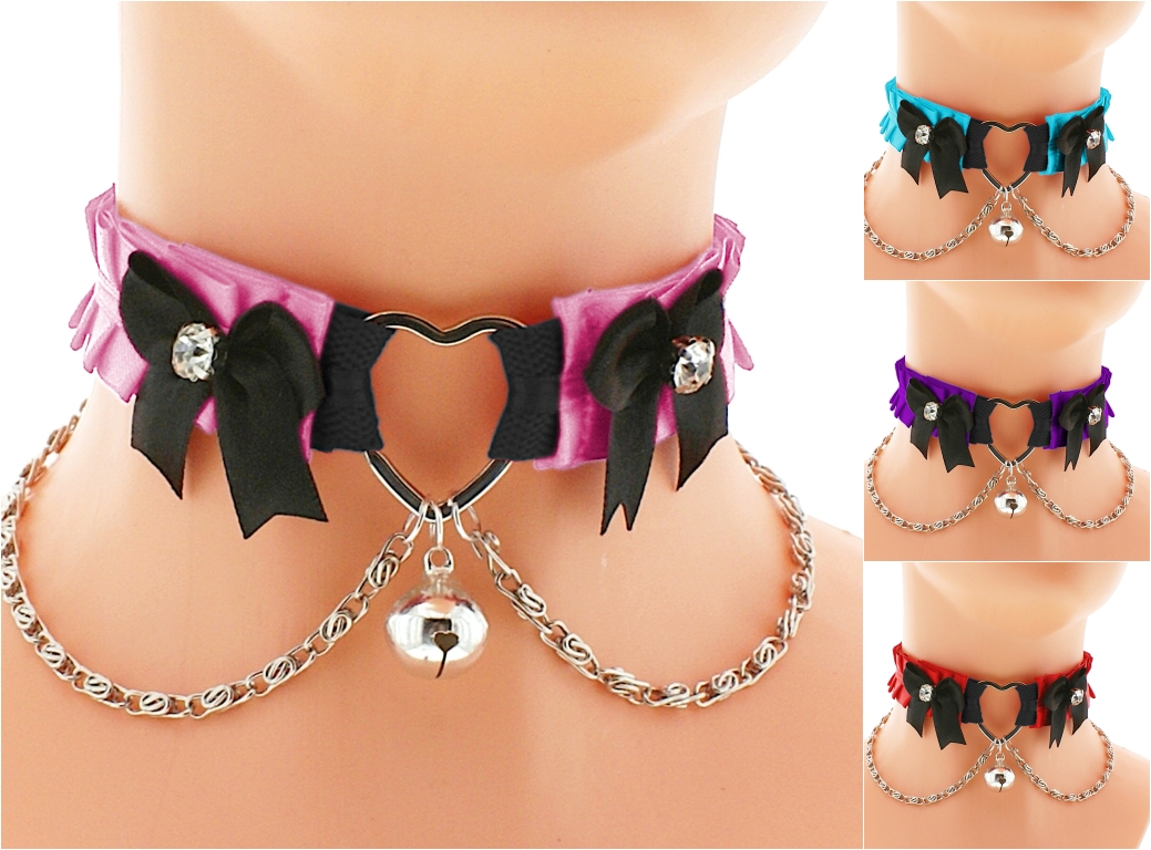 Choker satin heart extra kittenplay collar chain ddlg bdsm choker pet play necklace fancy collar more sizes choker satin bow