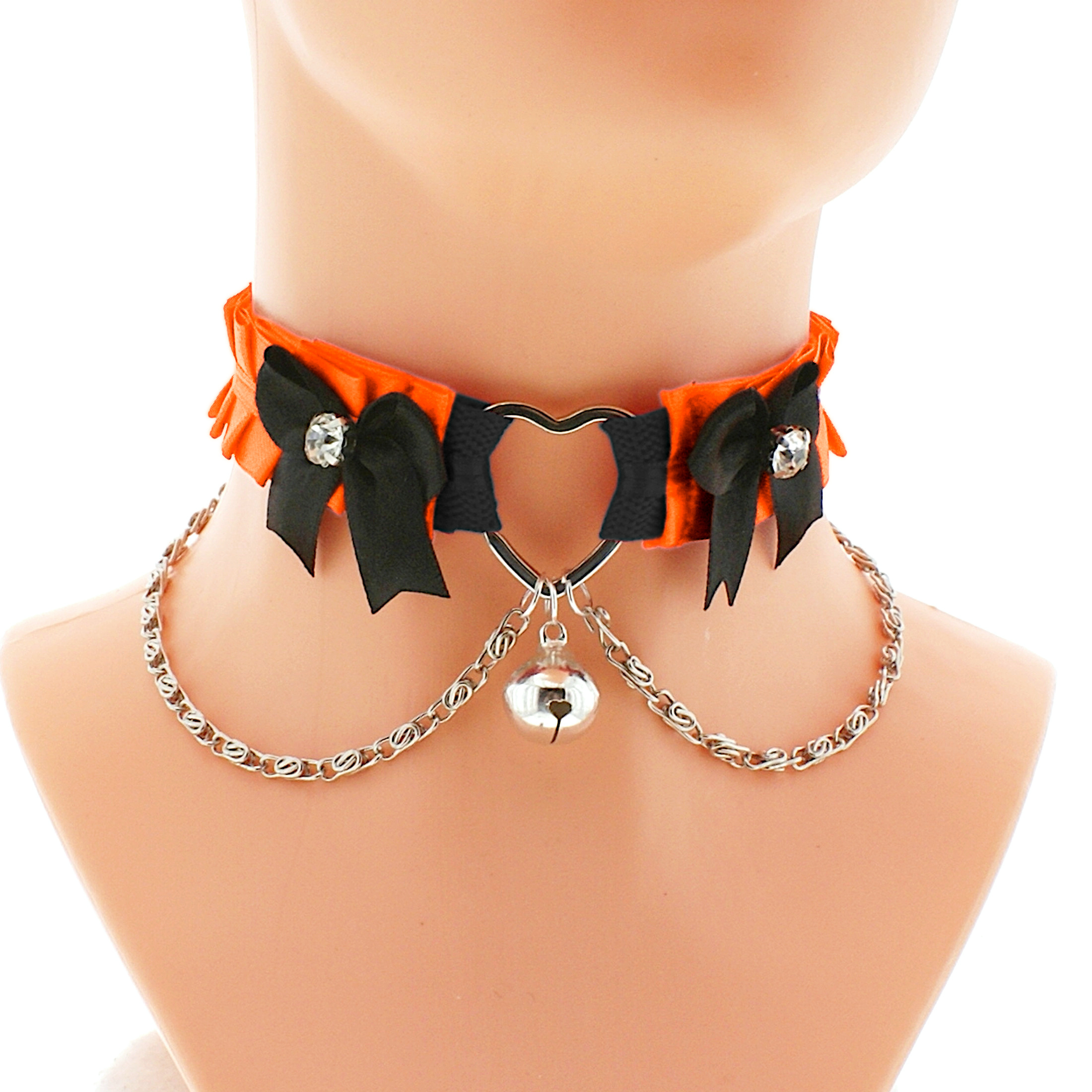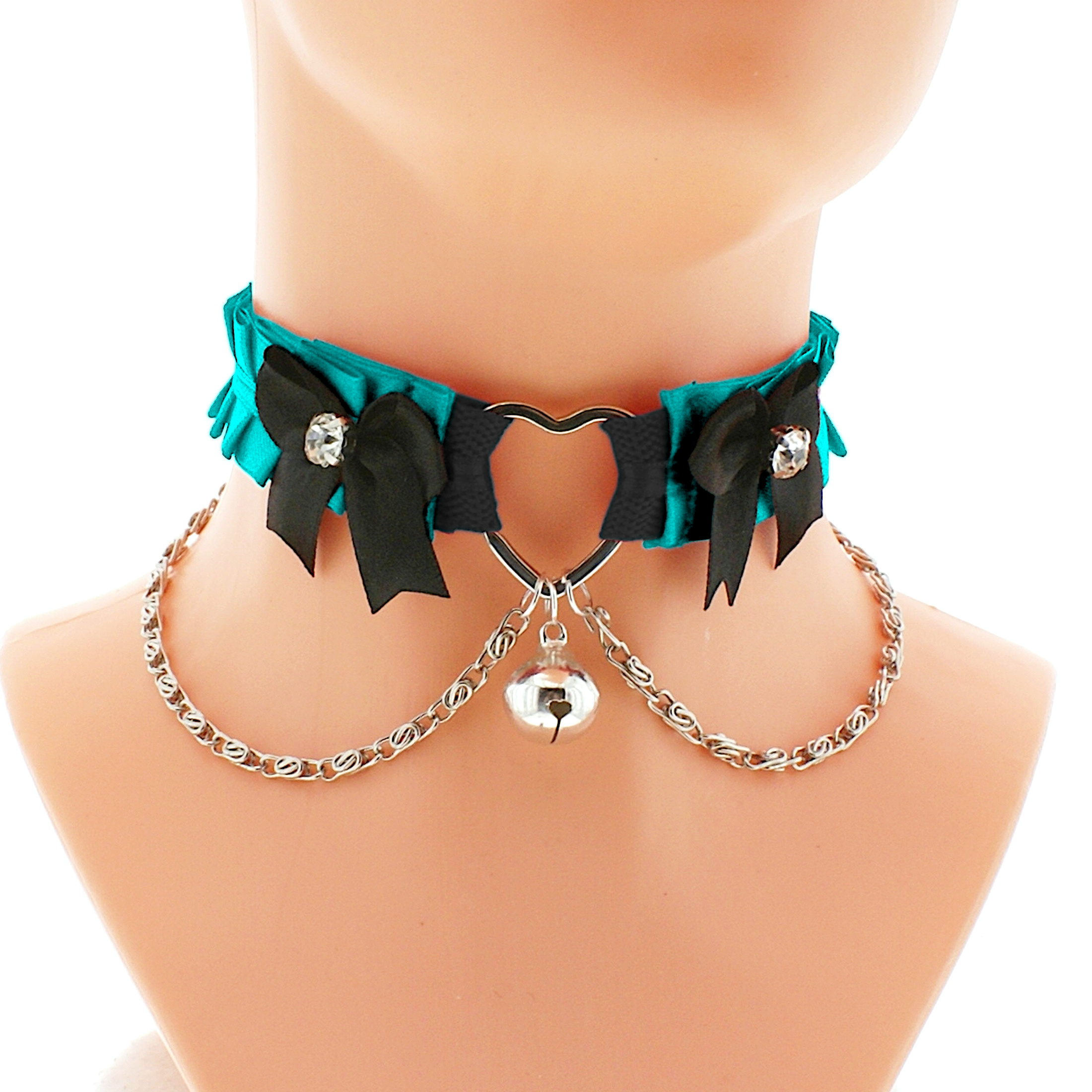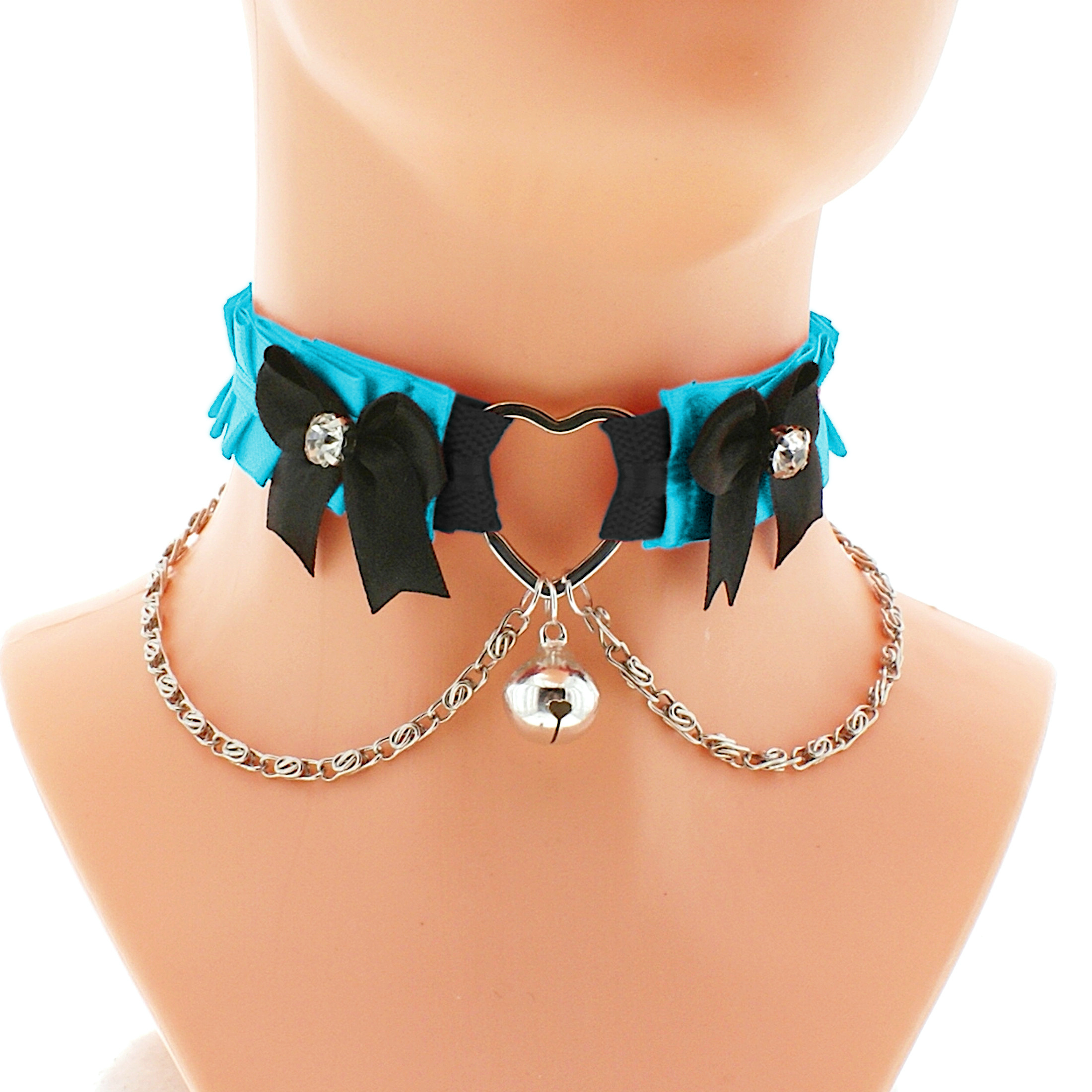 Choker satin heart extra kittenplay collar chain choker pet play necklace fancy collar more sizes choker satin bow