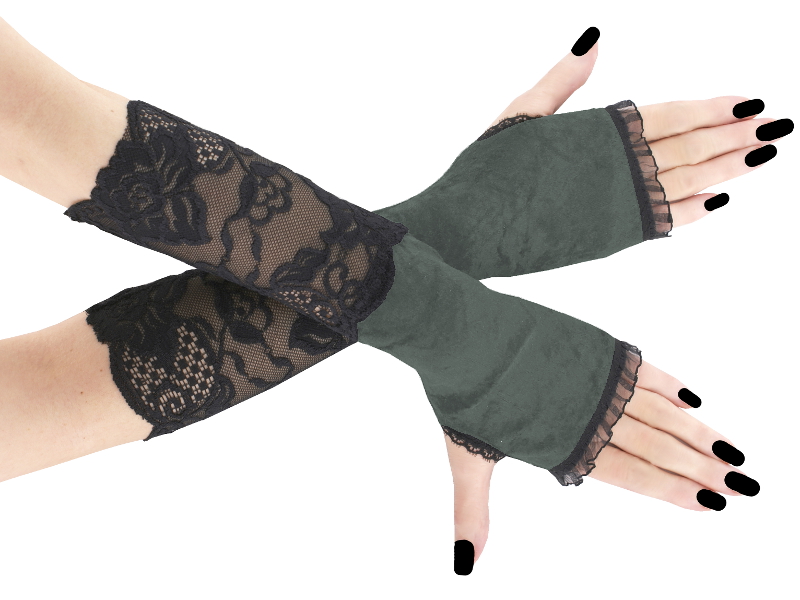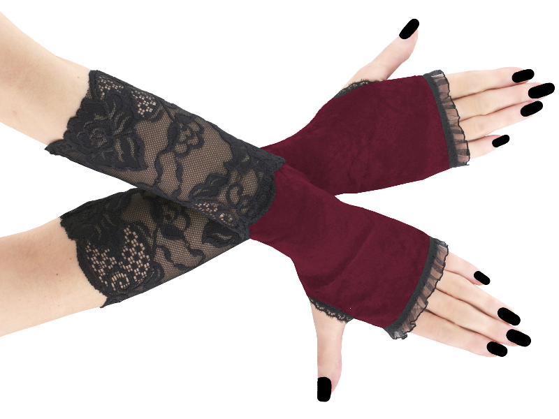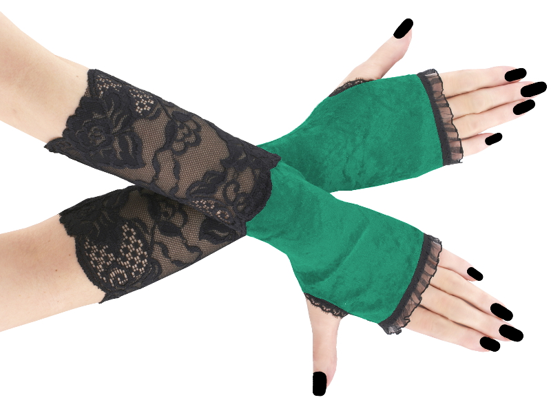 Black lace velvet long fingerless mittens, arm warmers gothic, burlesque lace, costume women evening gloves gothic, wedding goth 1010