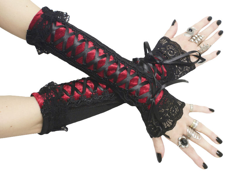 Gothic fingerless gloves, arm warmers, evening gloves, formal gloves, gloves women, red gloves, steampunk goth victorian vampire gloves 0340