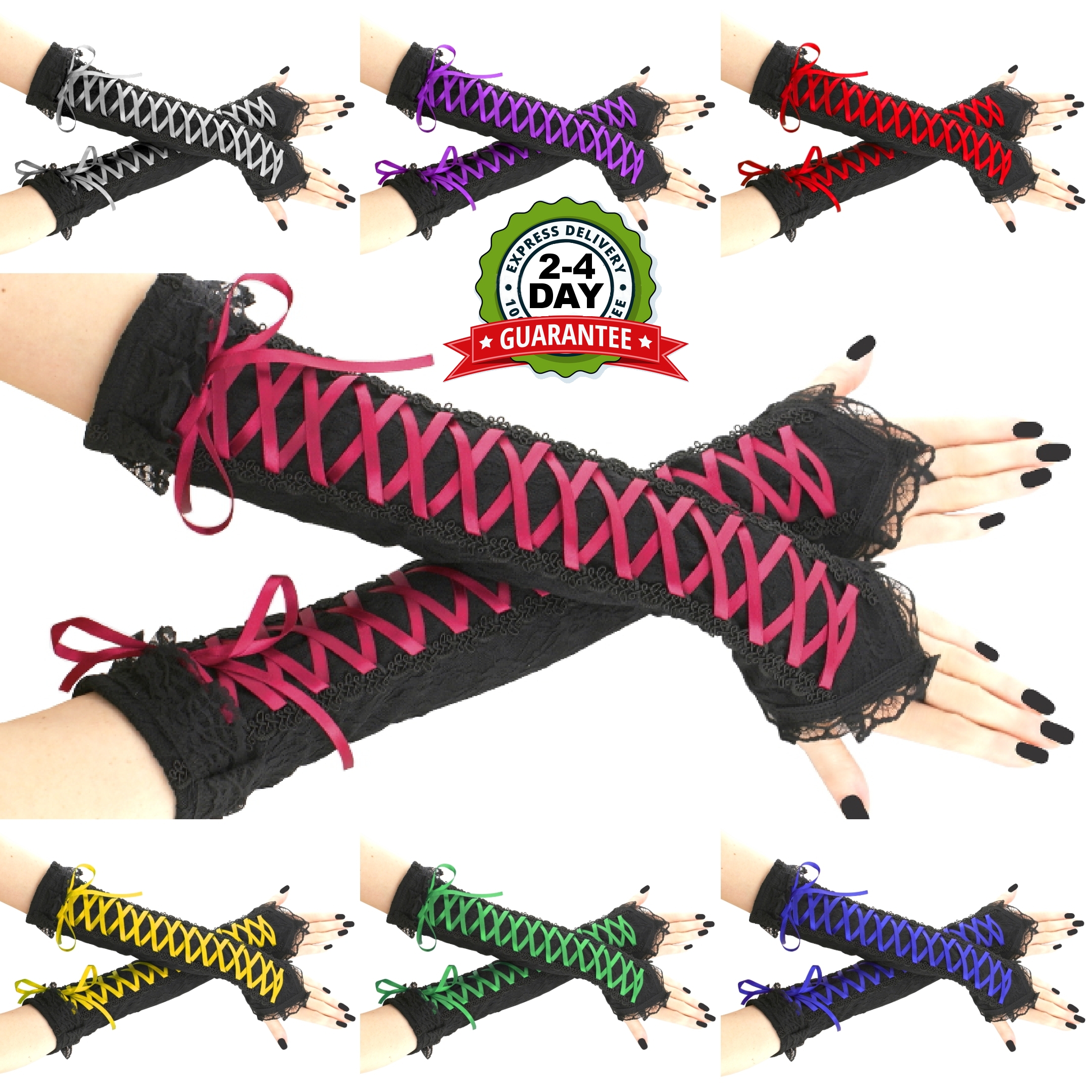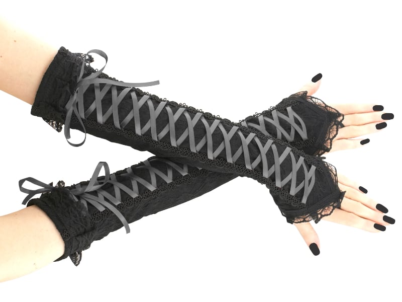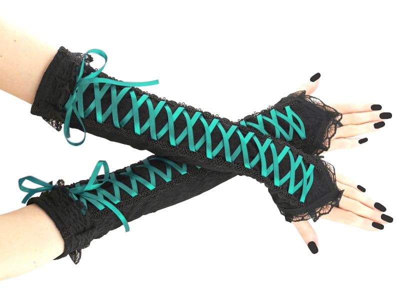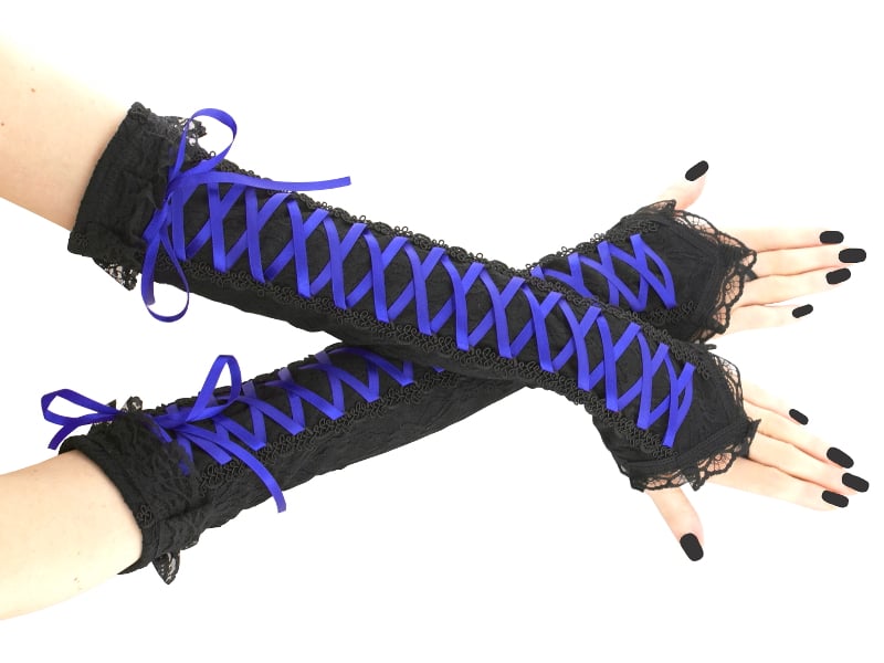 long fingerless gloves, black blue lace arm warmers gothic, burlesque womens black evening gloves, goth wedding, steampunk 3R