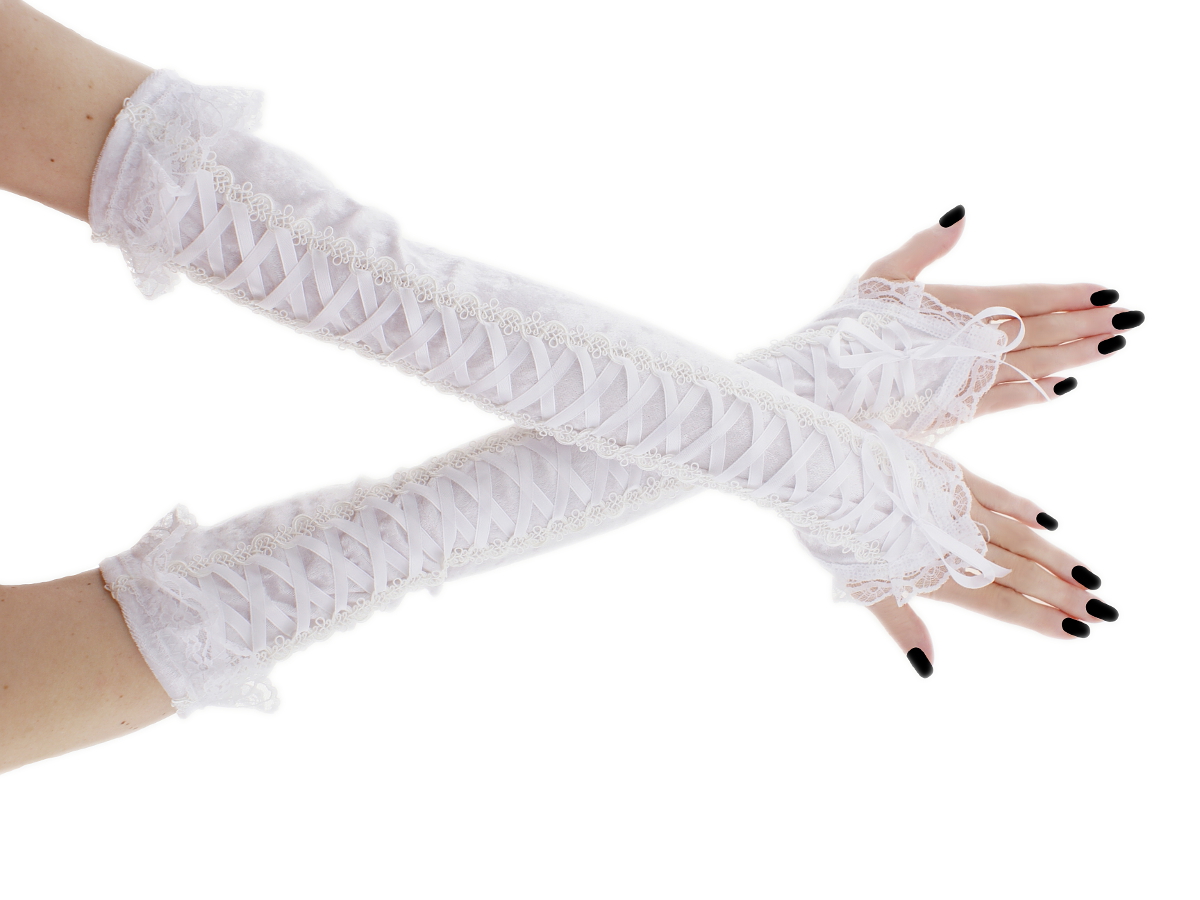 long fingerless gloves arm warmers with corset laced 0400