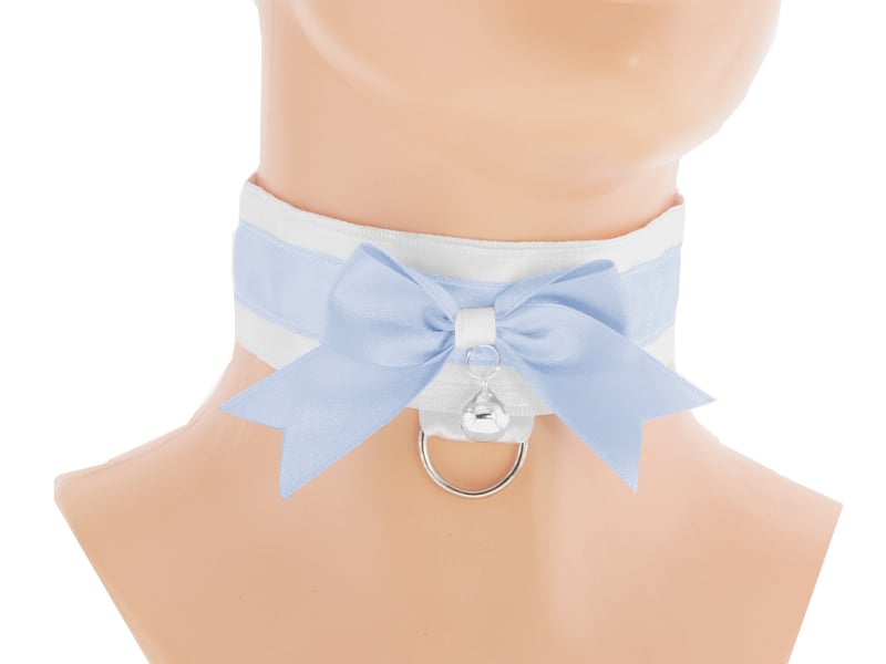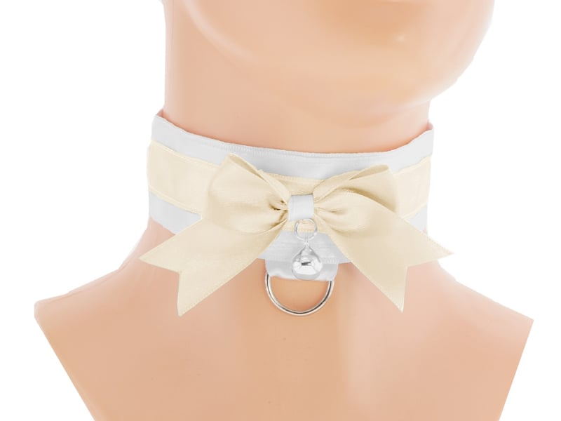 Kitten play Collar, BDSM ddlg Collar White pink Ribbon Kitten Collar Pet Play Collar, Choker, DDLG Collar, princess neko, pastel, puppy 05K
