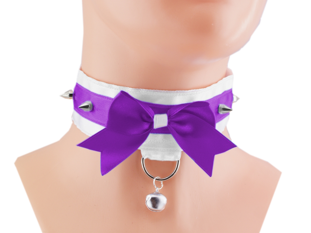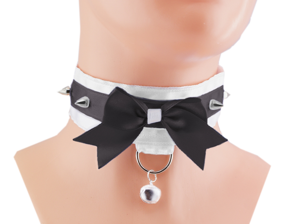 Black Kitten play Collar, spikes BDSM Collar Necklace white choker pastel gothic womens jewelry lolita, ddlg pet play bondage goth 07K1