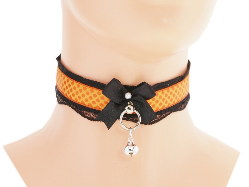 Kitten Play Collar, Pet Play Collar, Choker, Kitten Play Collar, BDSM, Pretty Bow BDSM Collar, Black orange Kitten Collar, neko prindess 041