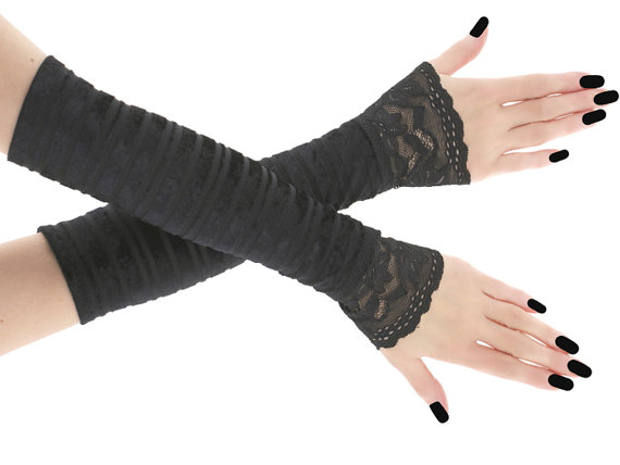 Black lace fingerless gloves, arm warmers in gothic, burlesque, gloves, gothic lace bridal gloves, womens evening gloves goth cospaly 011A