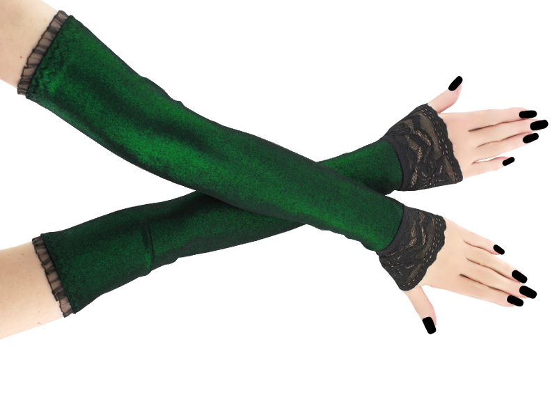 Metallic green black arm warmers, long arm warmers glitter gothic fetish belly dance, elegant romantic, bondage, vampire gloves opera 8