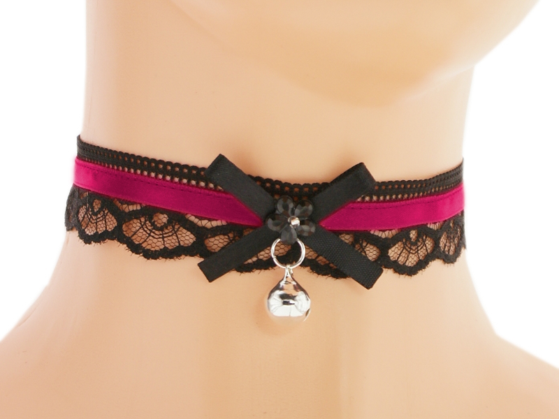 Kitten play collar, pet play, neko girl, lace necklace, black magenta choker, gothic choker, burlesque, puppy kawaii, pastel goth K5