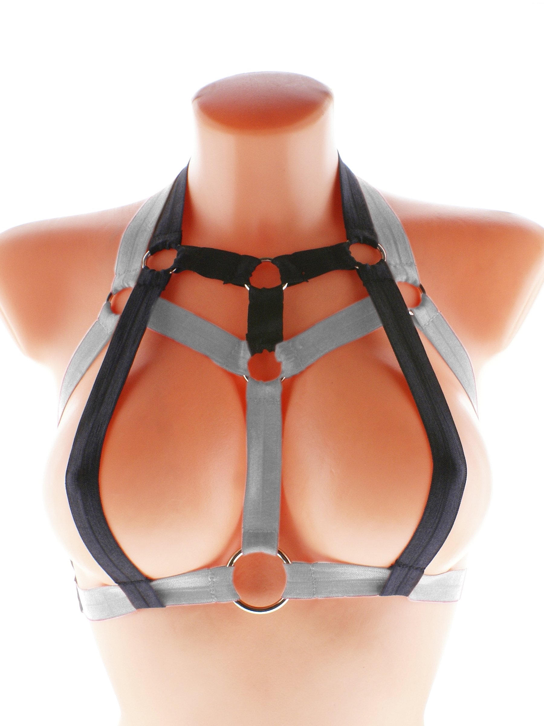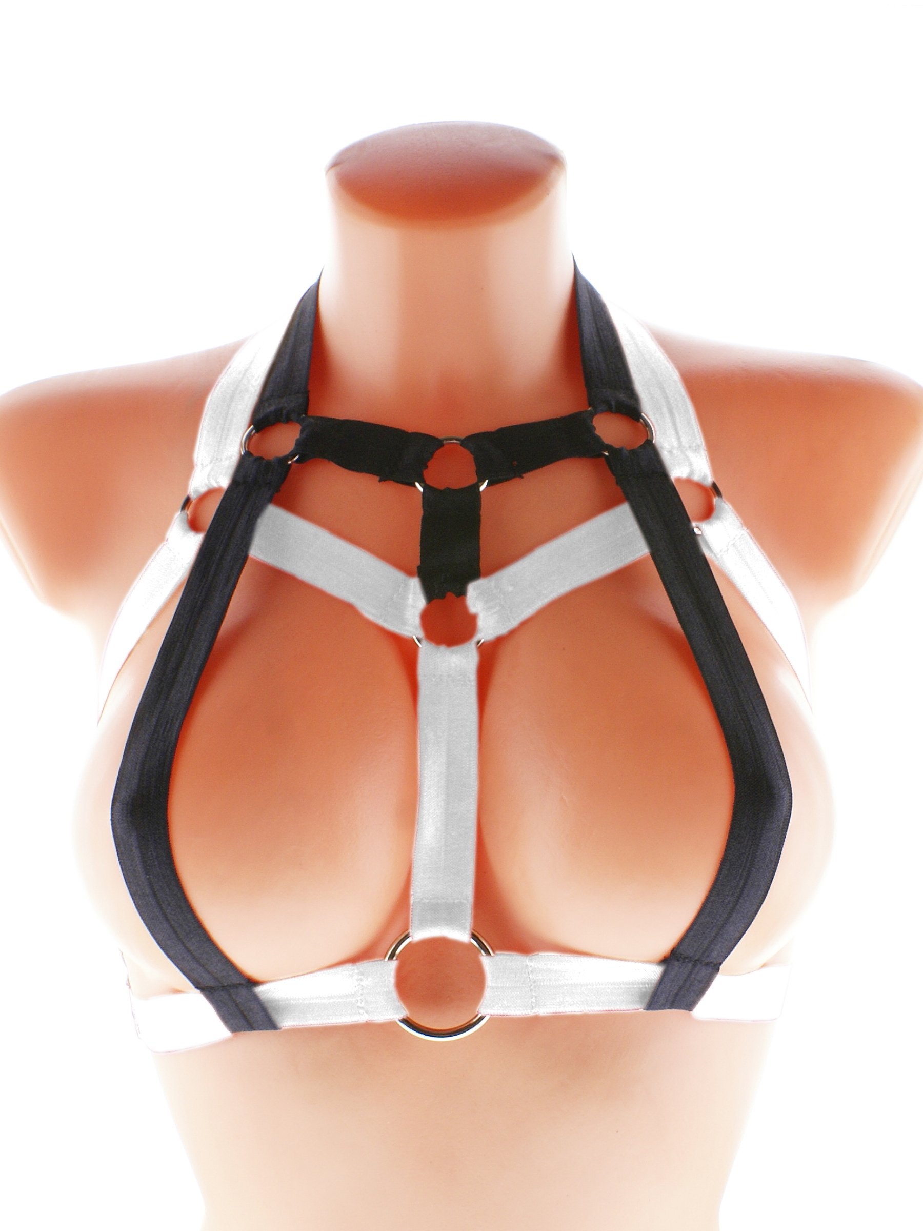 Elastic women harness, elastic bra harness, harness bra, bra cage harness, elastic chest harness, black white harness bralette, chest harness 2