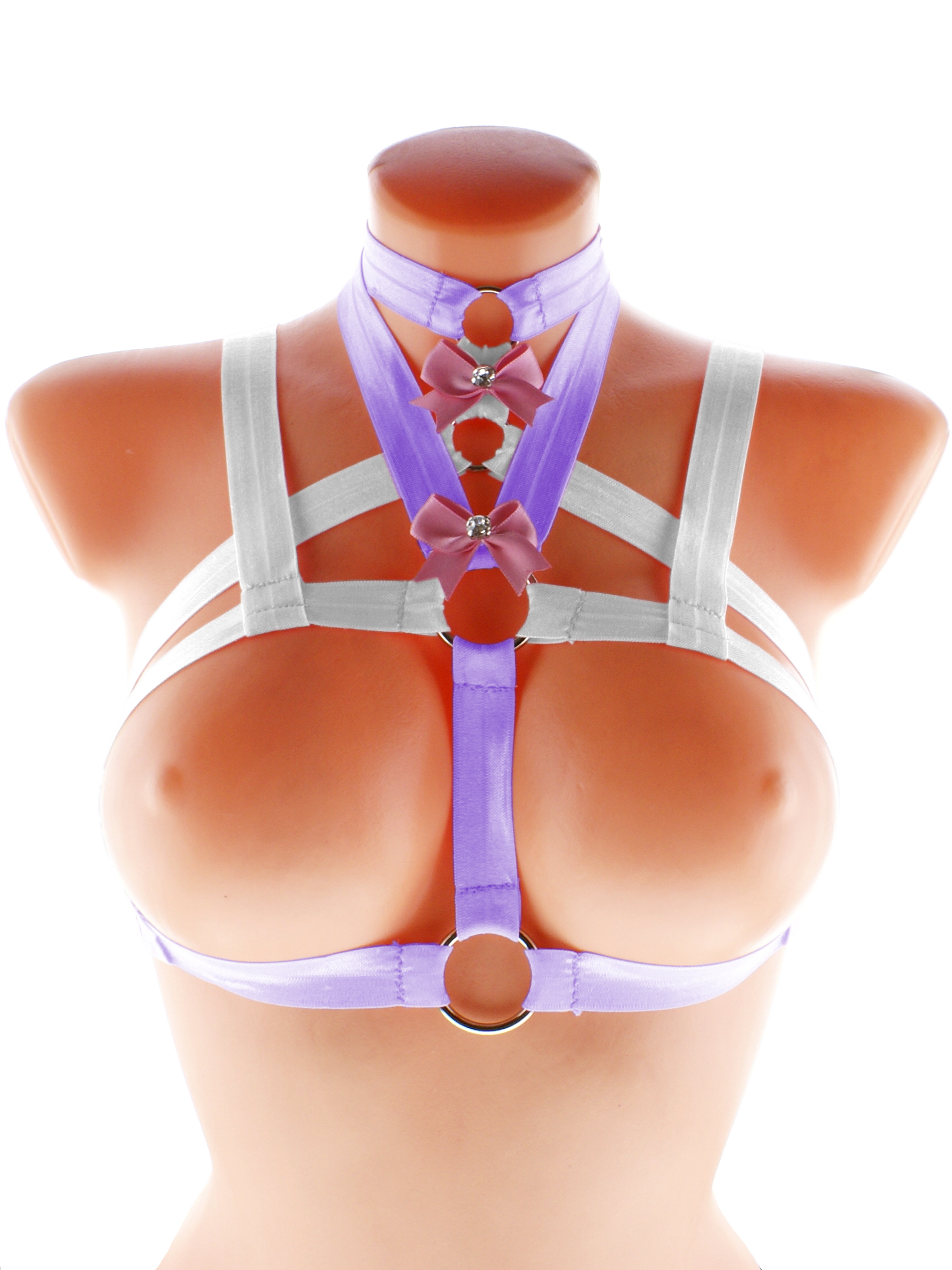 Elastic women harness, elastic bra harness, harness bra, bra cage harness, elastic chest harness, white lilac harness bralette, chest harness 2