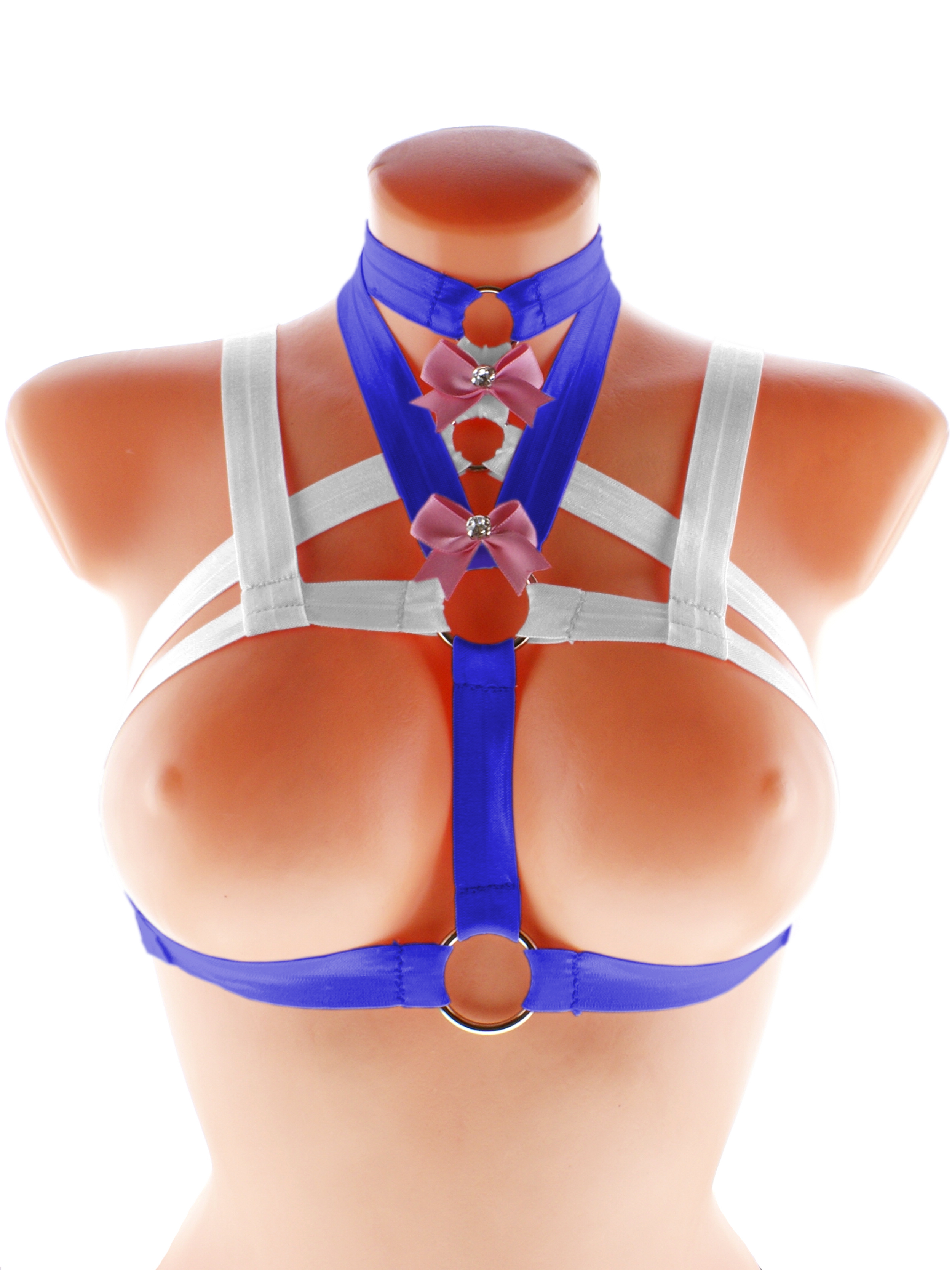 Elastic women harness, elastic bra harness, harness bra, bra cage harness, elastic chest harness, white red harness bralette, chest harness 2