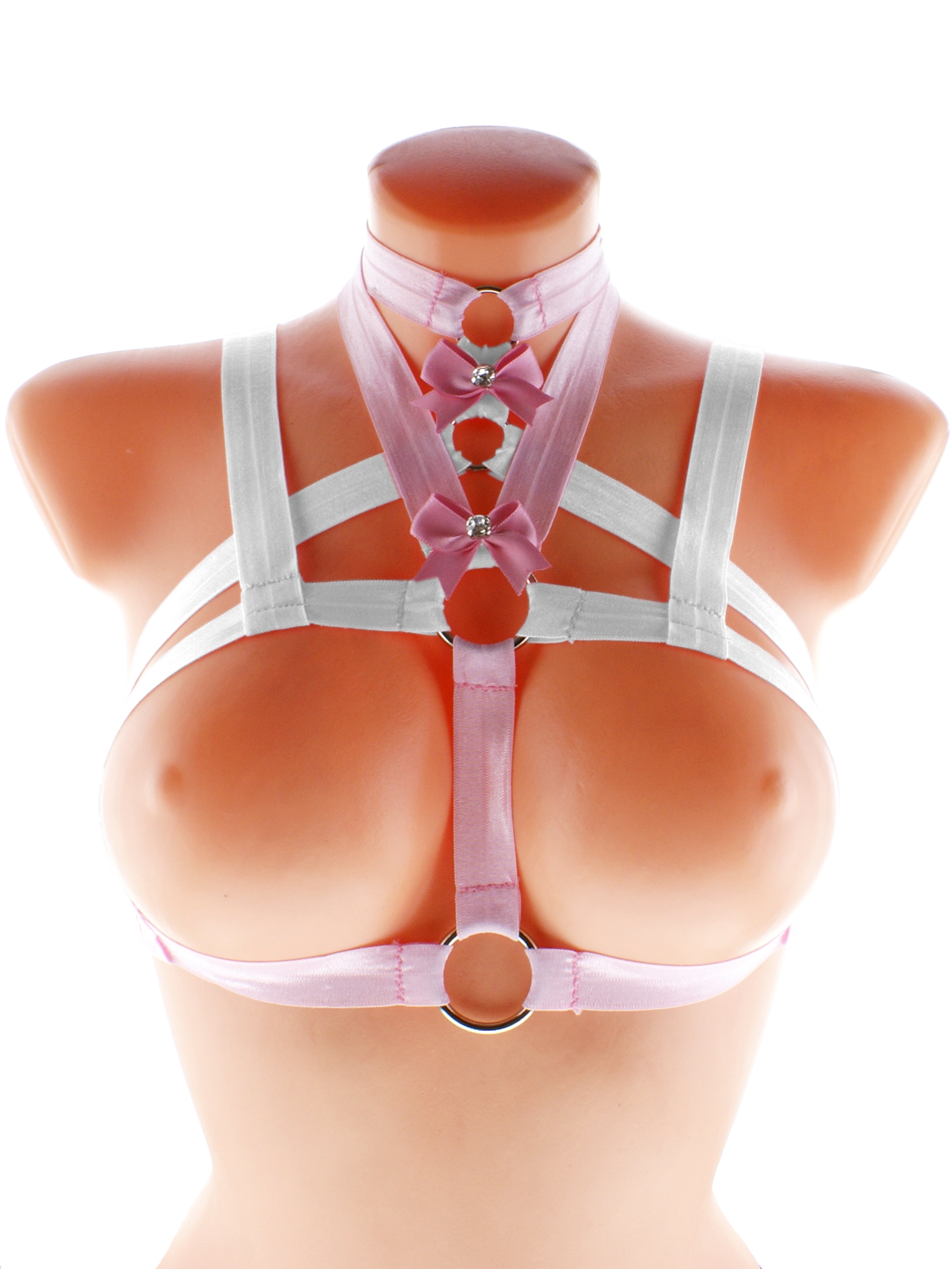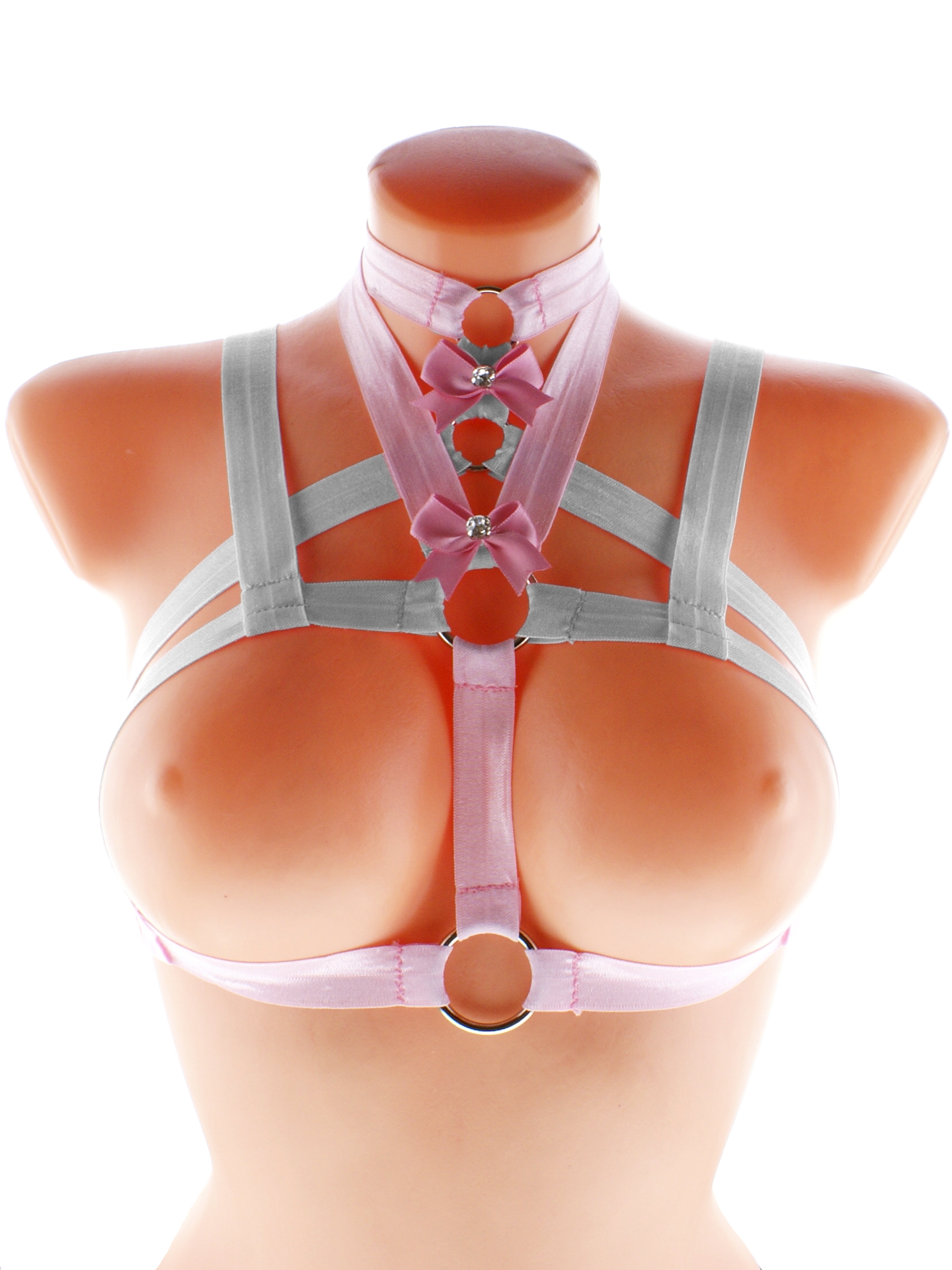 Elastic women harness, elastic bra harness, harness bra, bra cage harness, elastic chest harness, pink harness bralette, chest harness 2