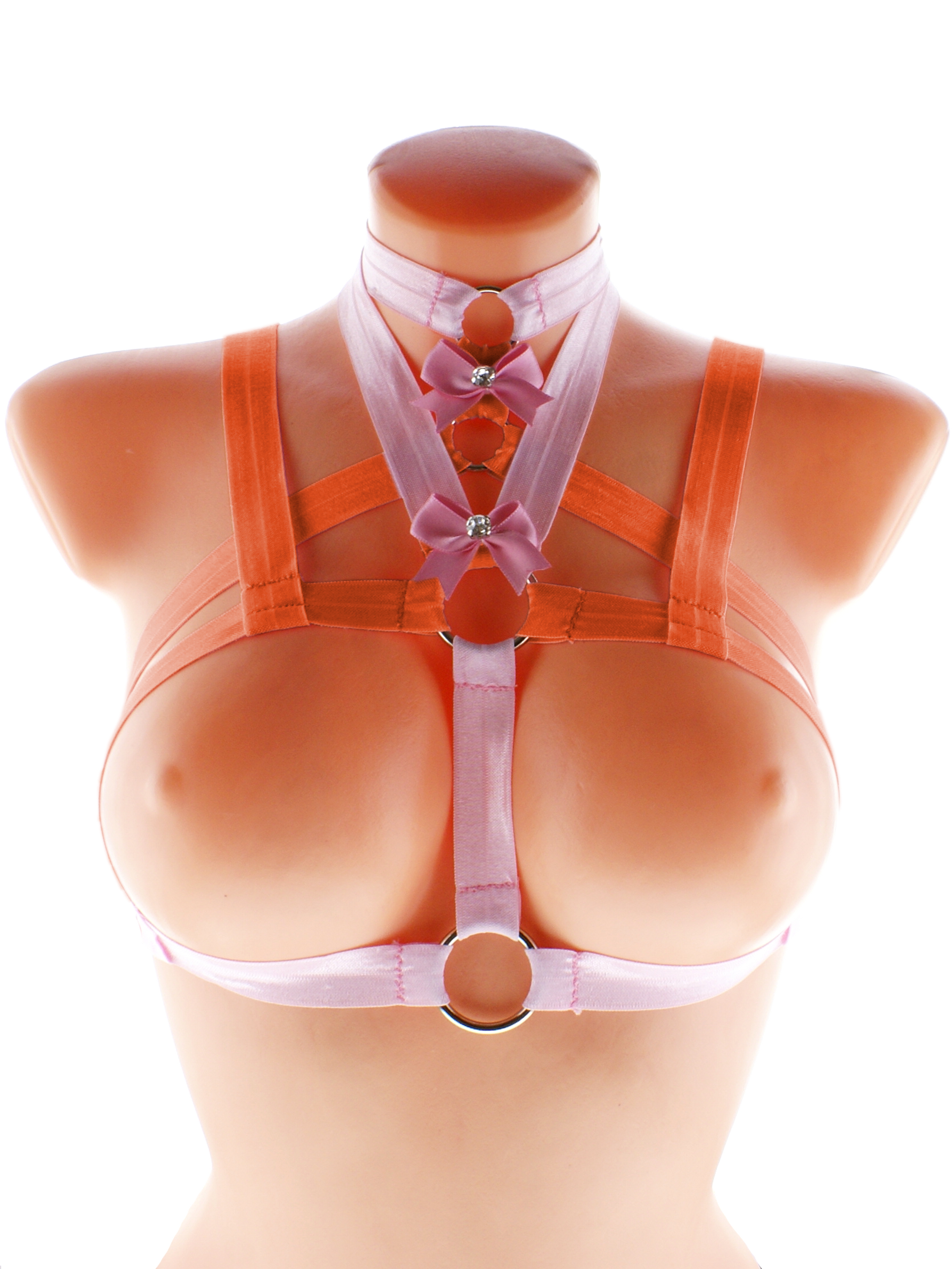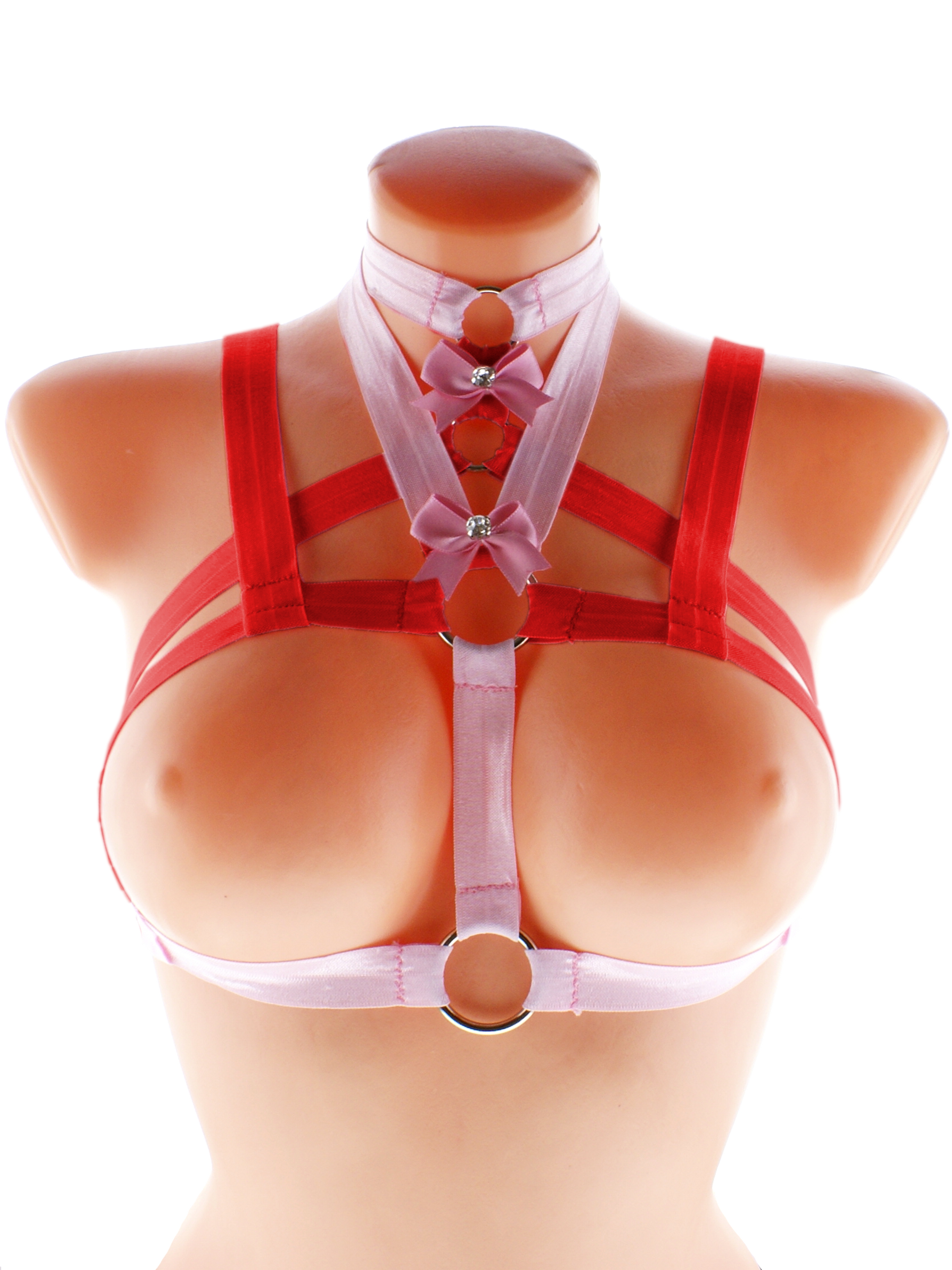 Elastic women harness, elastic bra harness, harness bra, bra cage harness, elastic chest harness, pink harness bralette, chest harness 2