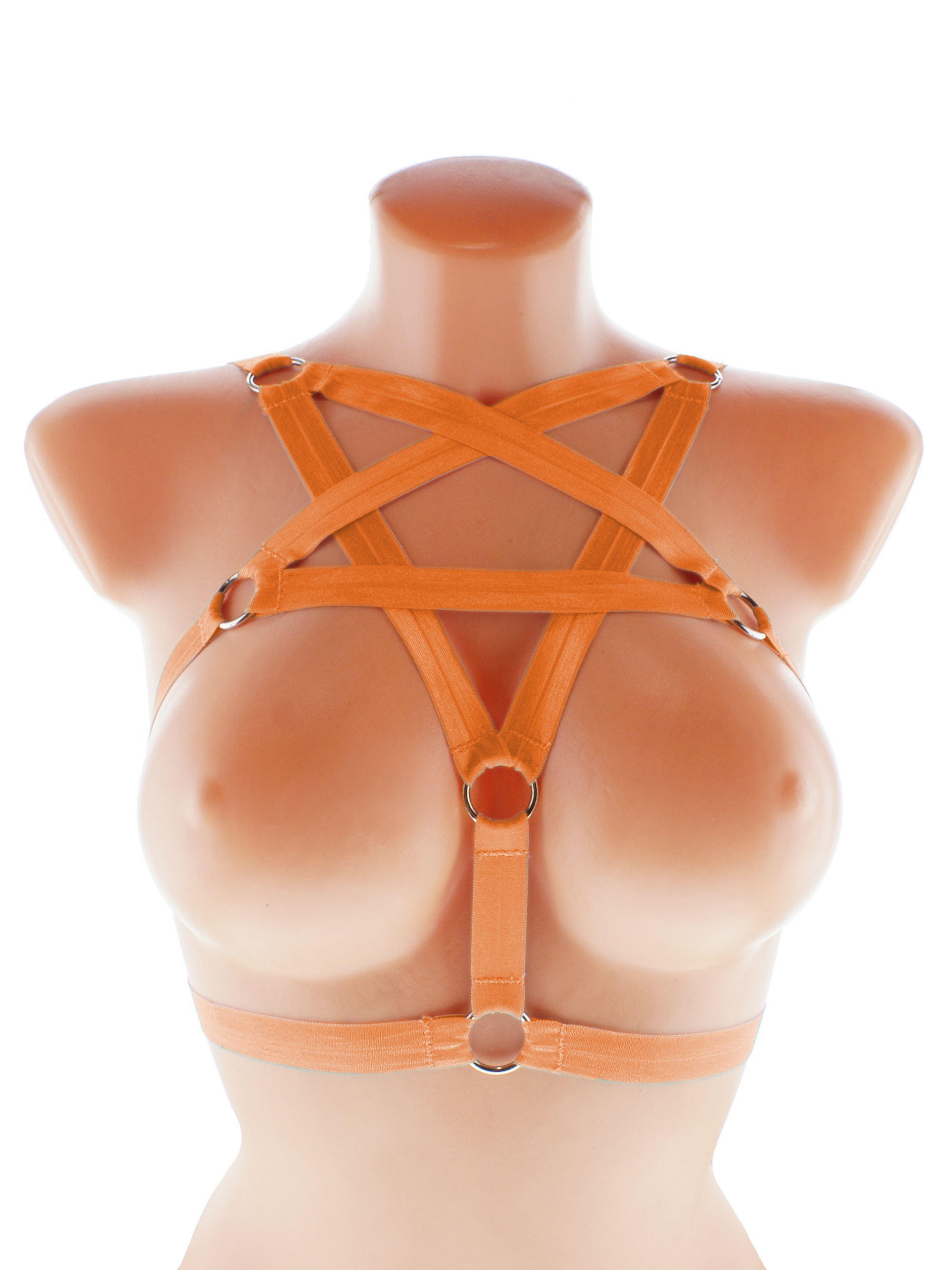 Pentagram Elastic women harness, elastic bra harness, harness bra, bra cage harness, elastic chest harness, green harness bralette, chest harness 2