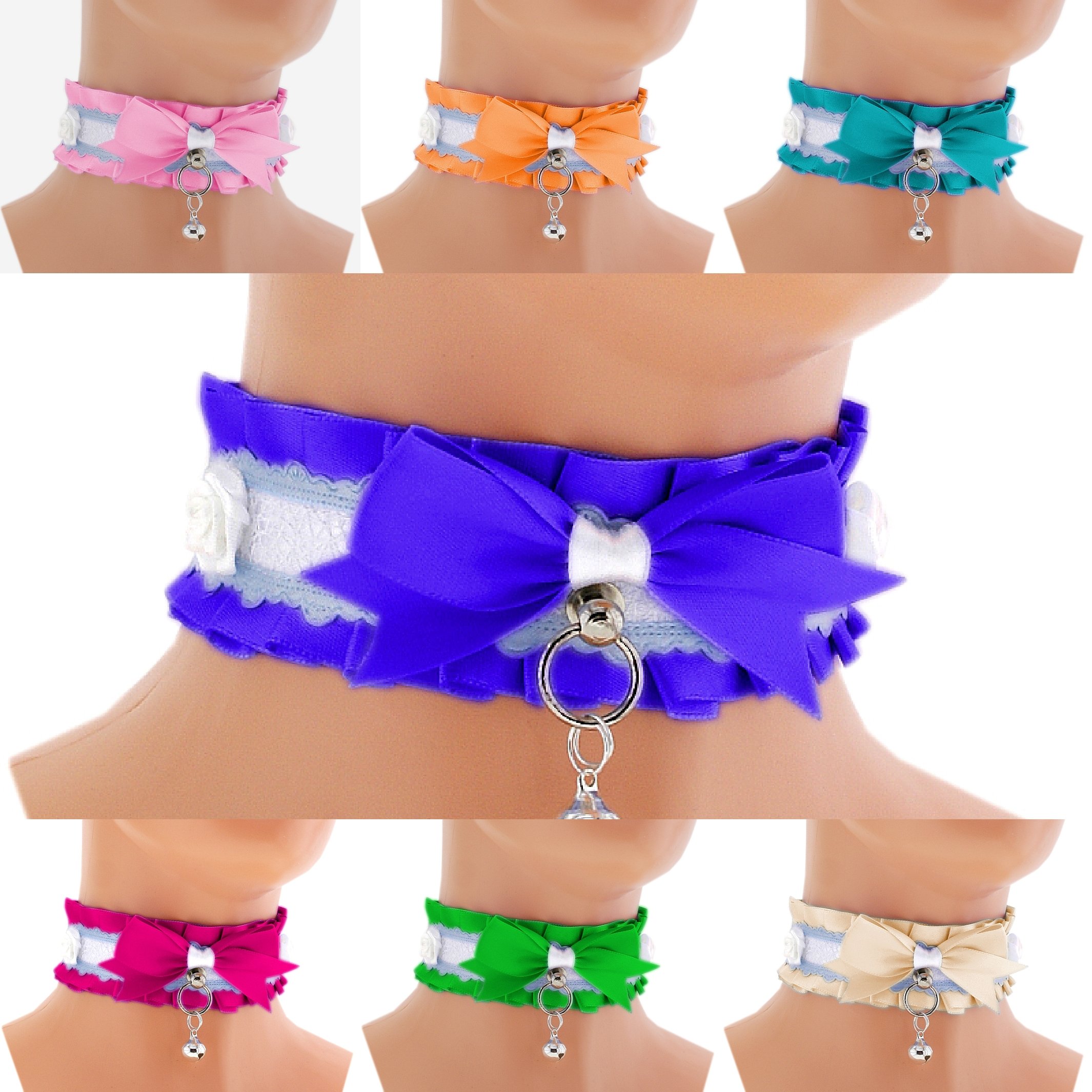Kittenplay choker kitten petplay gear play collar satin lace Choker bell necklace neko collar daddys girl costume choker jewelry fairy kei