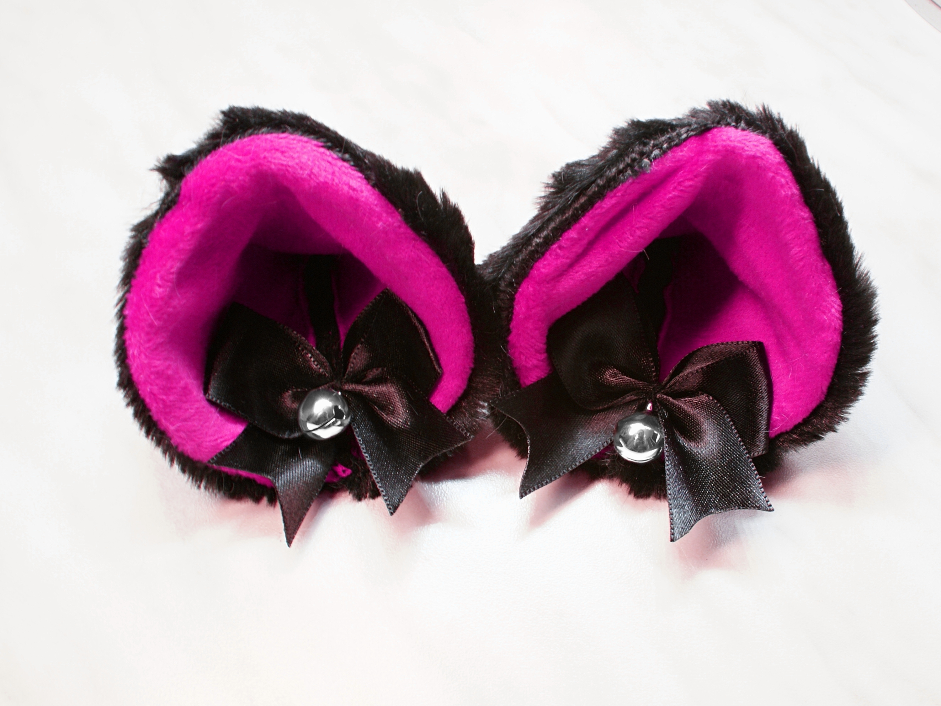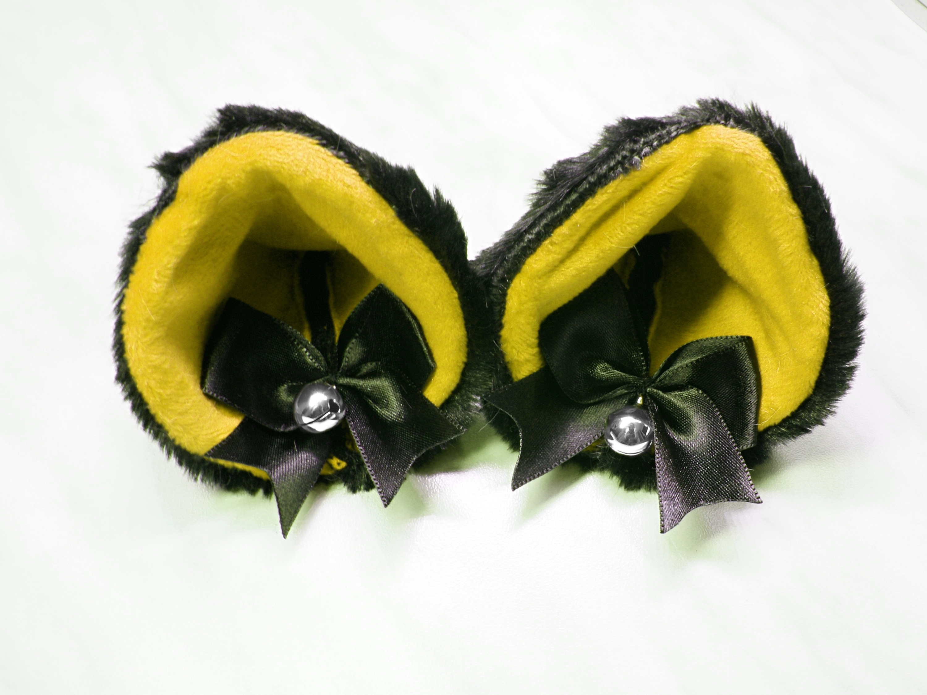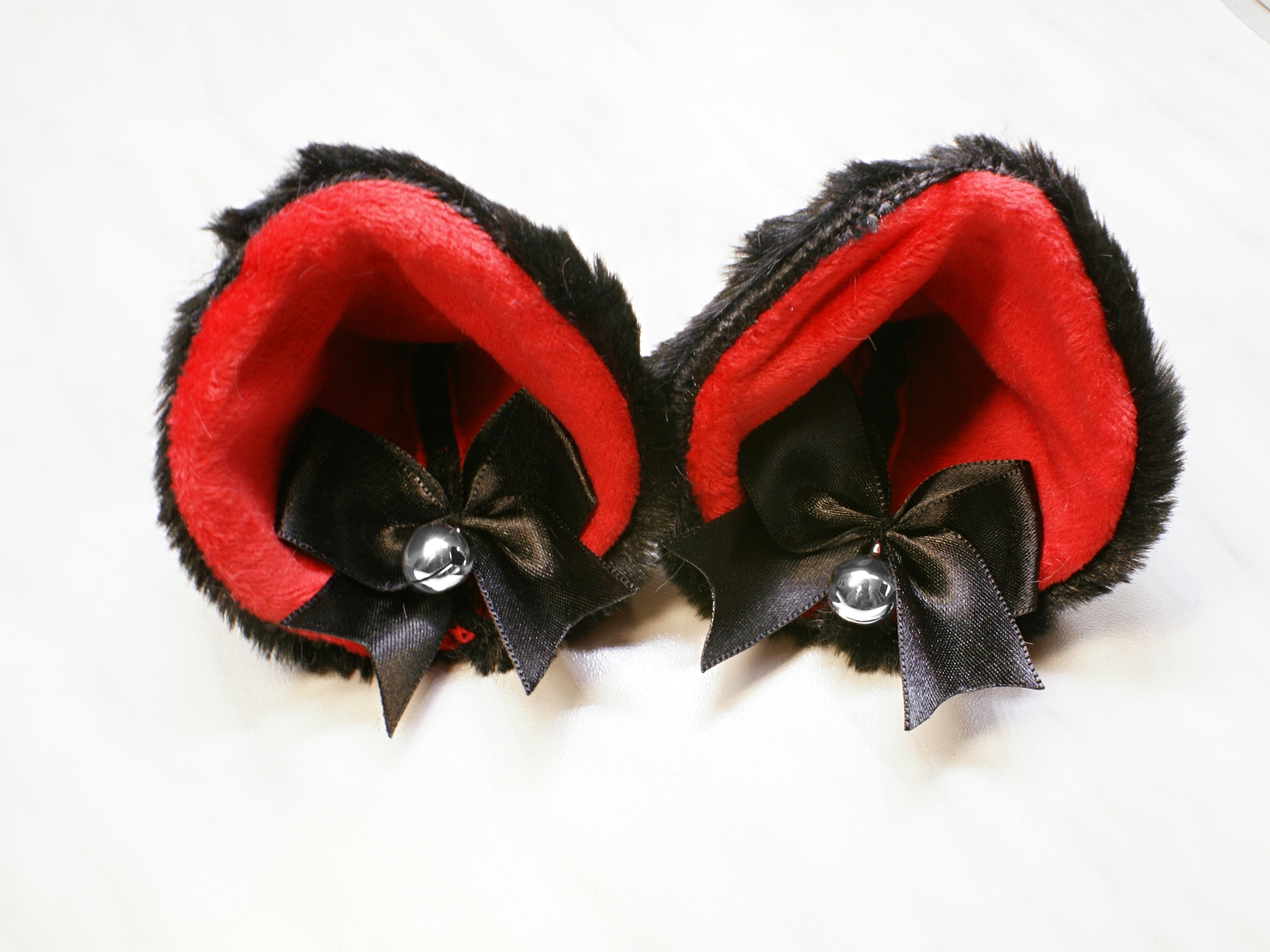 The ears are made of faux fur. Satin ribbons, as ornaments. A bell is attached to the ribbon. A metal clip for attaching the ears is attached to the underside of the ears. Added metal headband so that the ears can be attached to the headband. So you have more options for wearing ears. You can wear them in several ways.