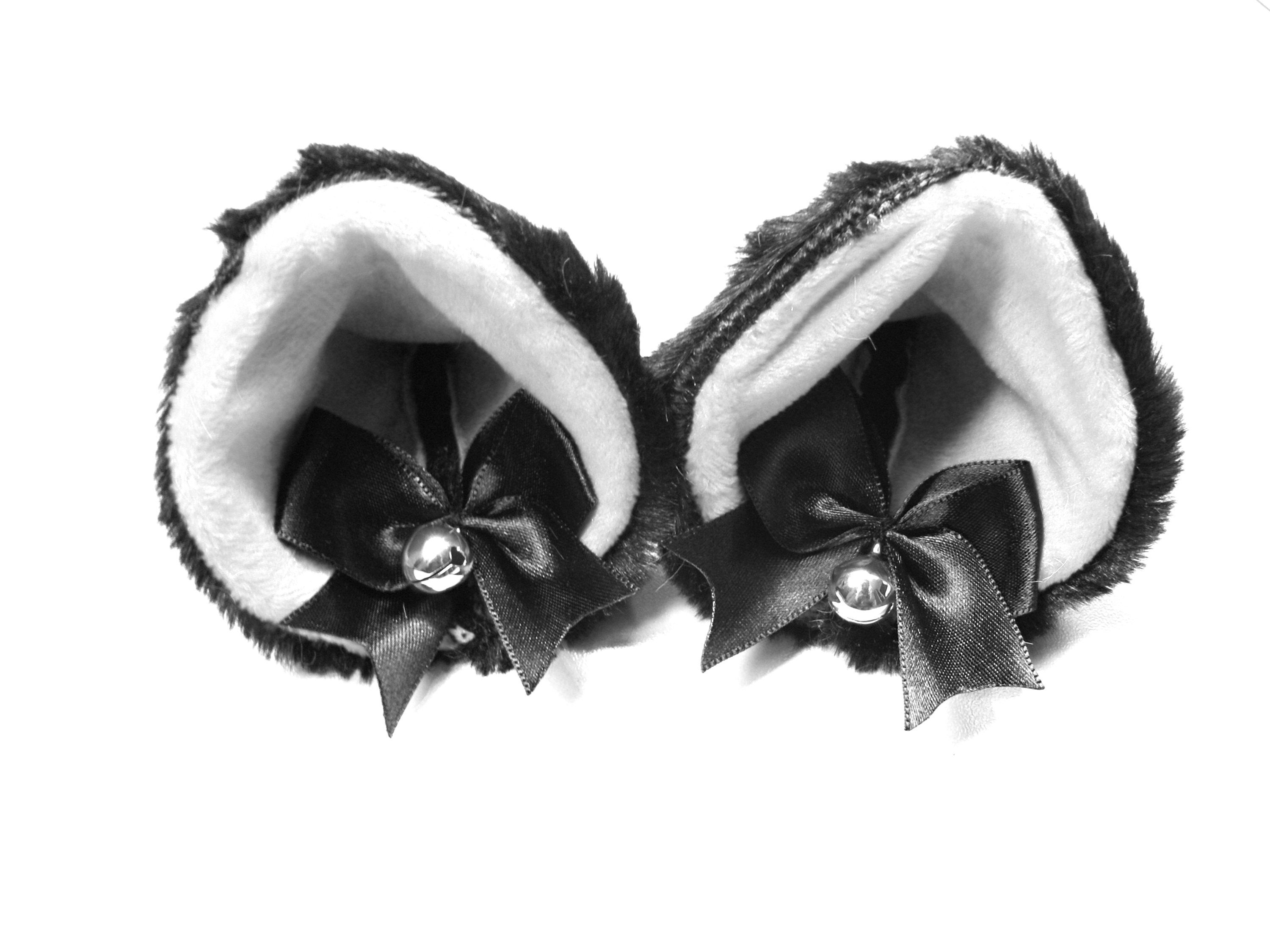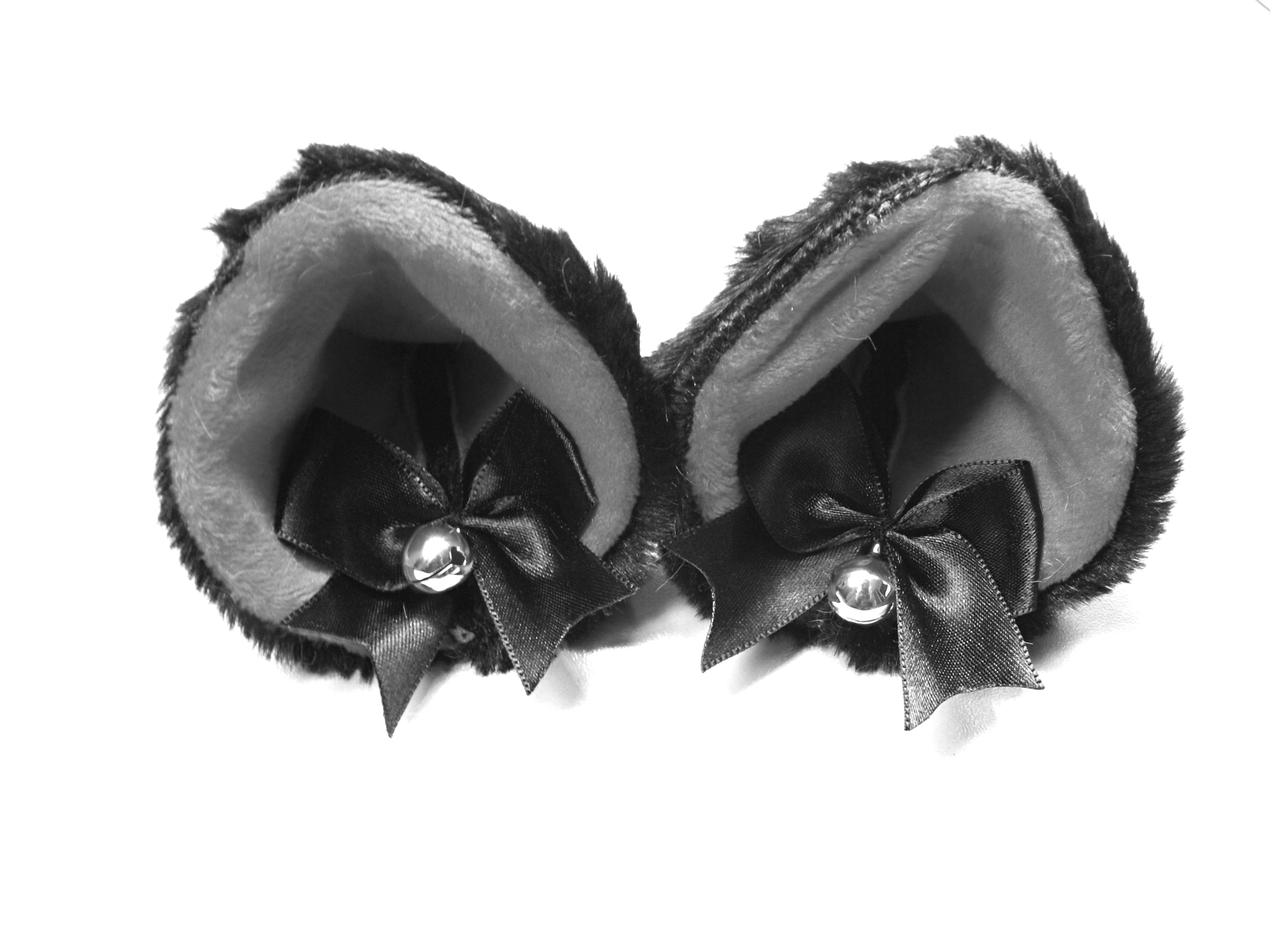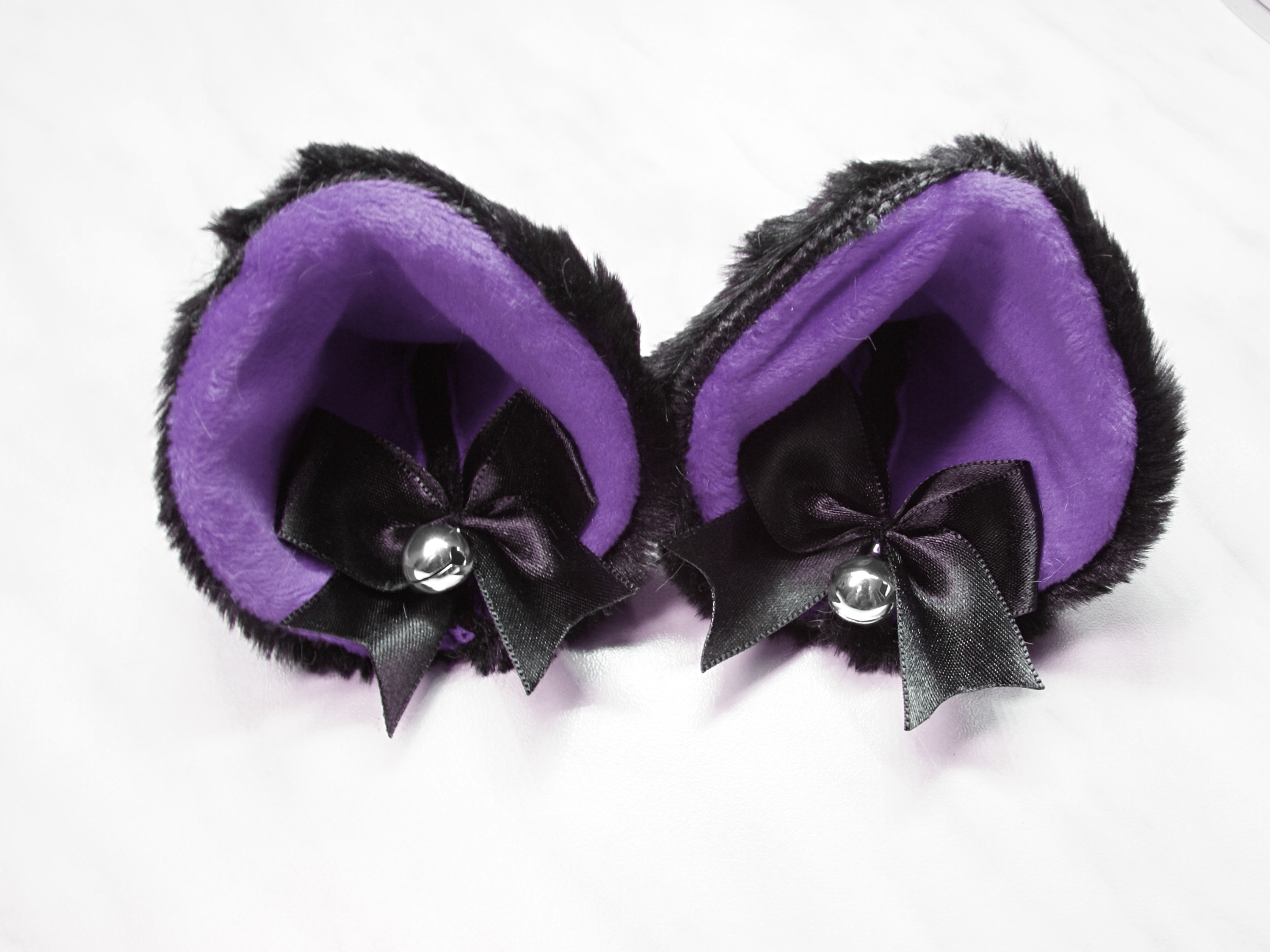 The ears are made of faux fur. Satin ribbons, as ornaments. A bell is attached to the ribbon. A metal clip for attaching the ears is attached to the underside of the ears. Added metal headband so that the ears can be attached to the headband. So you have more options for wearing ears. You can wear them in several ways.