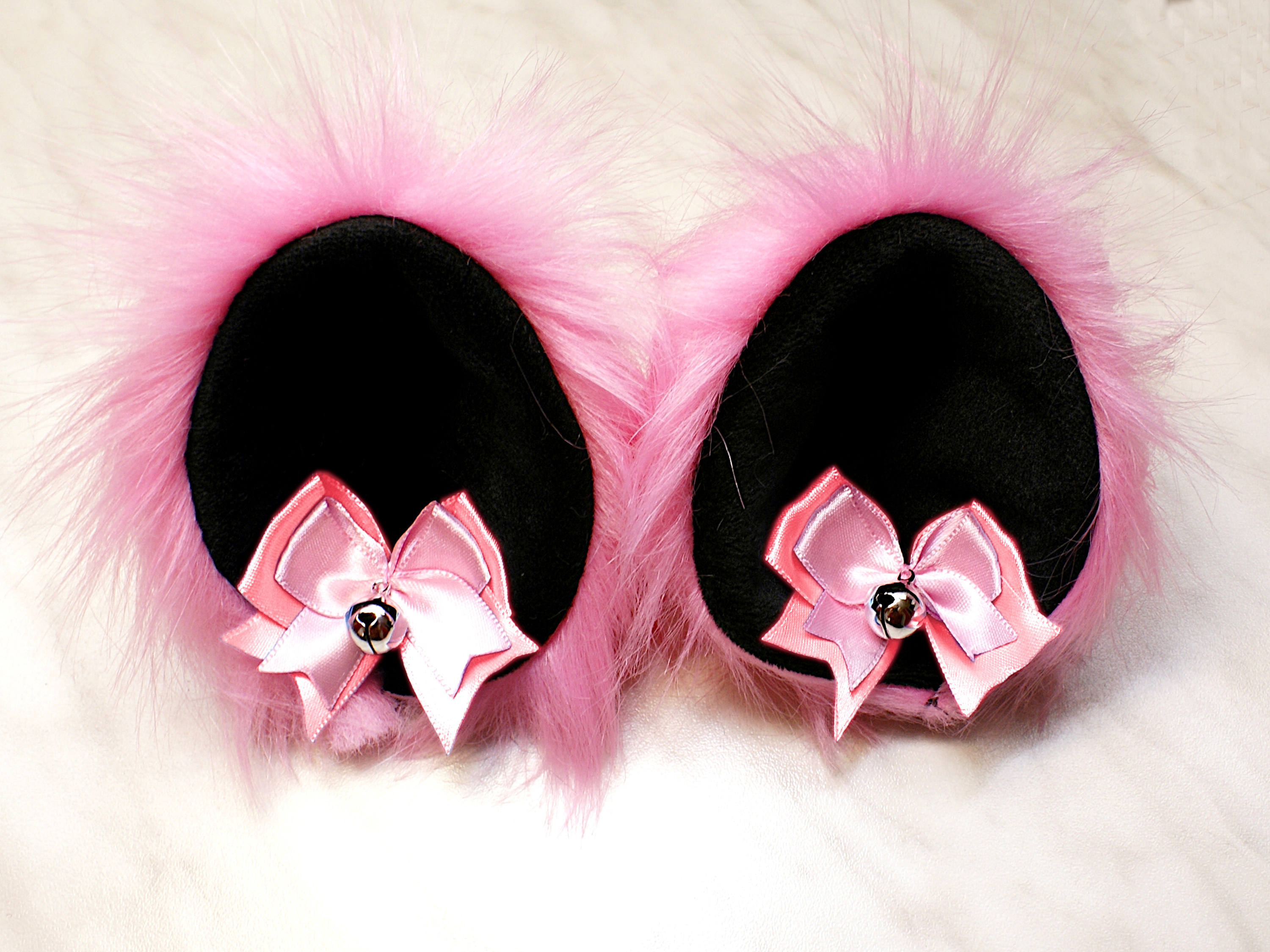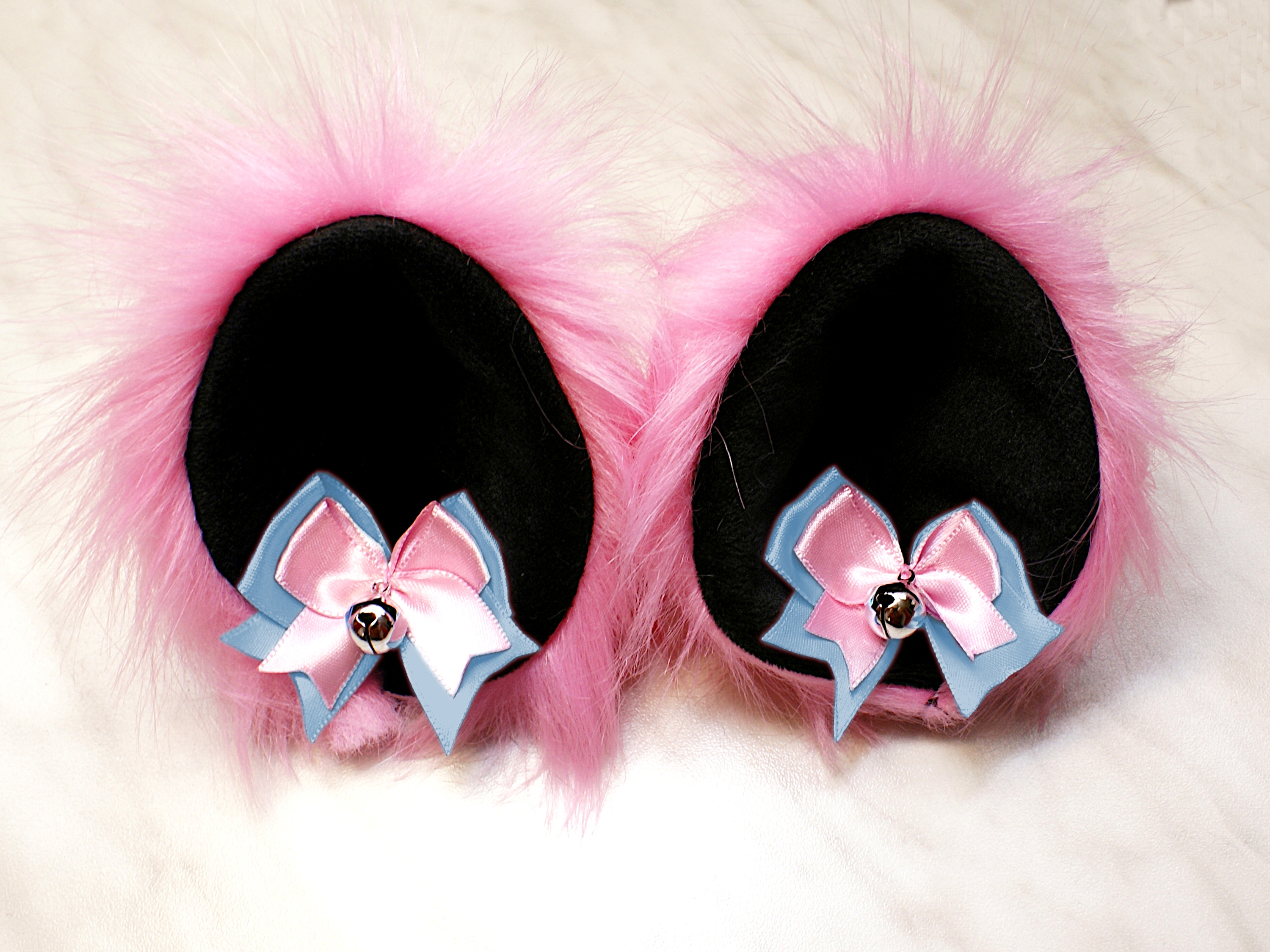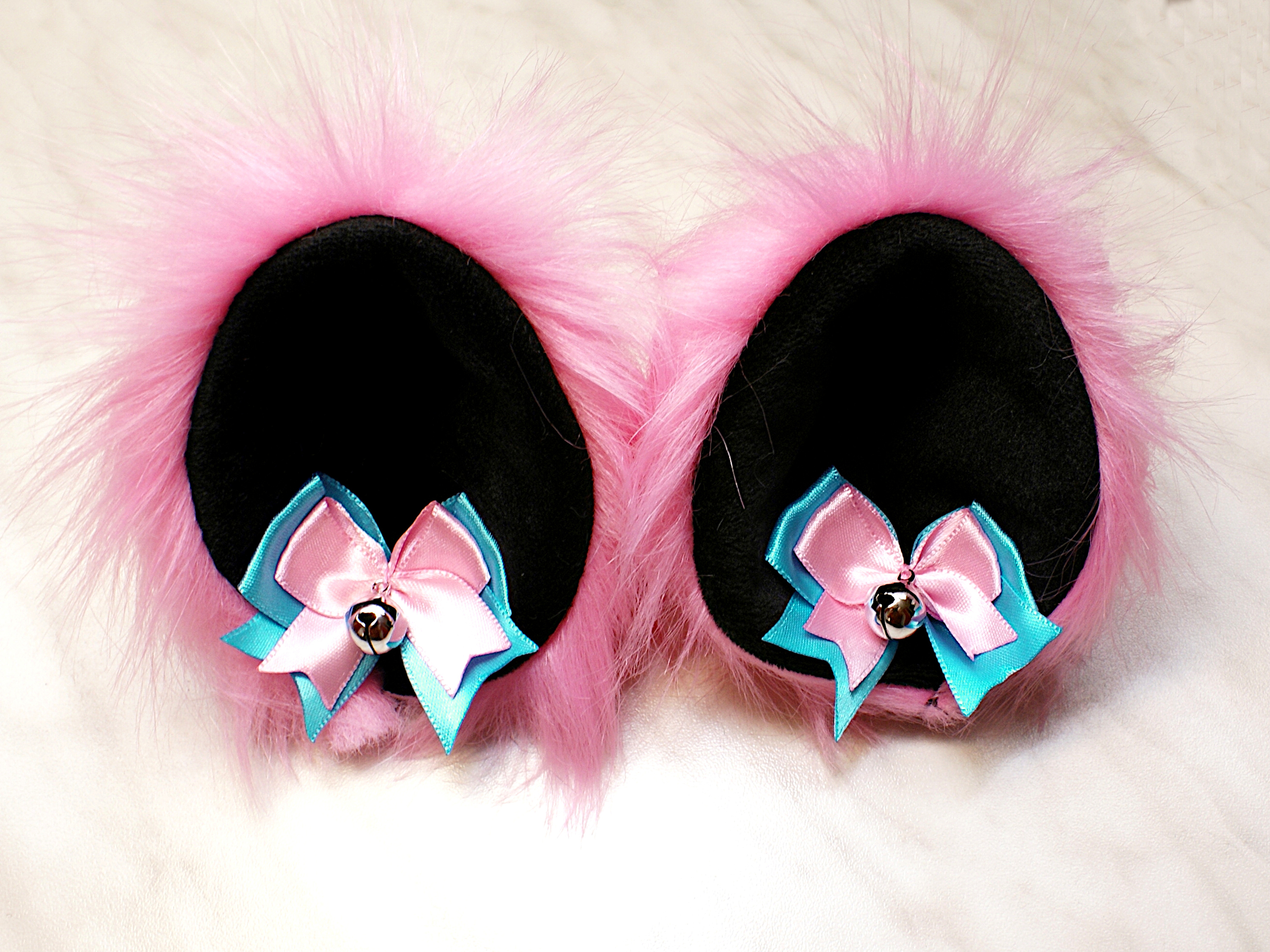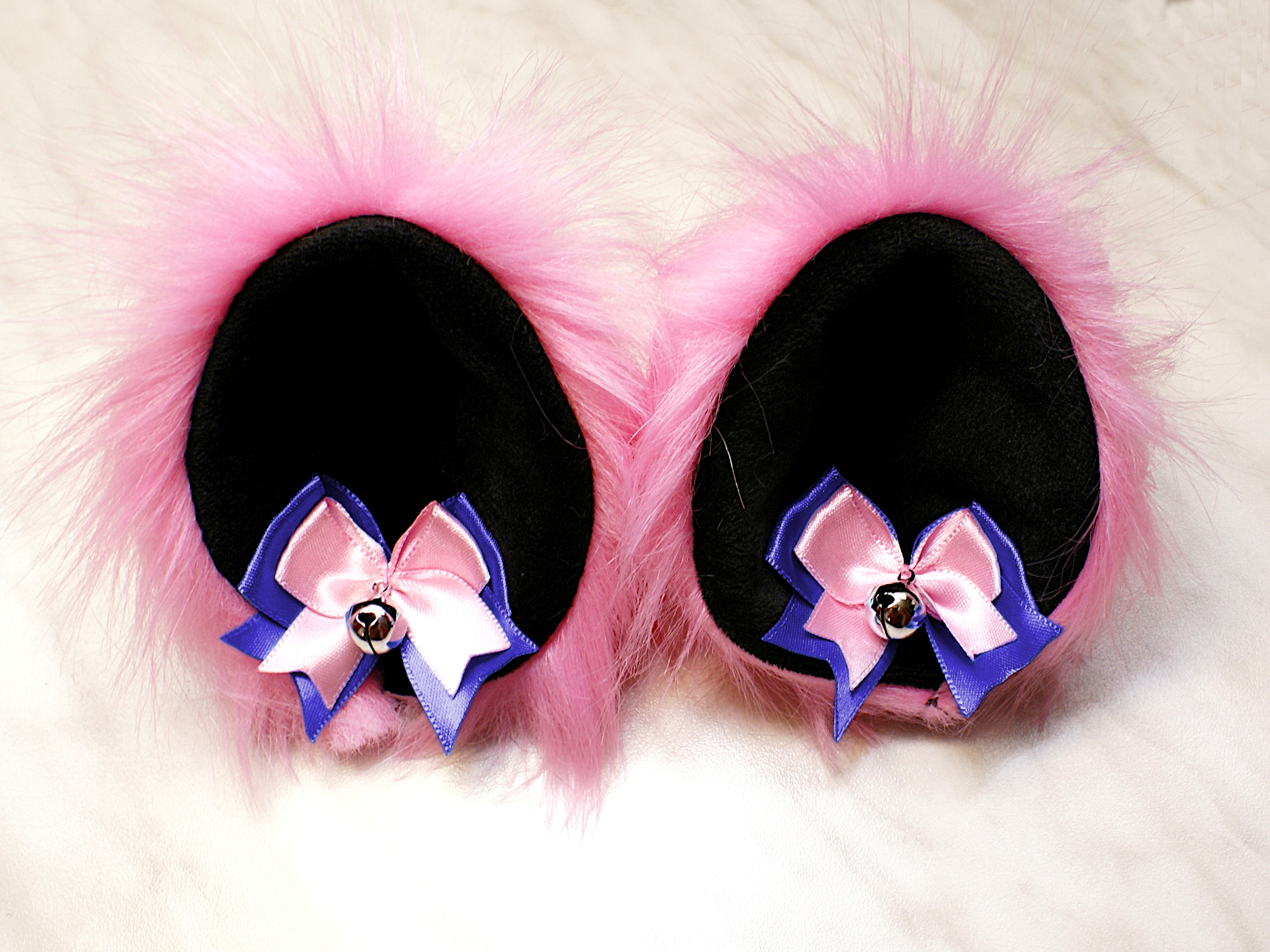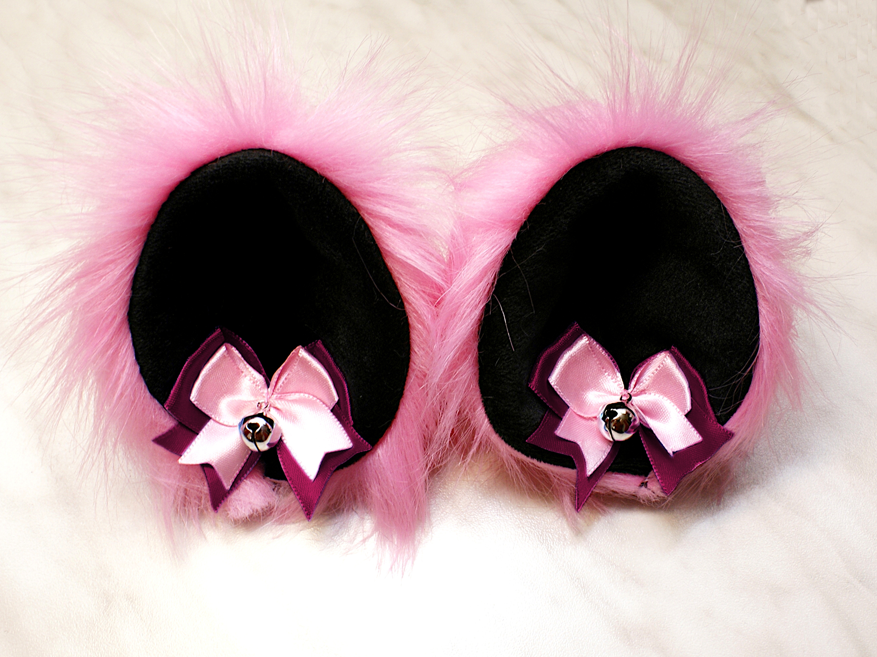 The ears are made of faux fur. Satin ribbons, as ornaments. A bell is attached to the ribbon. A metal clip for attaching the ears is attached to the underside of the ears. Added metal headband so that the ears can be attached to the headband. So you have more options for wearing ears. You can wear them in several ways.