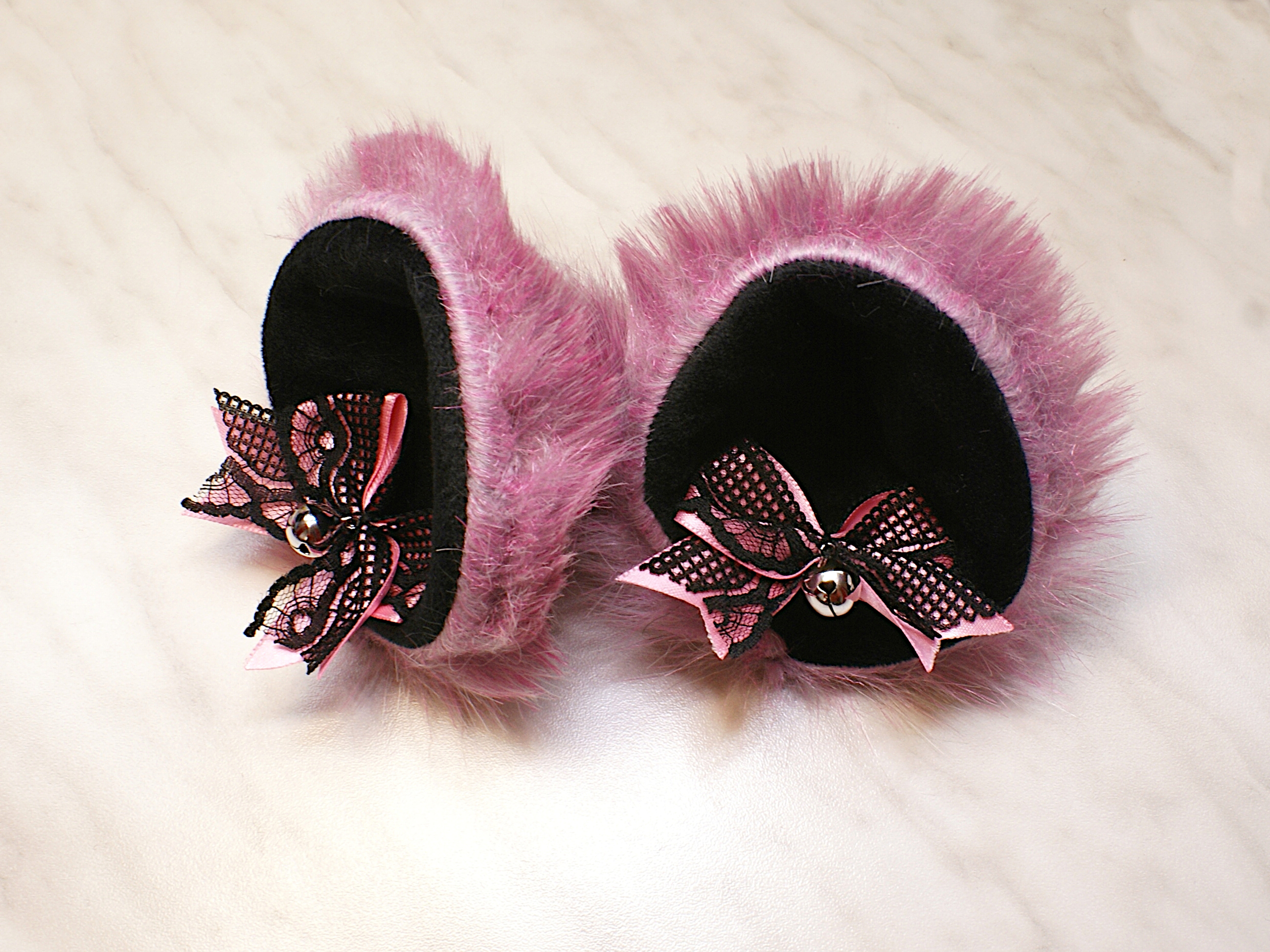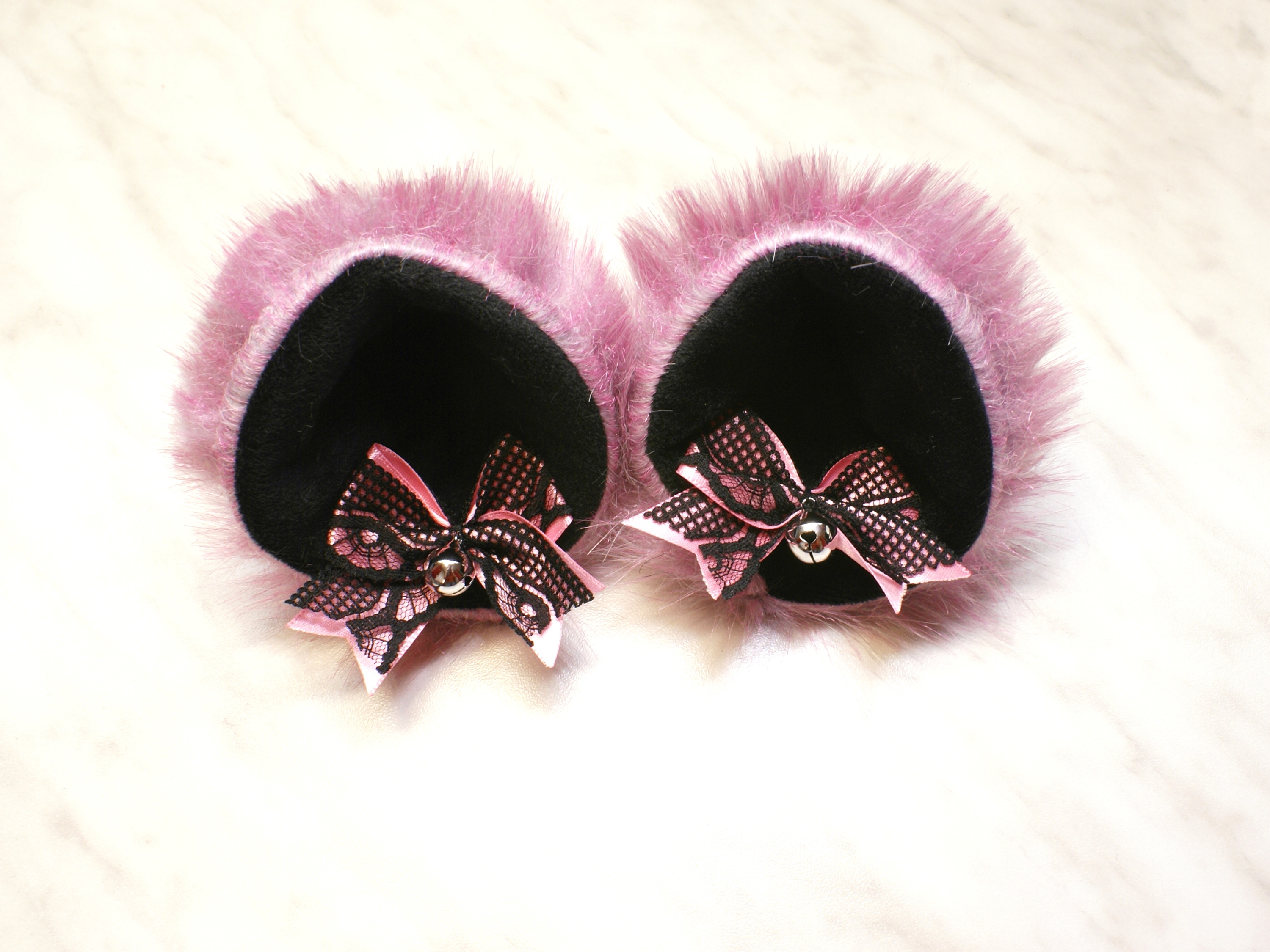 The ears are made of faux fur. Satin ribbons, as ornaments. A bell is attached to the ribbon. A metal clip for attaching the ears is attached to the underside of the ears. Added metal headband so that the ears can be attached to the headband. So you have more options for wearing ears. You can wear them in several ways.