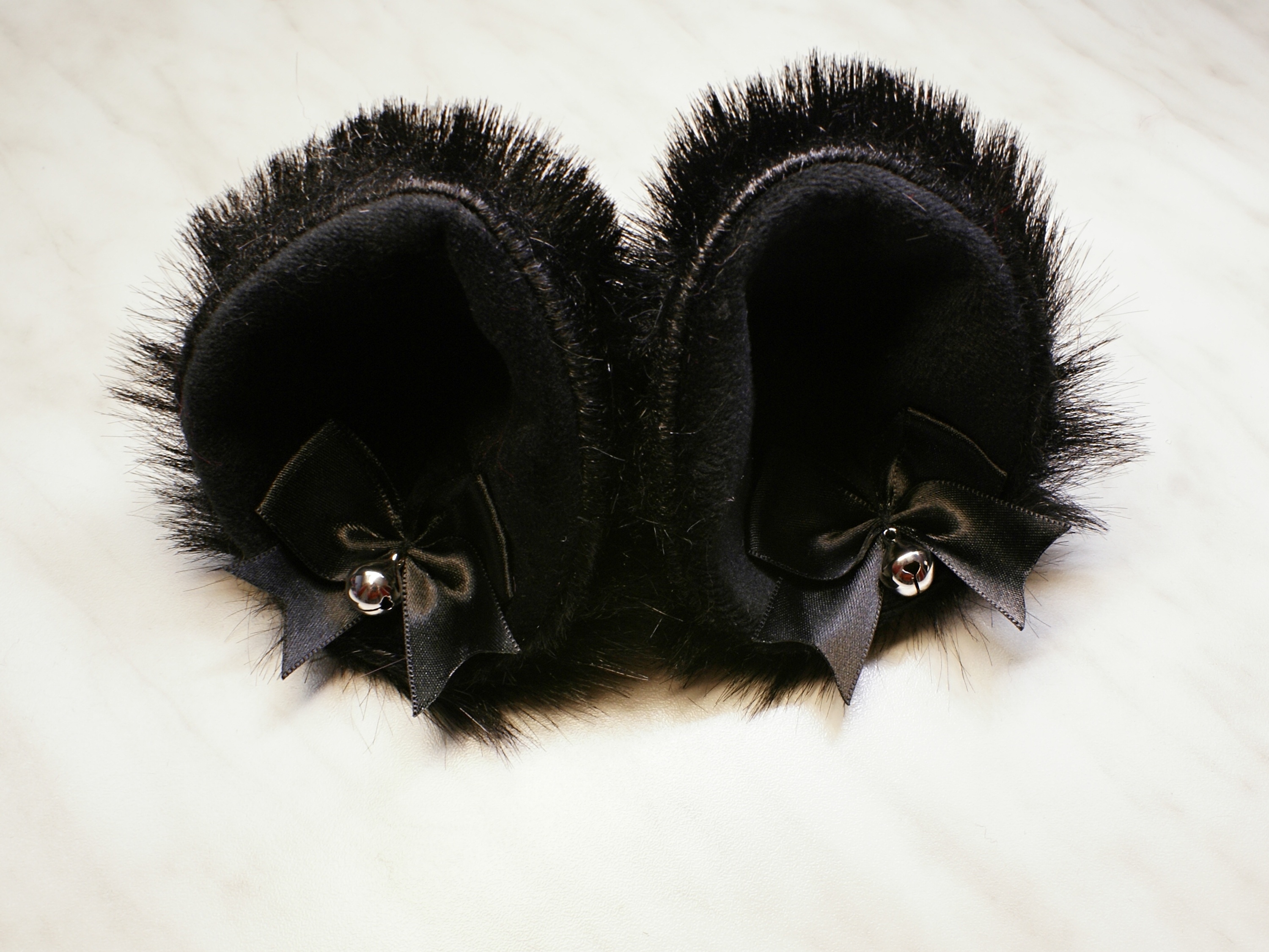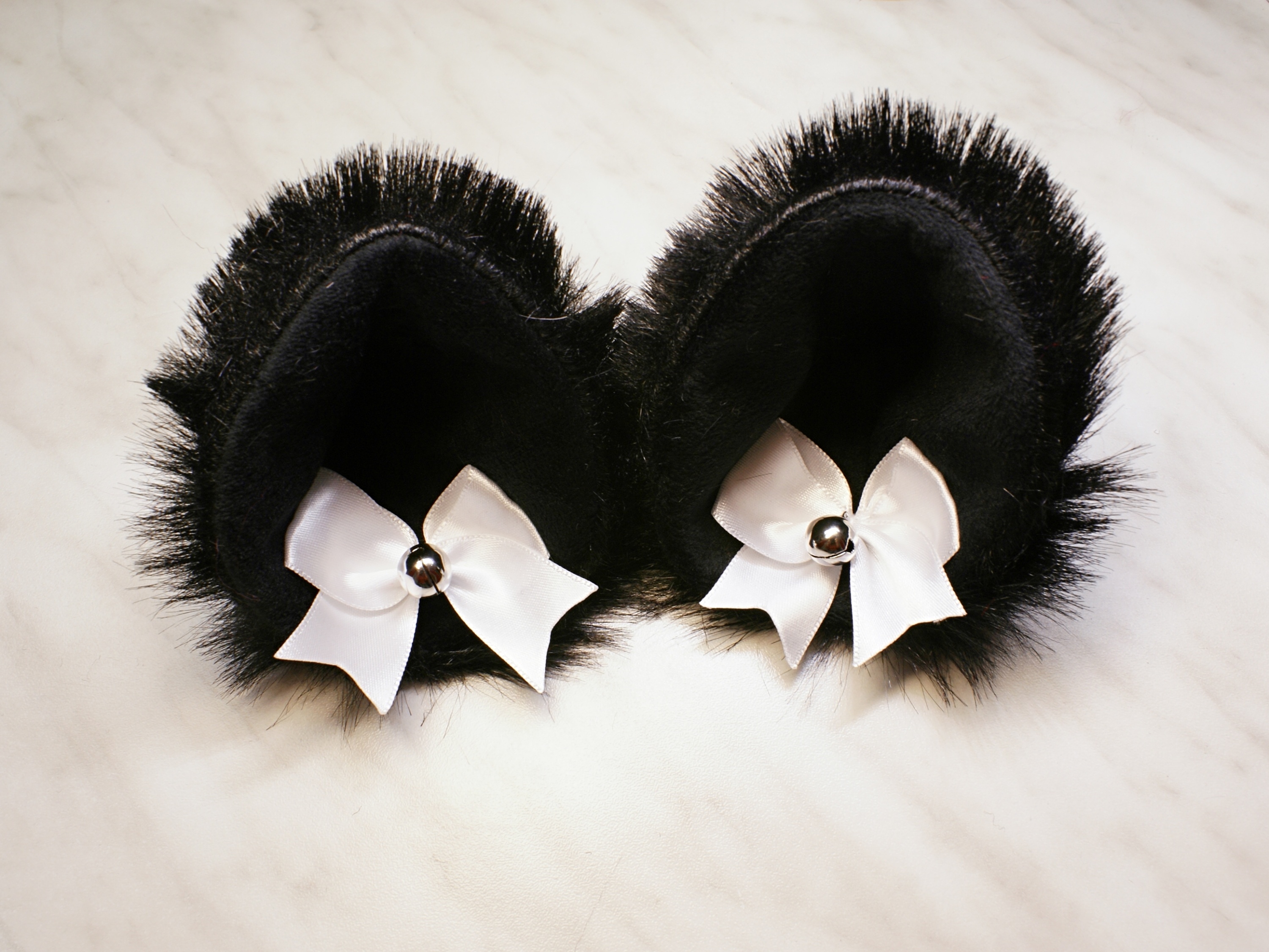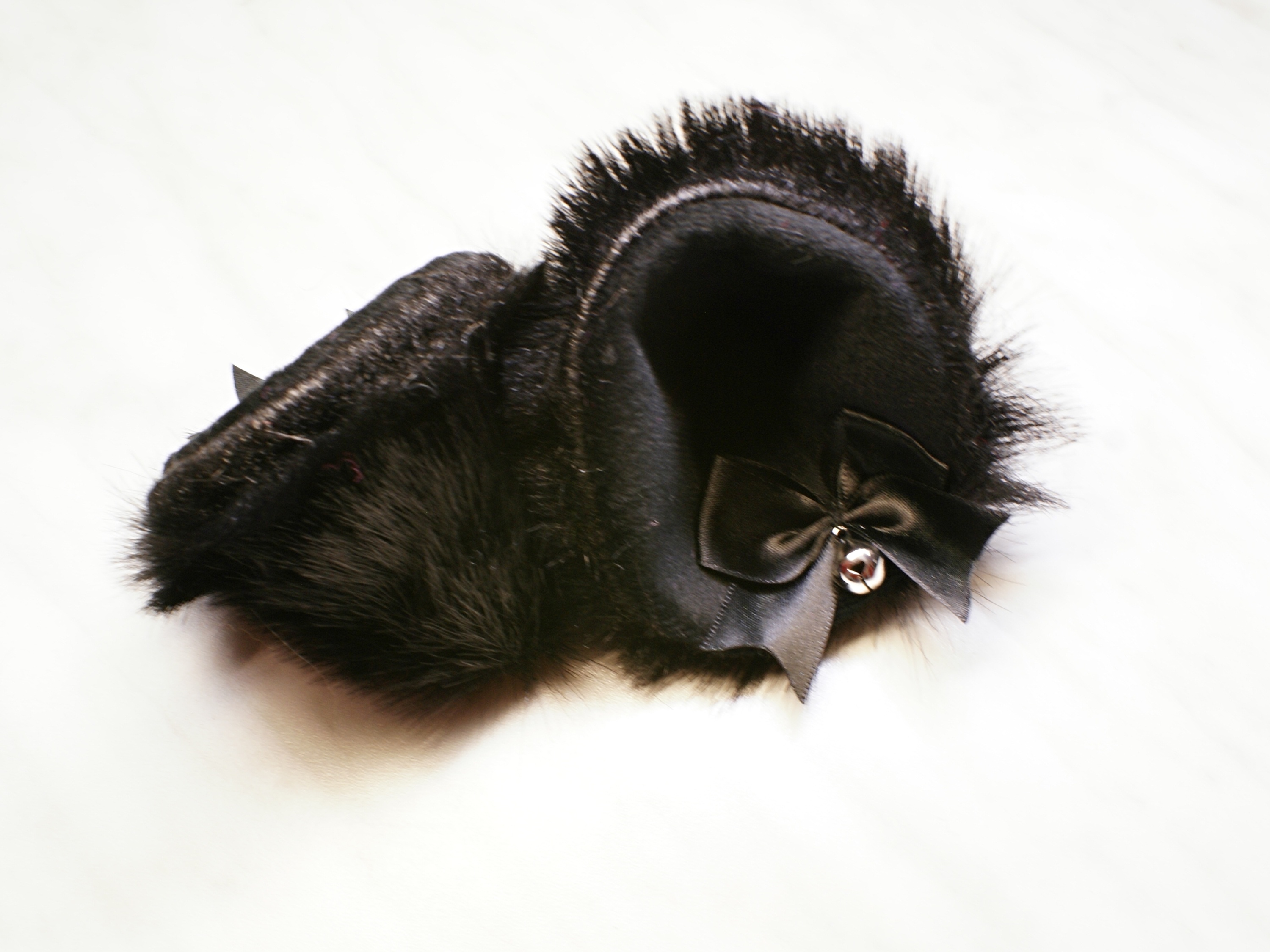 The ears are made of faux fur. Satin ribbons, as ornaments. A bell is attached to the ribbon. A metal clip for attaching the ears is attached to the underside of the ears. Added metal headband so that the ears can be attached to the headband. So you have more options for wearing ears. You can wear them in several ways.