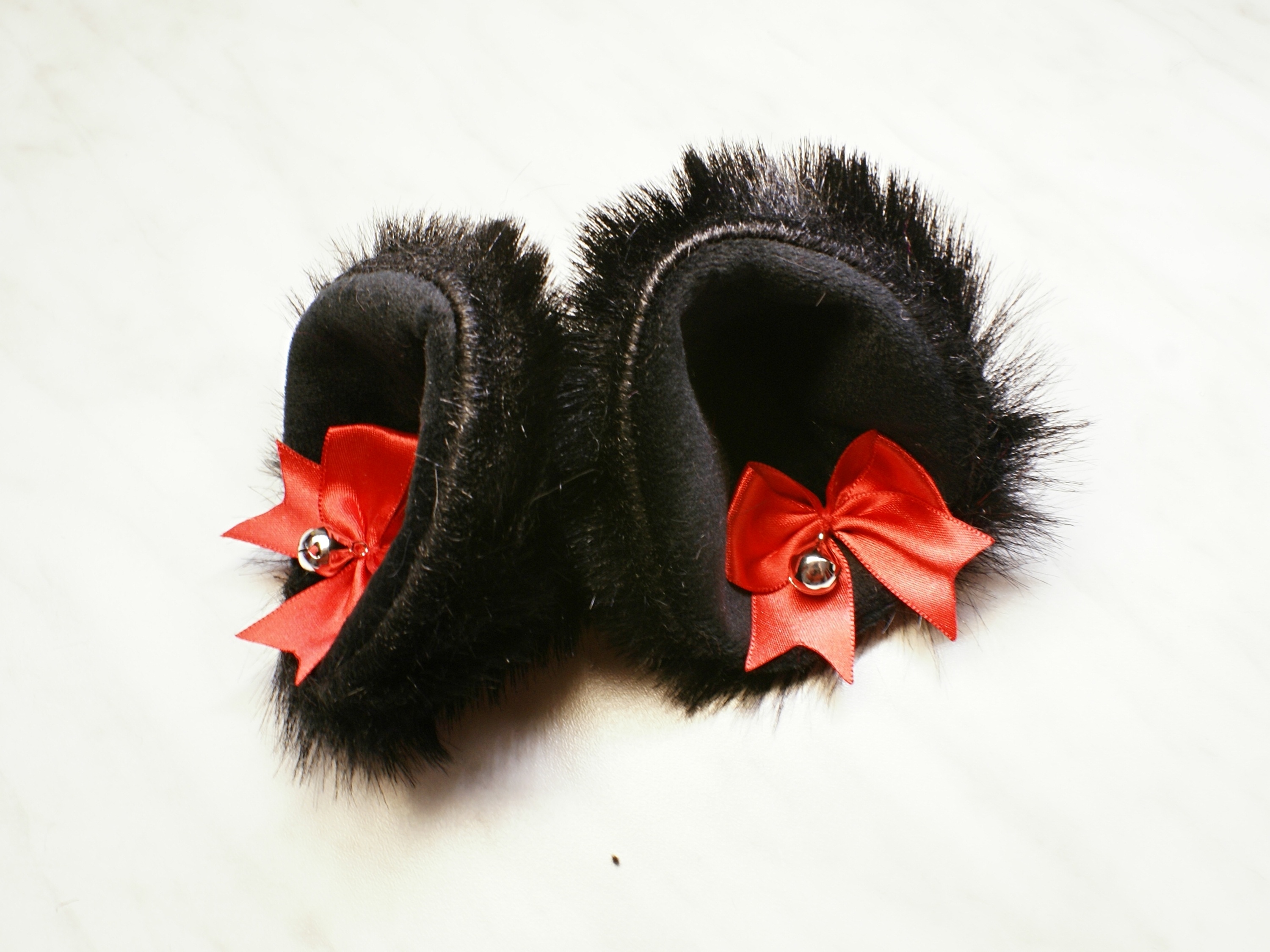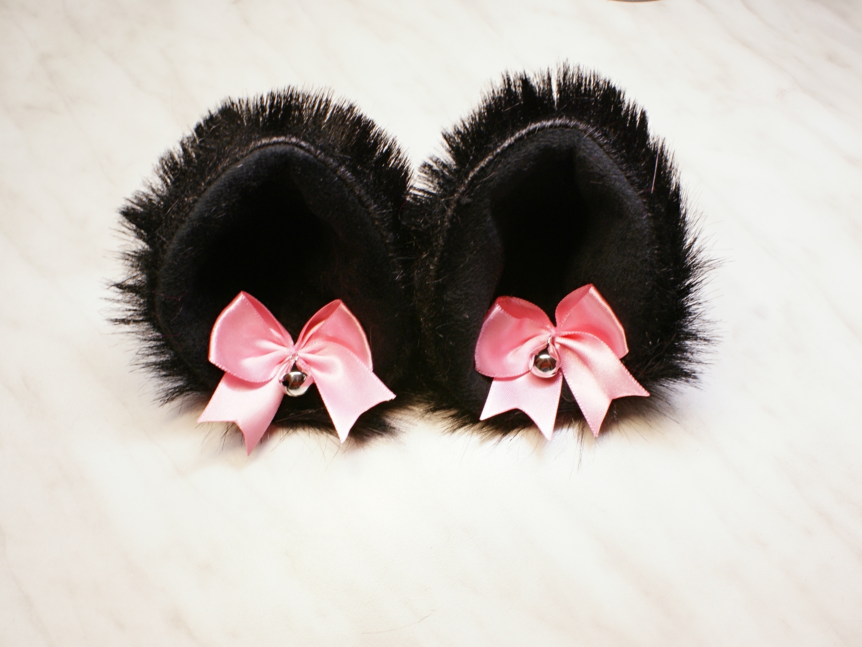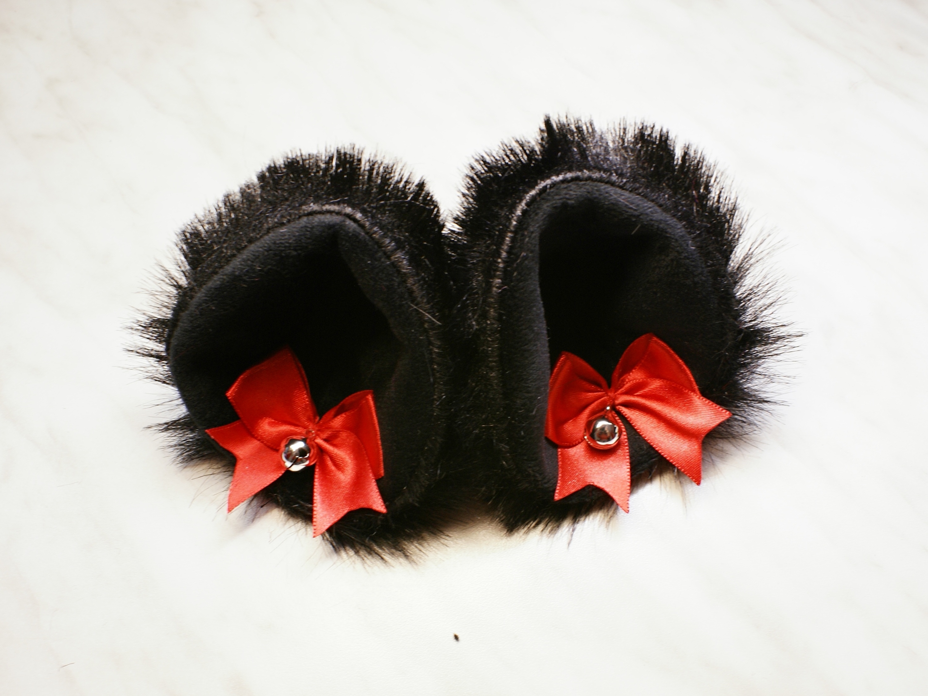 The ears are made of faux fur. Satin ribbons, as ornaments. A bell is attached to the ribbon. A metal clip for attaching the ears is attached to the underside of the ears. Added metal headband so that the ears can be attached to the headband. So you have more options for wearing ears. You can wear them in several ways.
