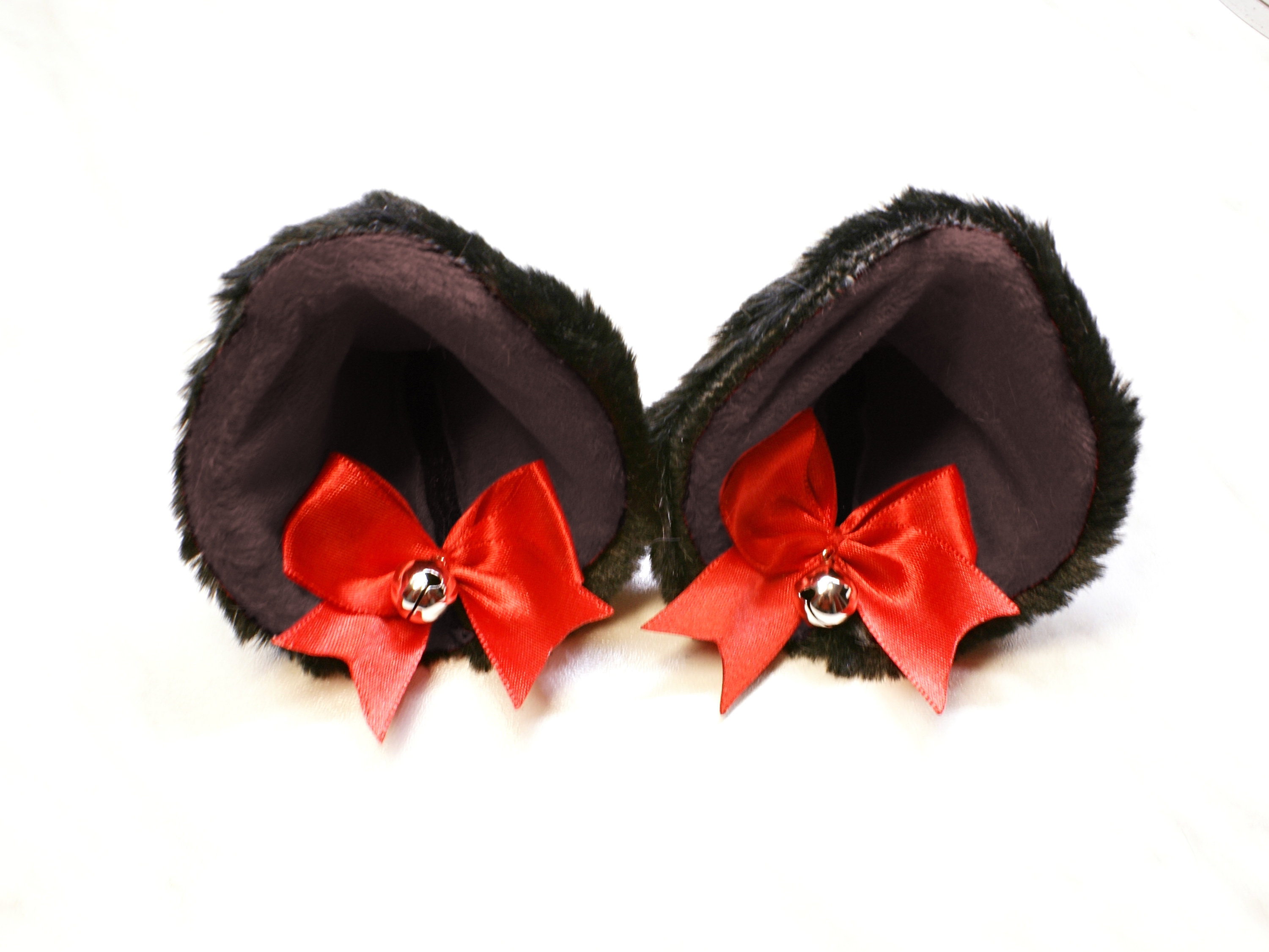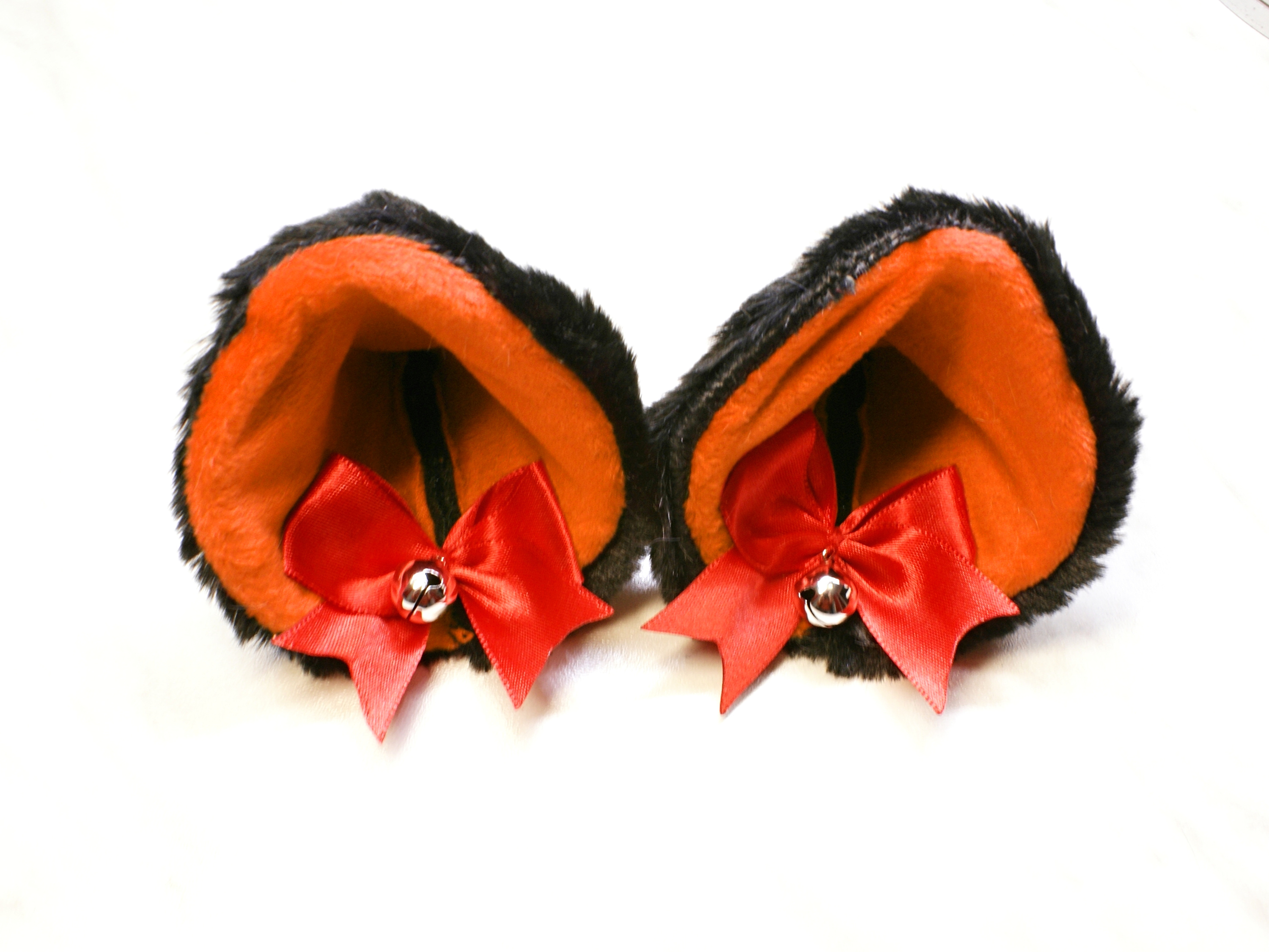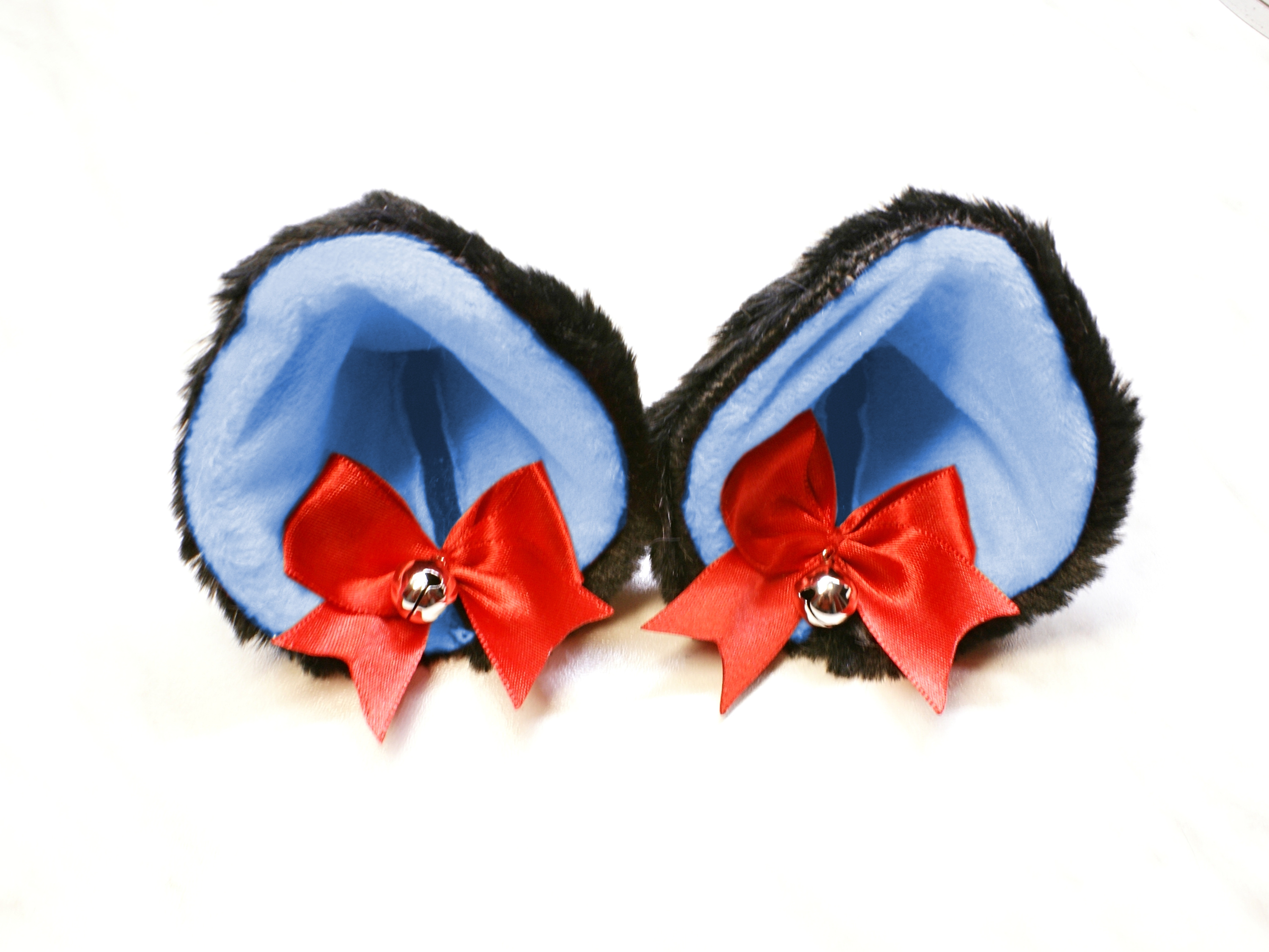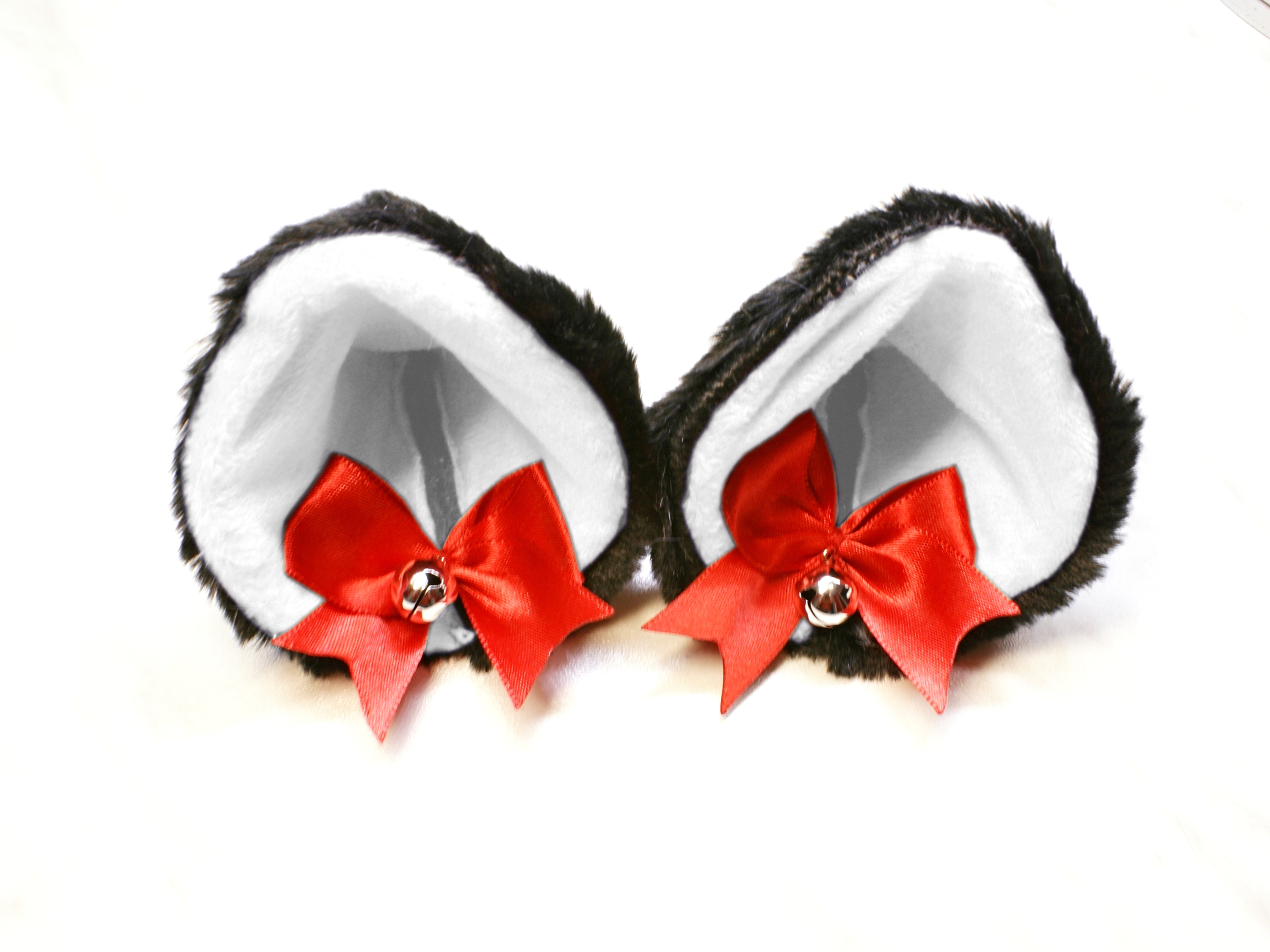 The ears are made of faux fur. Satin ribbons, as ornaments. A bell is attached to the ribbon. A metal clip for attaching the ears is attached to the underside of the ears. Added metal headband so that the ears can be attached to the headband. So you have more options for wearing ears. You can wear them in several ways.