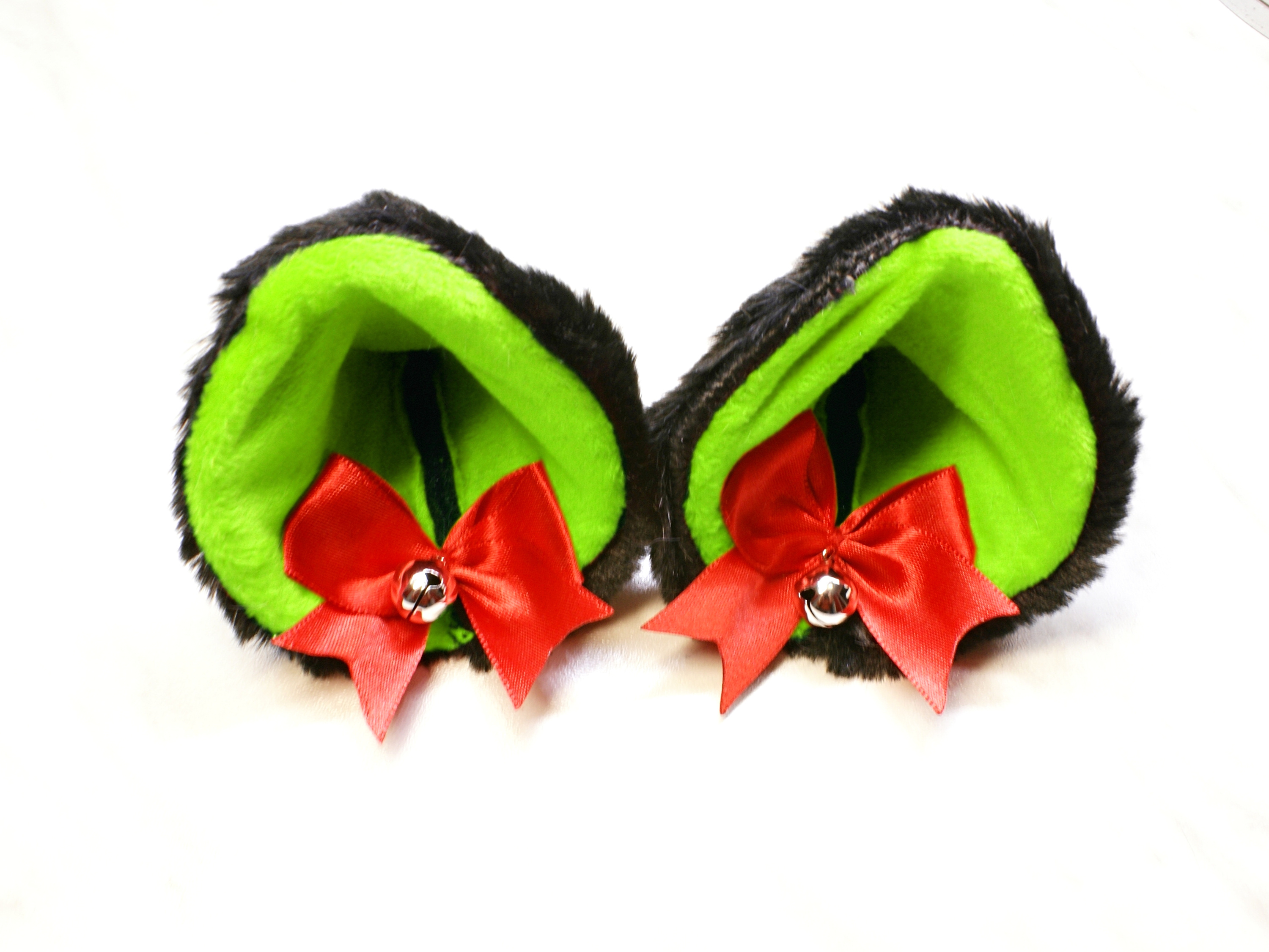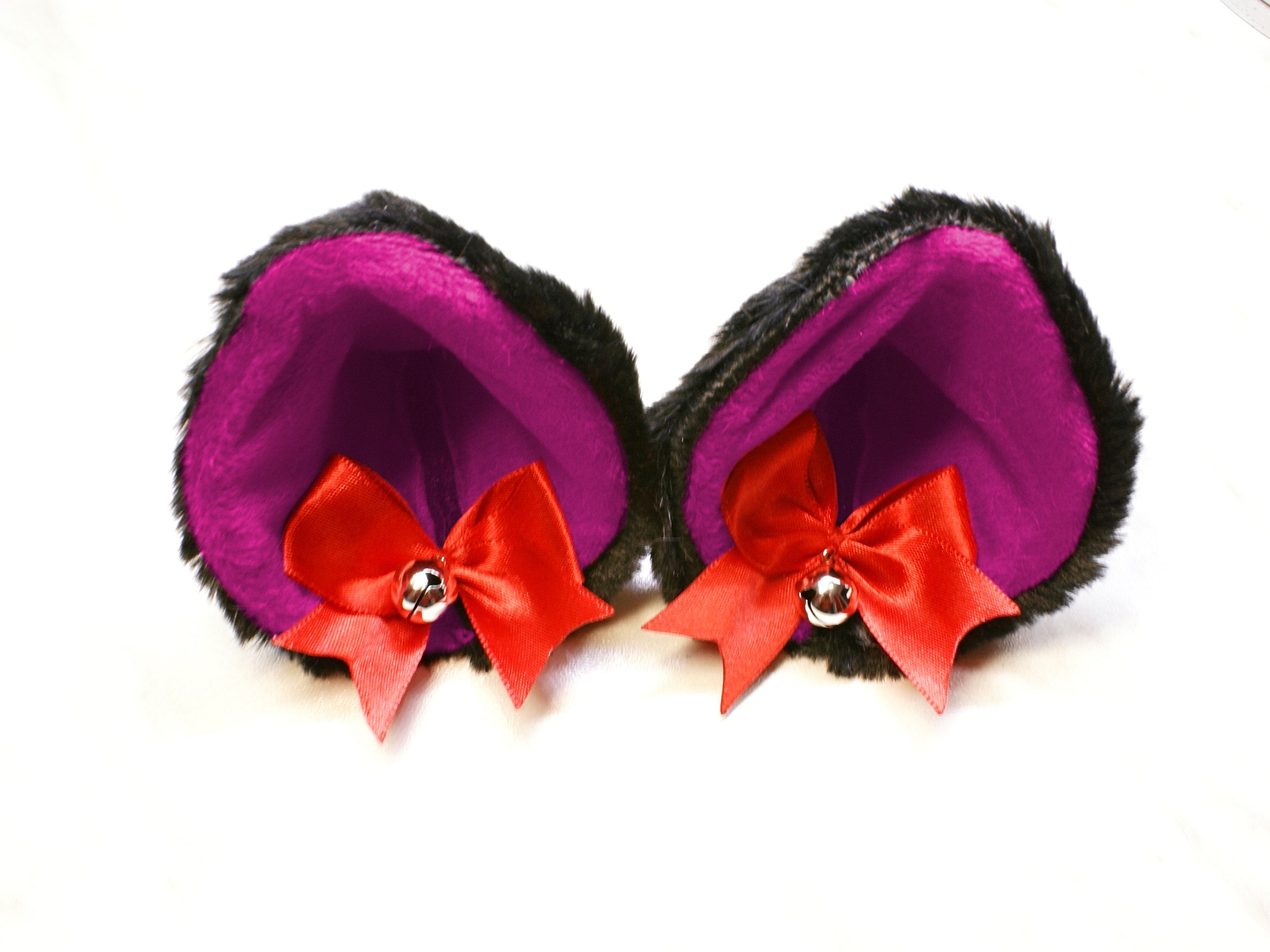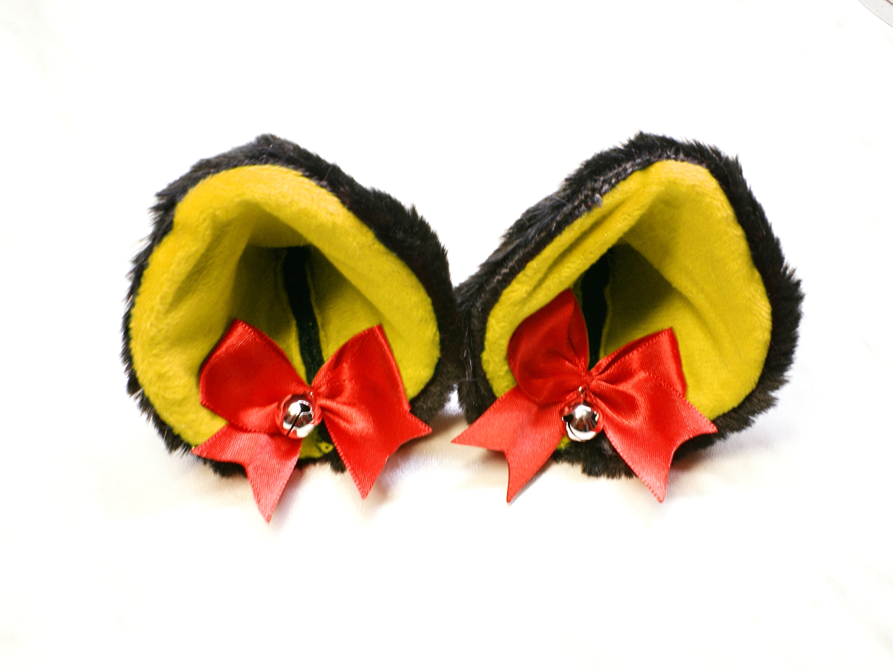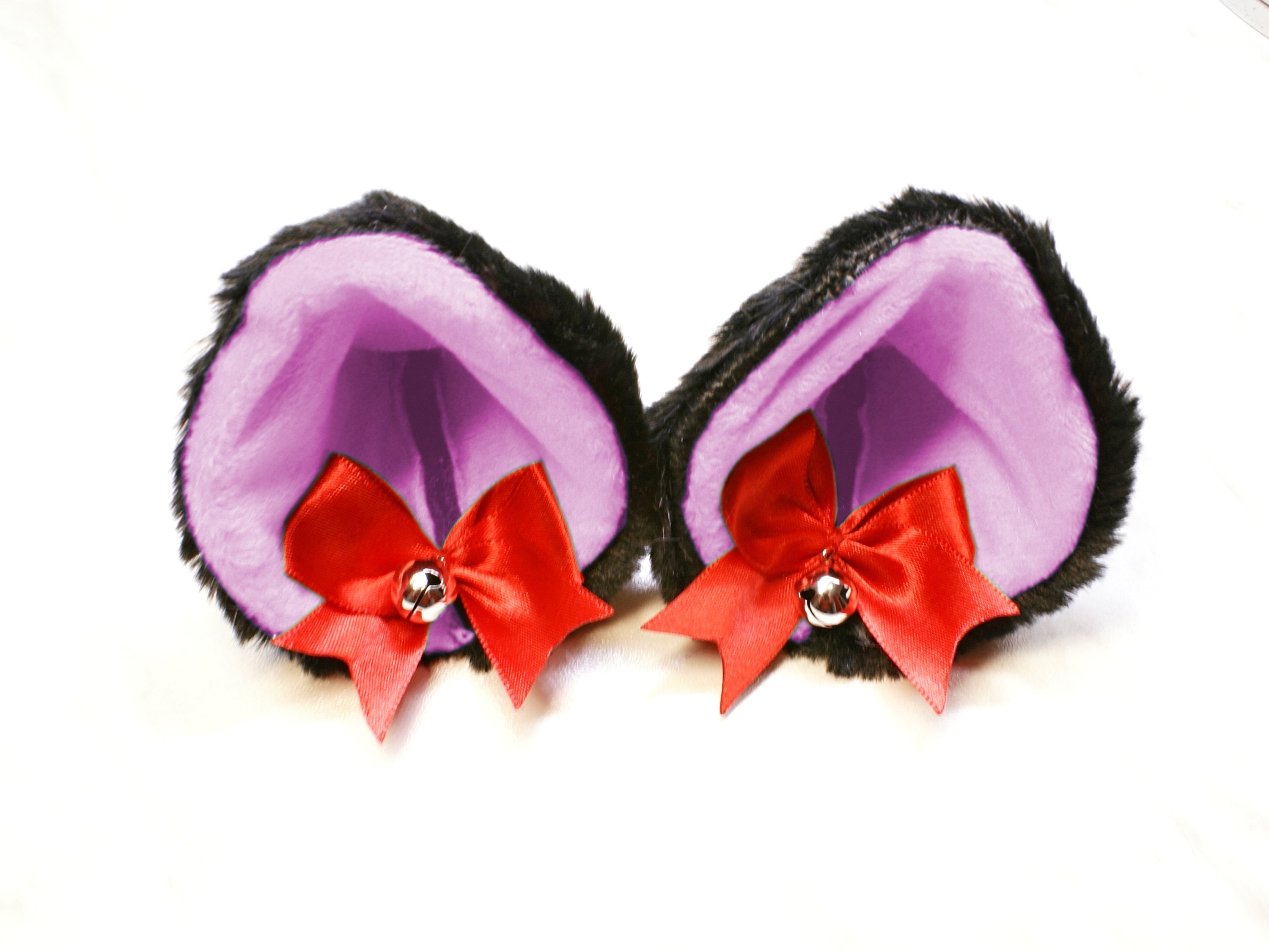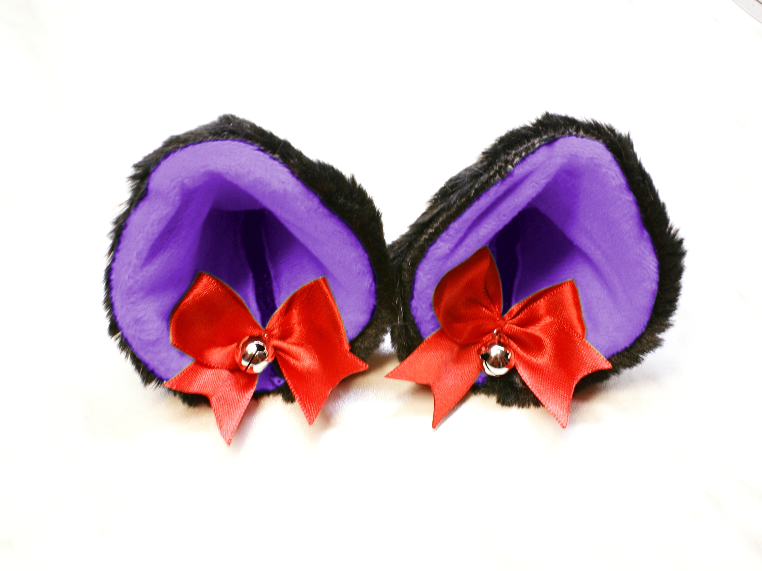 The ears are made of faux fur. Satin ribbons, as ornaments. A bell is attached to the ribbon. A metal clip for attaching the ears is attached to the underside of the ears. Added metal headband so that the ears can be attached to the headband. So you have more options for wearing ears. You can wear them in several ways.