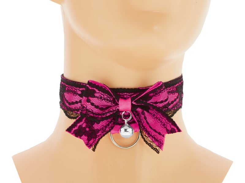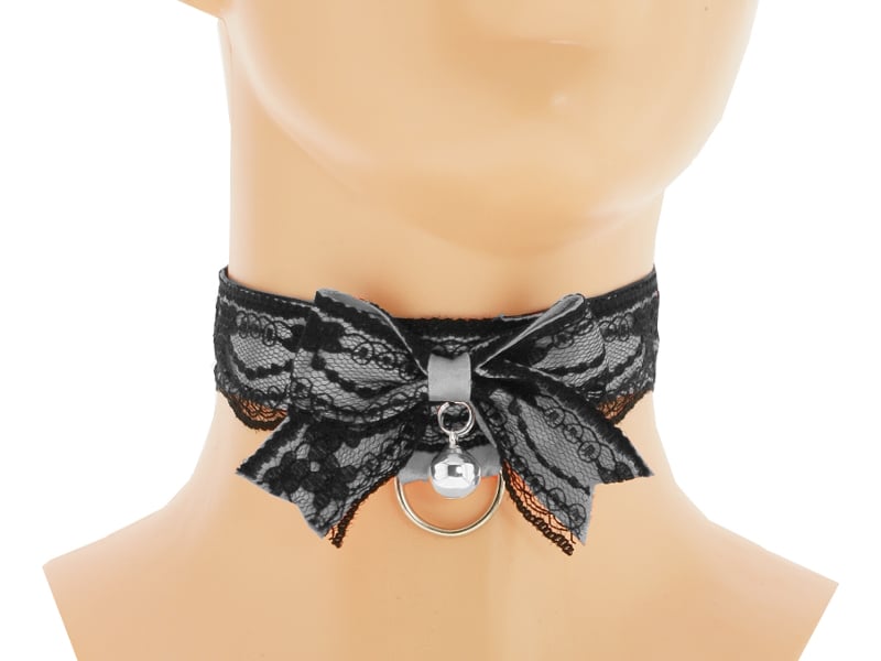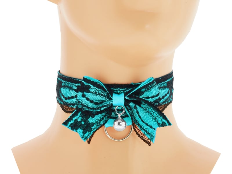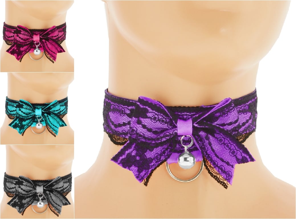 Choker Necklace Kitten Pet Play Collar Gear Princess Choker Necklace Satin Lace black Bow Bell Tug Proof Daddys Girl Kawaii pastel cosplay