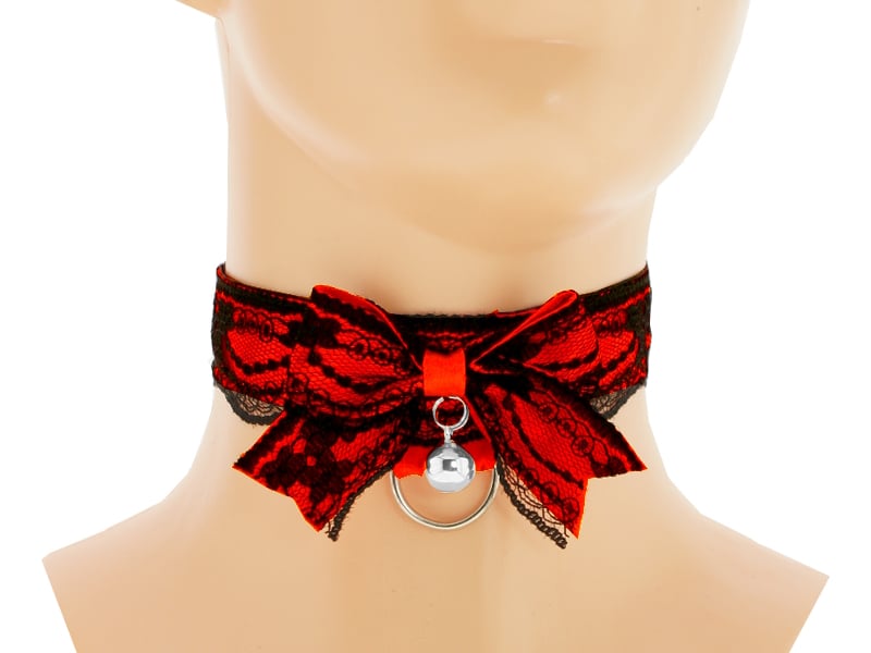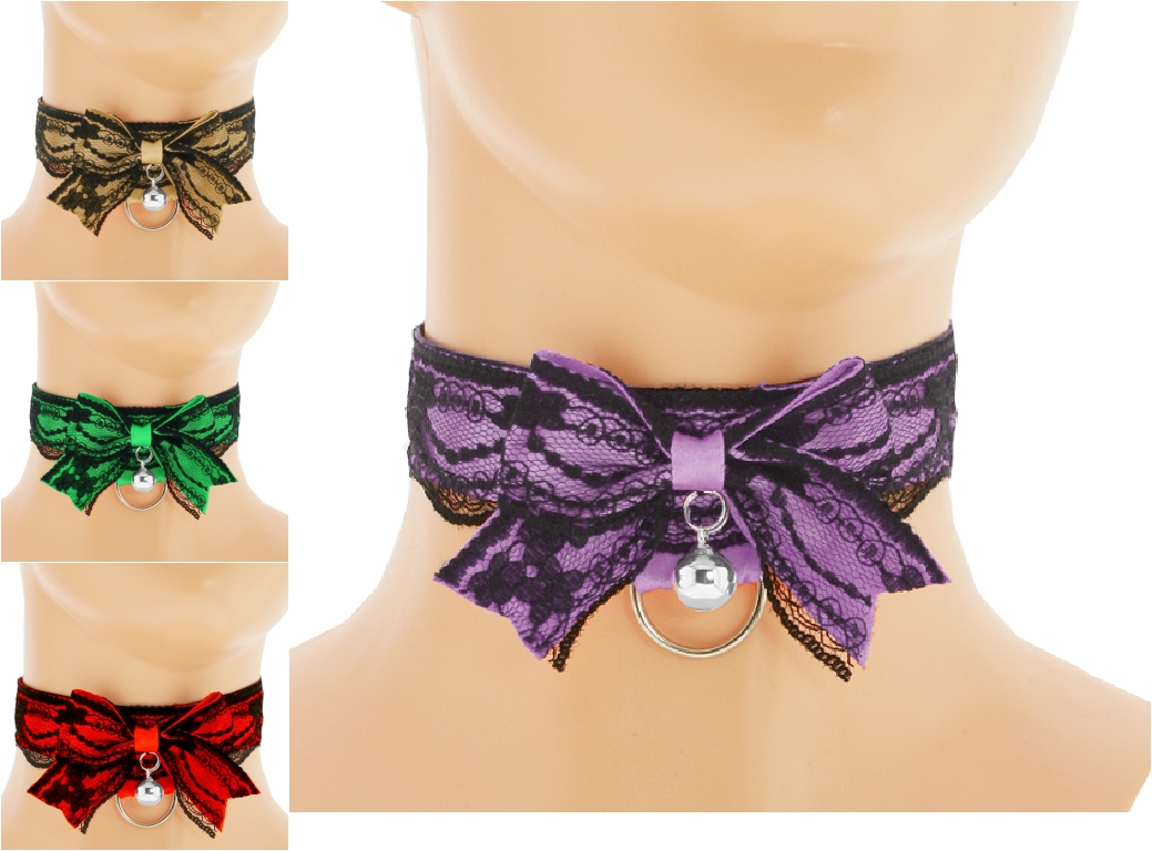 Choker Necklace Kitten Pet Play Collar Gear Princess Choker Necklace Satin Lace black Bow Bell Tug Proof Daddys Girl Kawaii pastel cosplay