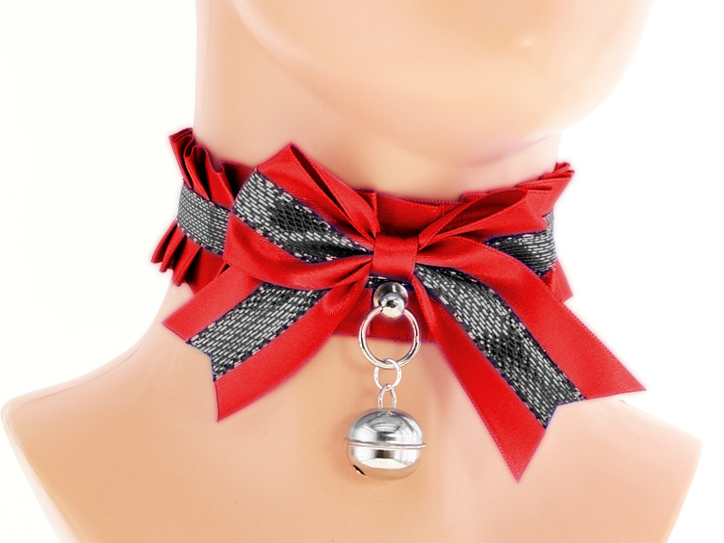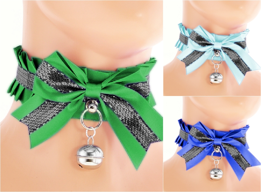 Collar is made of webbing and satin ribbons.