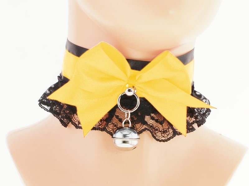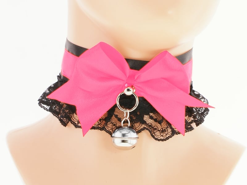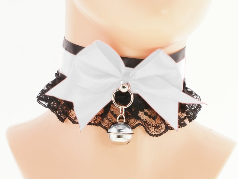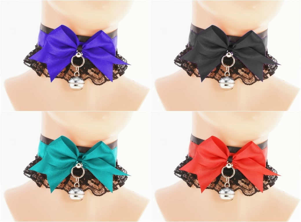 Choker Necklace Kitten Pet Play Collar Gear Princess Choker Necklace Satin Lace black Bow Bell Tug Proof Daddys Girl Kawaii pastel cosplay