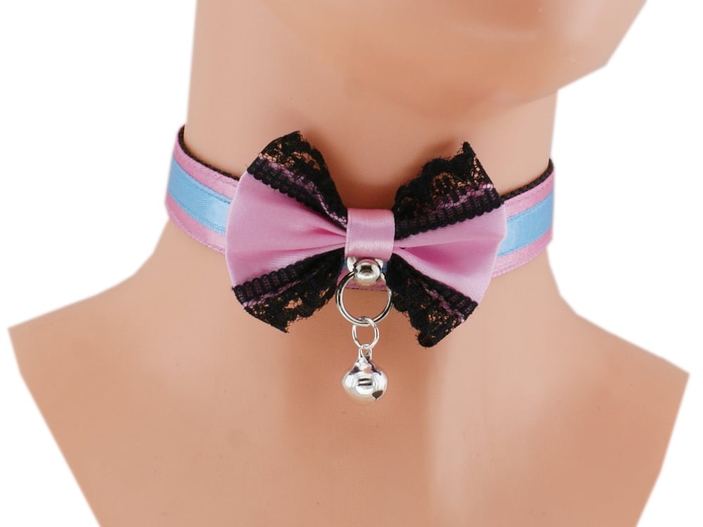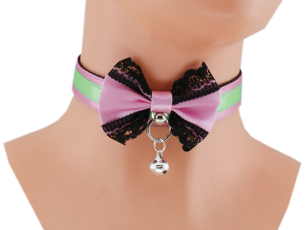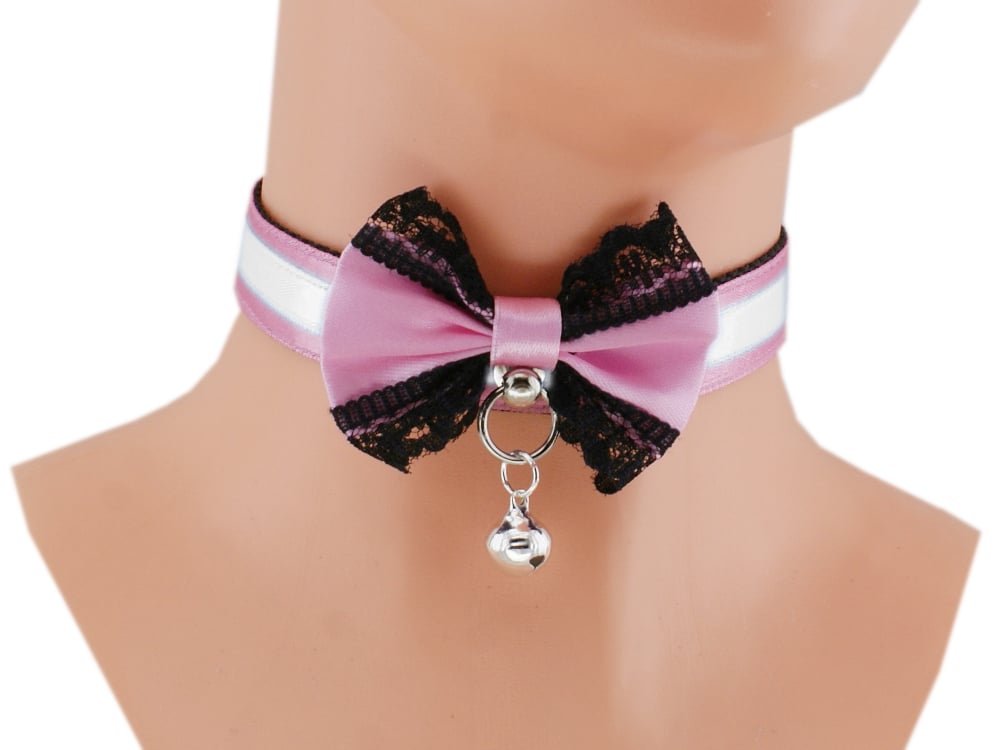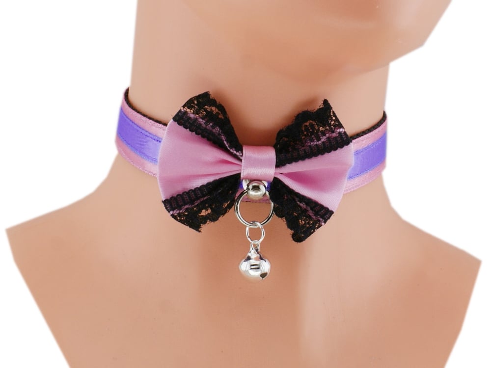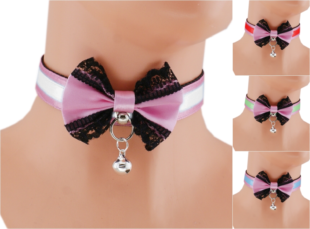 Choker Necklace Kitten Pet Play Collar Gear Princess Choker Necklace Satin Lace black Bow Bell Tug Proof Daddys Girl Kawaii pastel cosplay