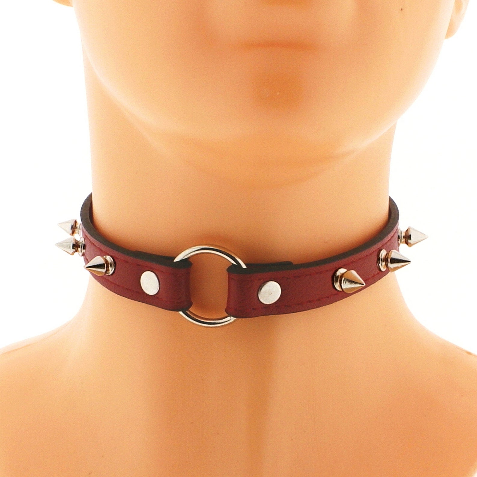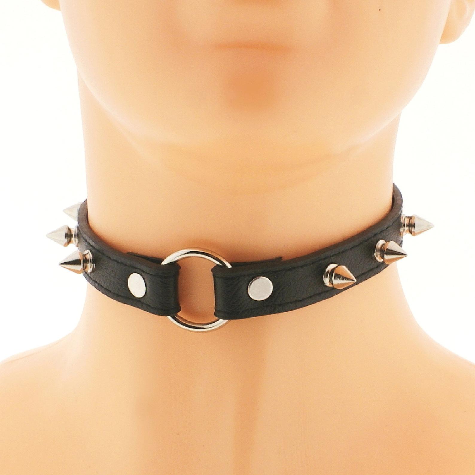 Spikes Choker Collar of Women Necklace Black Choker O ring Gothic Punk Rock Choker Fashion Faux Leather Choker Collar