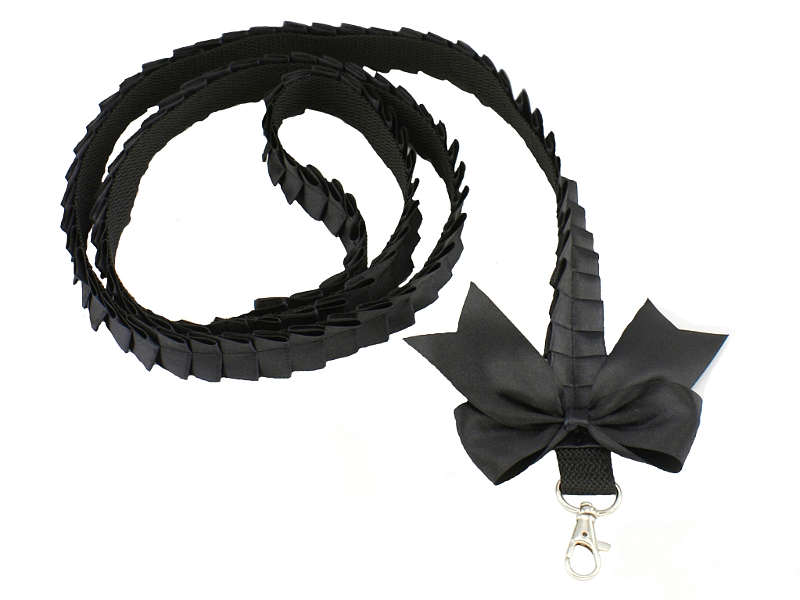 Collar is made layers of fabric and decorative lace. Details are made of metal, and satin ribbon, bells. Lace is only on outer site.