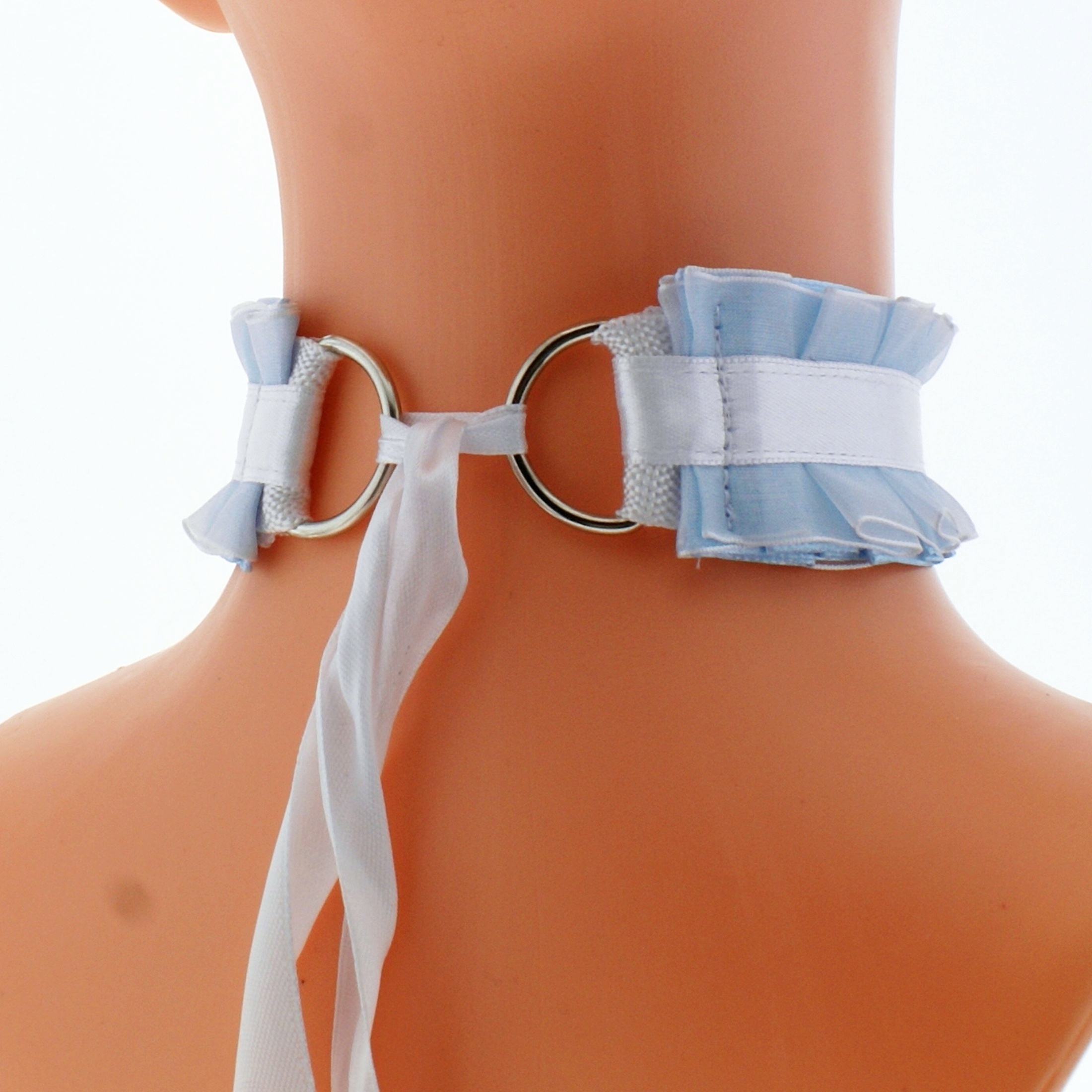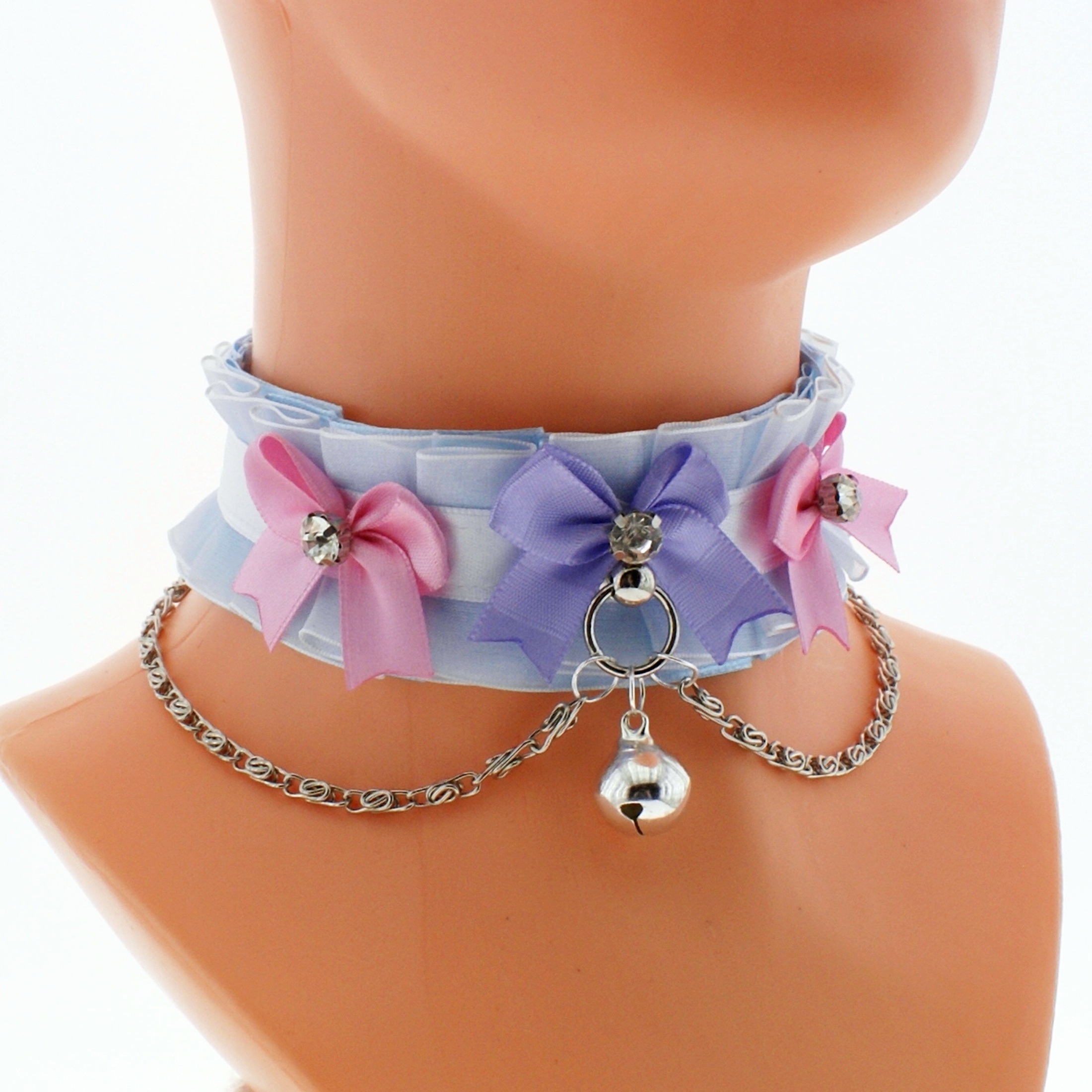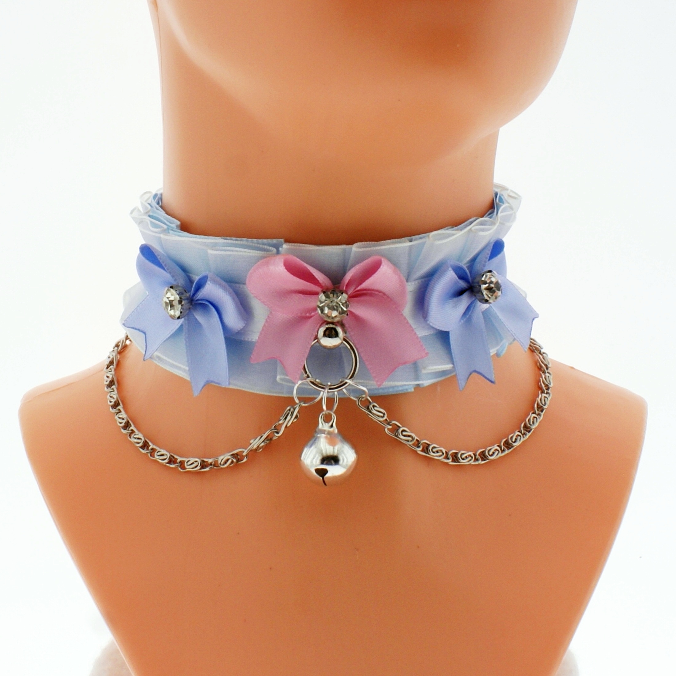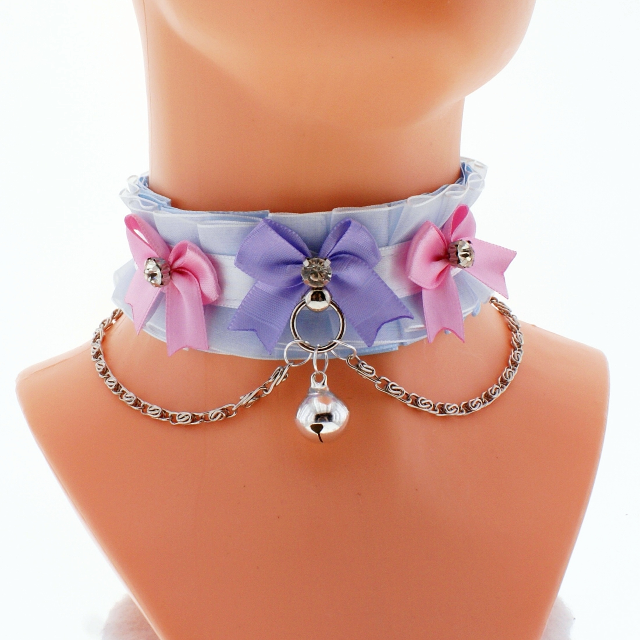 Kittenplay Collar Black Kitten Pet Play Collar Gear Choker Necklace Satin organza Chain Bow Bell Tug Proof Daddys Girl Kawaii goth Gothic