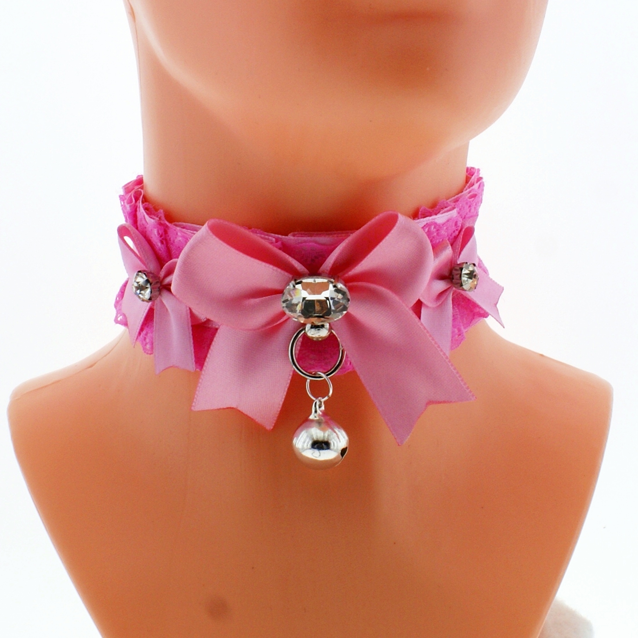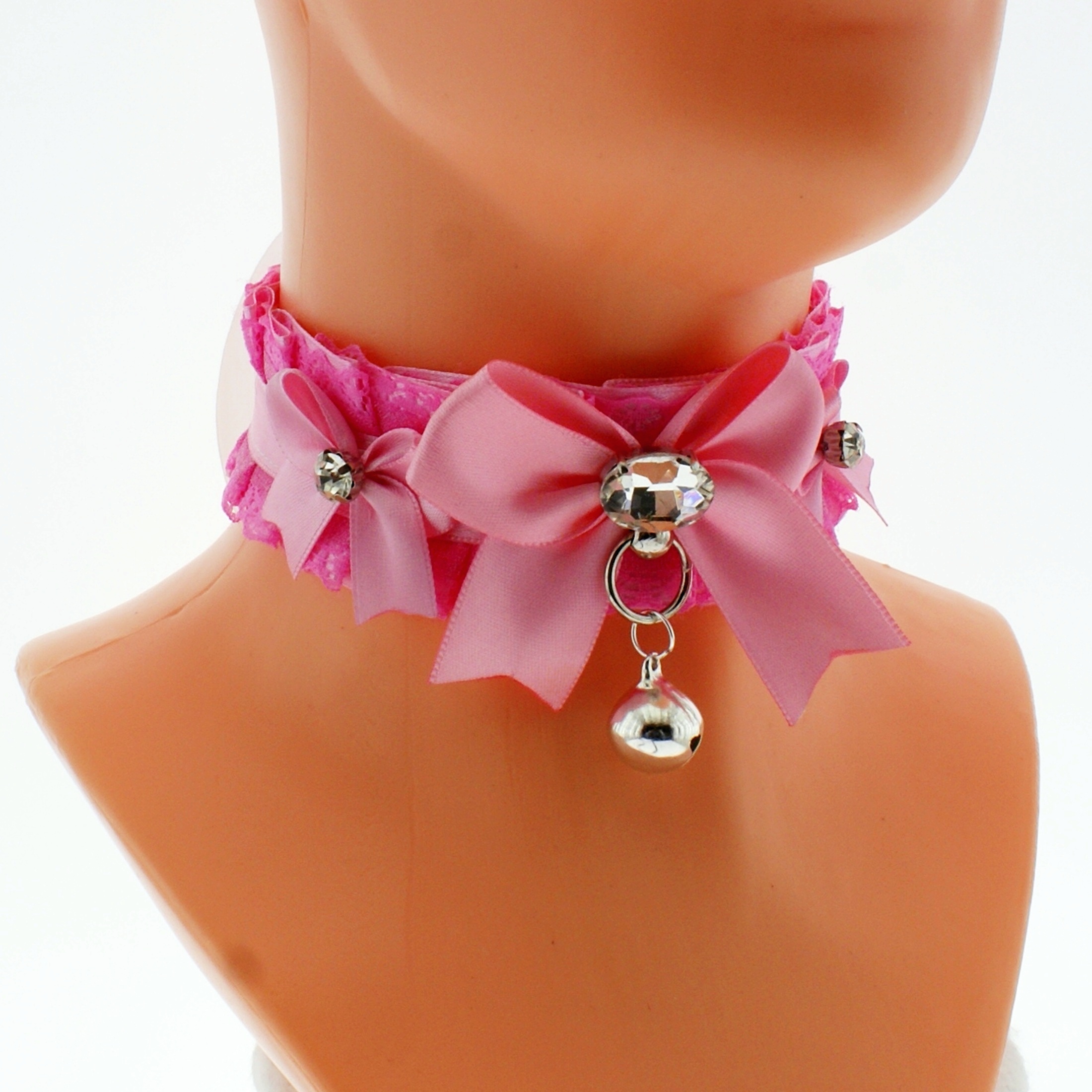 Kittenplay Collar Black Kitten Pet Play Collar Gear Choker Necklace Satin organza Chain Bow Bell Tug Proof Daddys Girl Kawaii goth Gothic