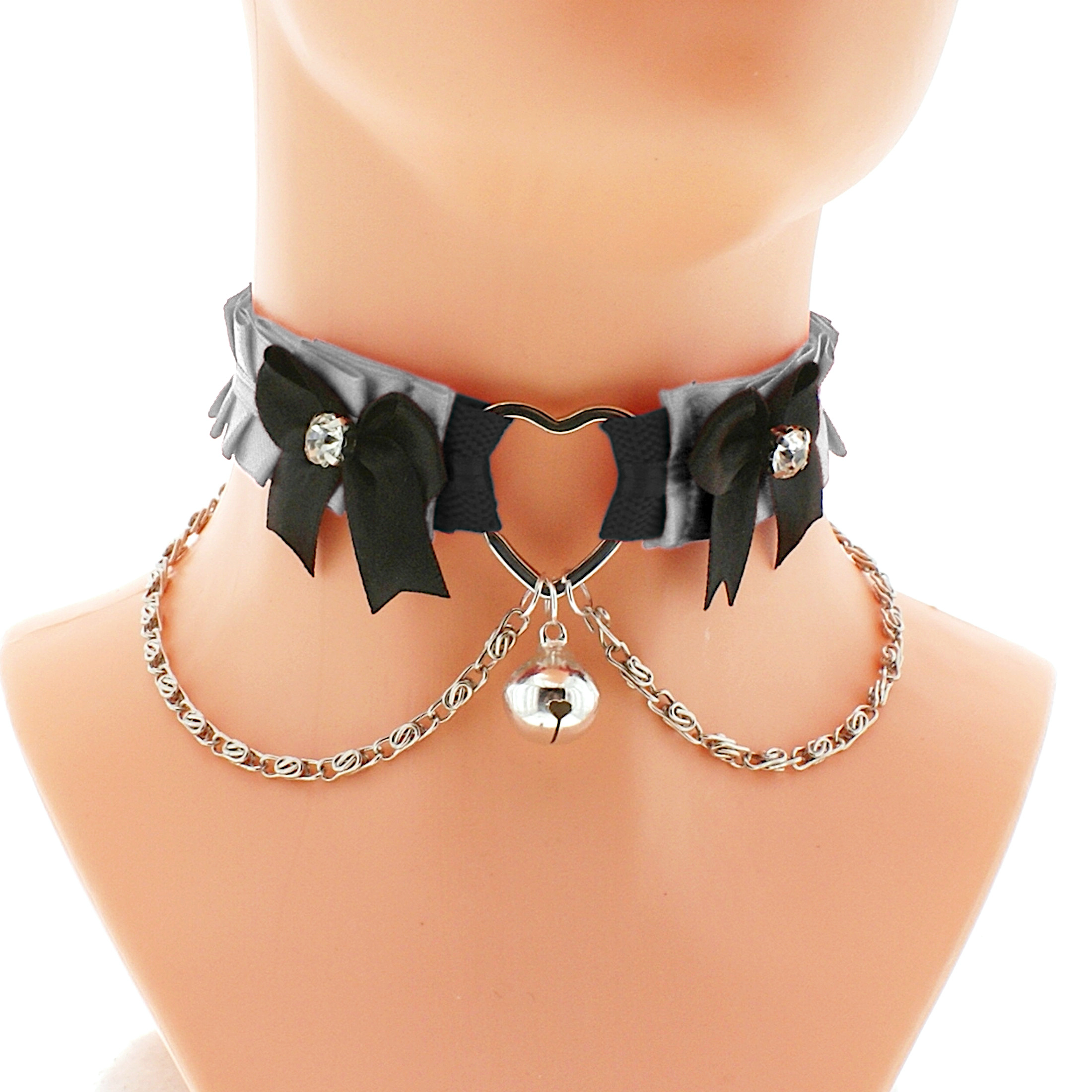 Choker satin heart extra kittenplay collar chain choker pet play necklace fancy collar more sizes choker satin bow